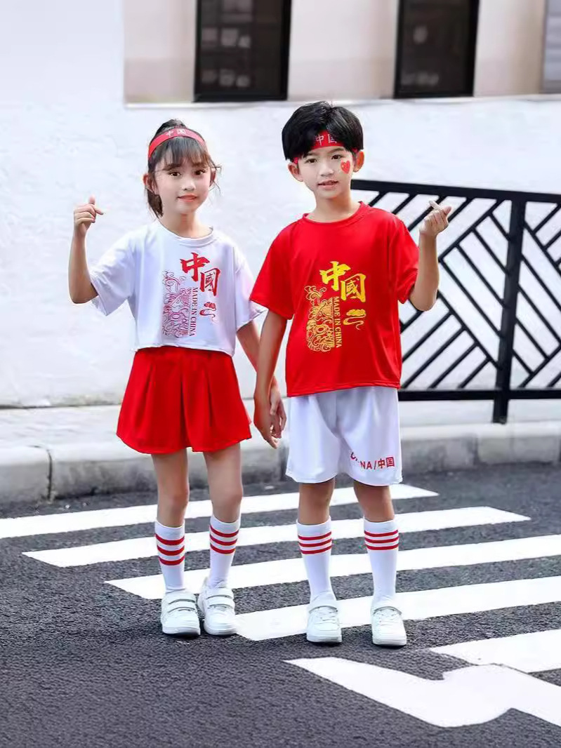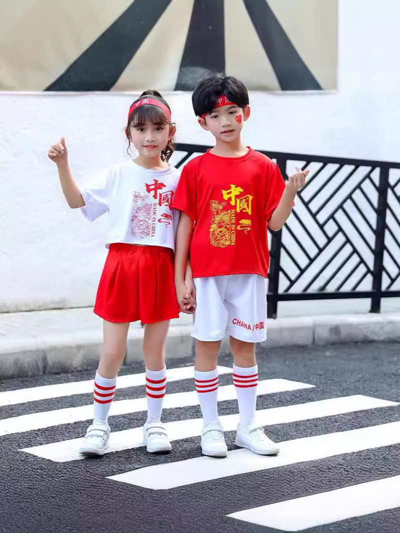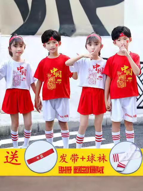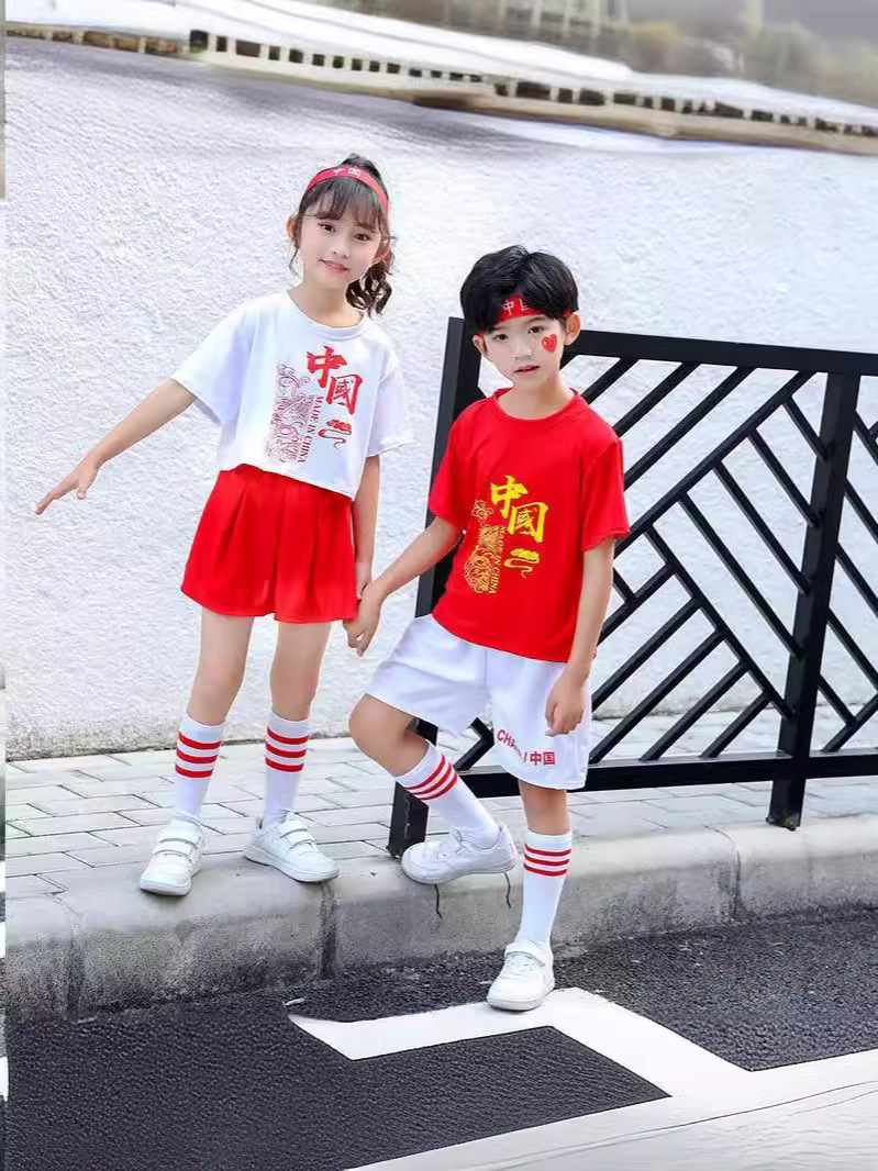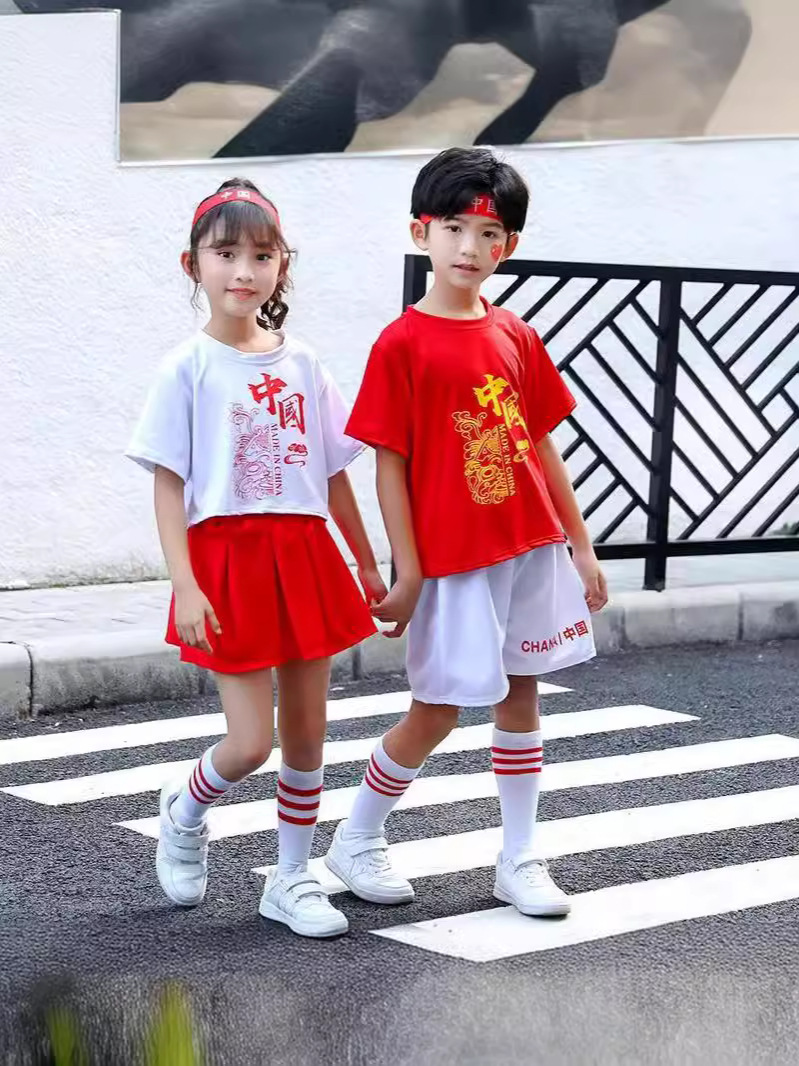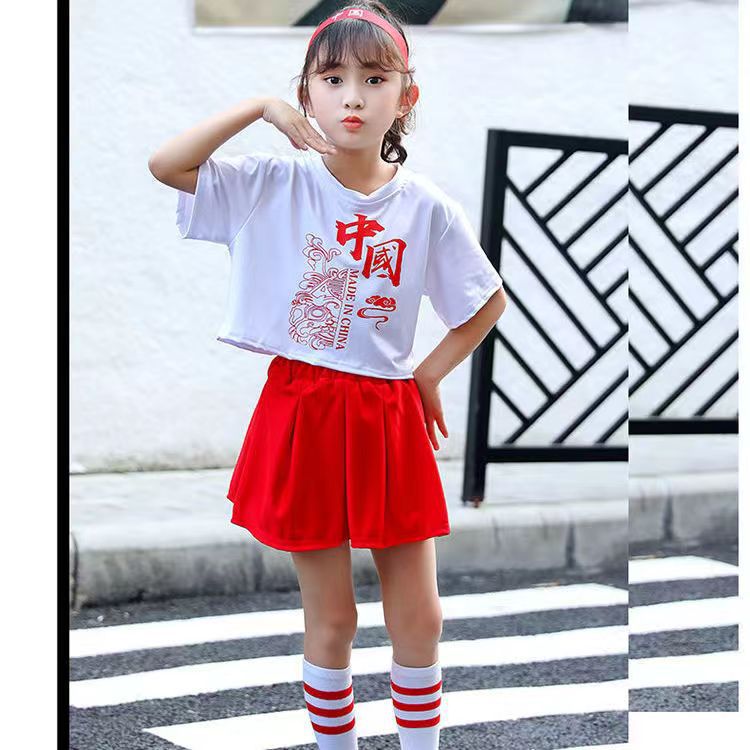 Красные шорты с короткими рукавами белые носки; Белая короткая красная юбка с короткими рукавами