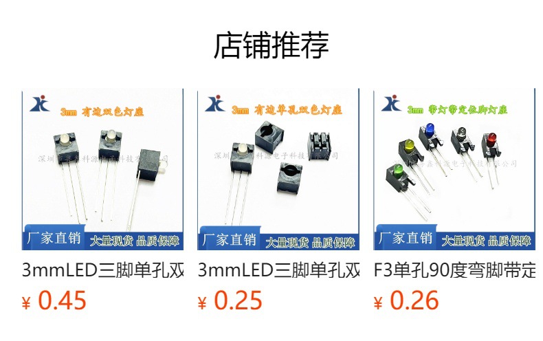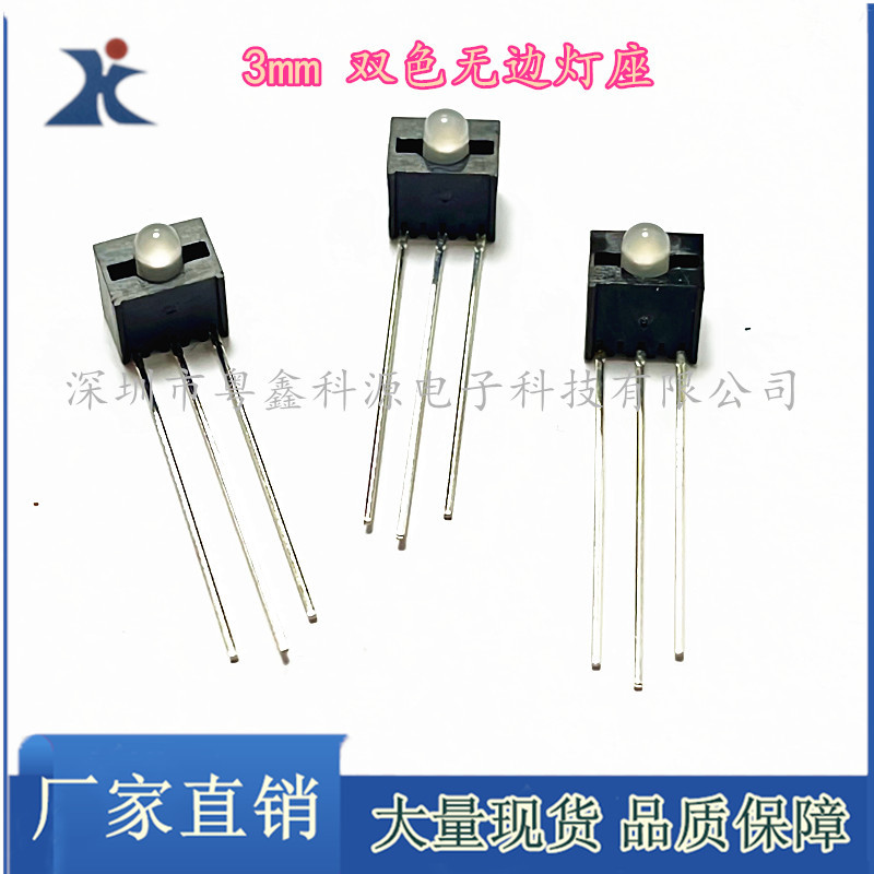 3mmLED三脚单孔双色灯座 单孔双色无边灯90度弯脚LED灯座含灯