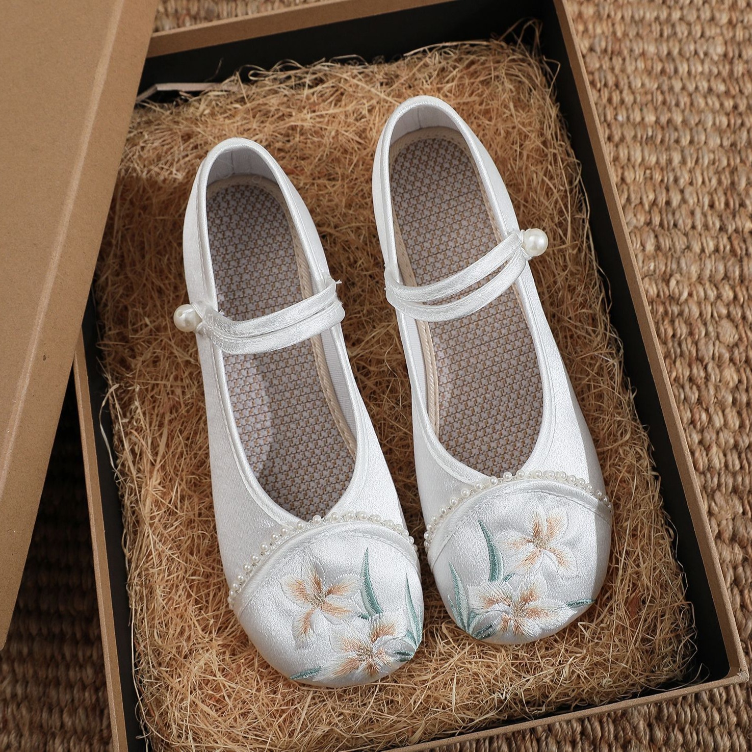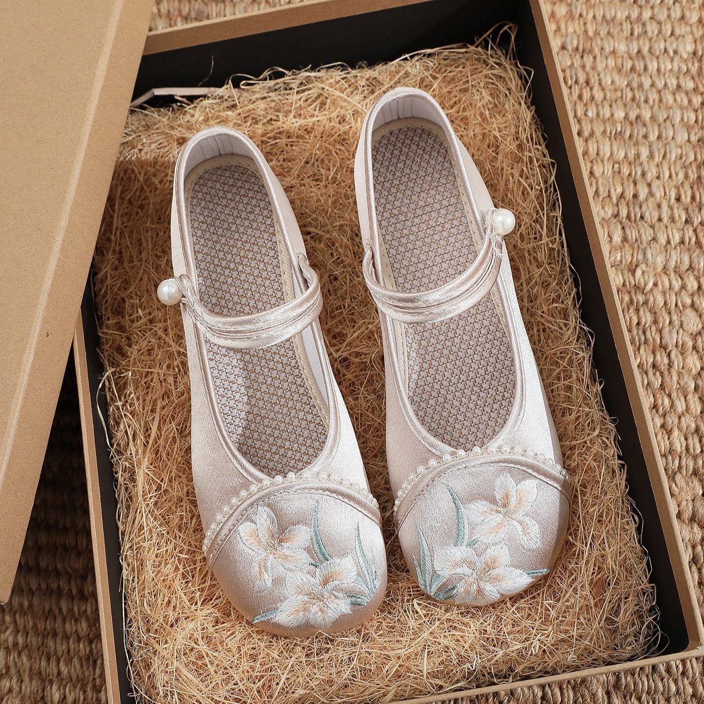 08-7 Новая вышитая женская обувь Жемчужная вышивка женская обувь cheongsam