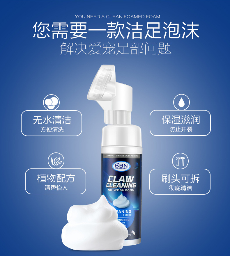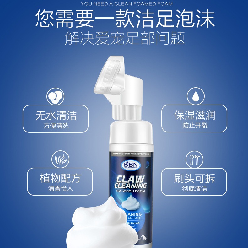 Чистая пена для домашних собак Кошка Уборка для ног Уход за пузырьками Собака универсальная дезактивация и увлажнение без мытья мусса