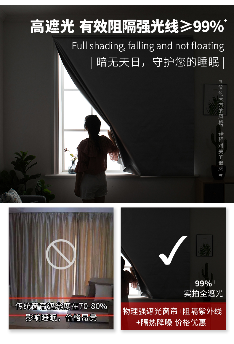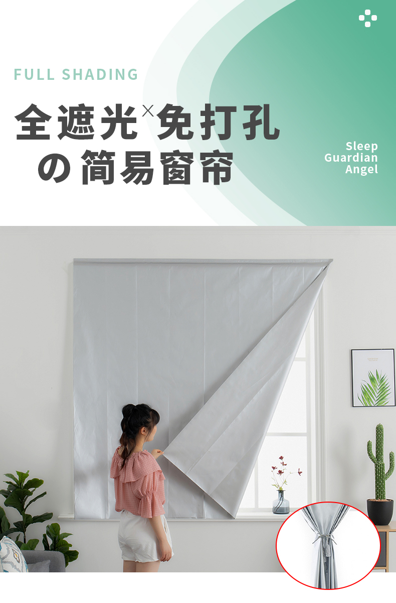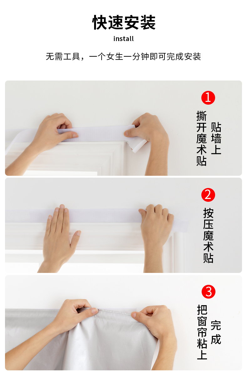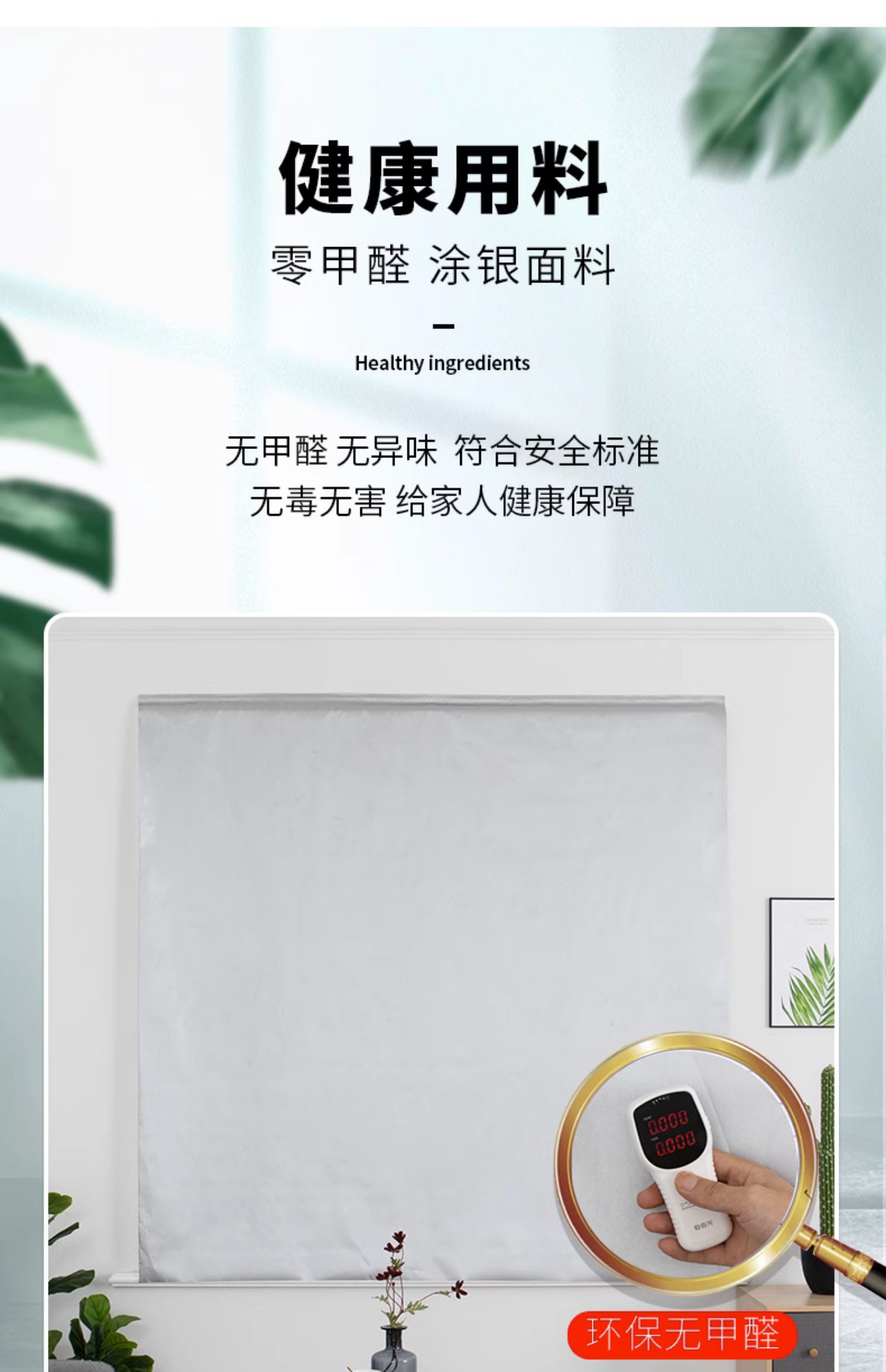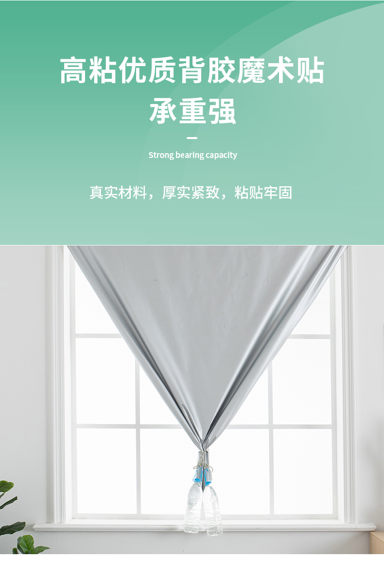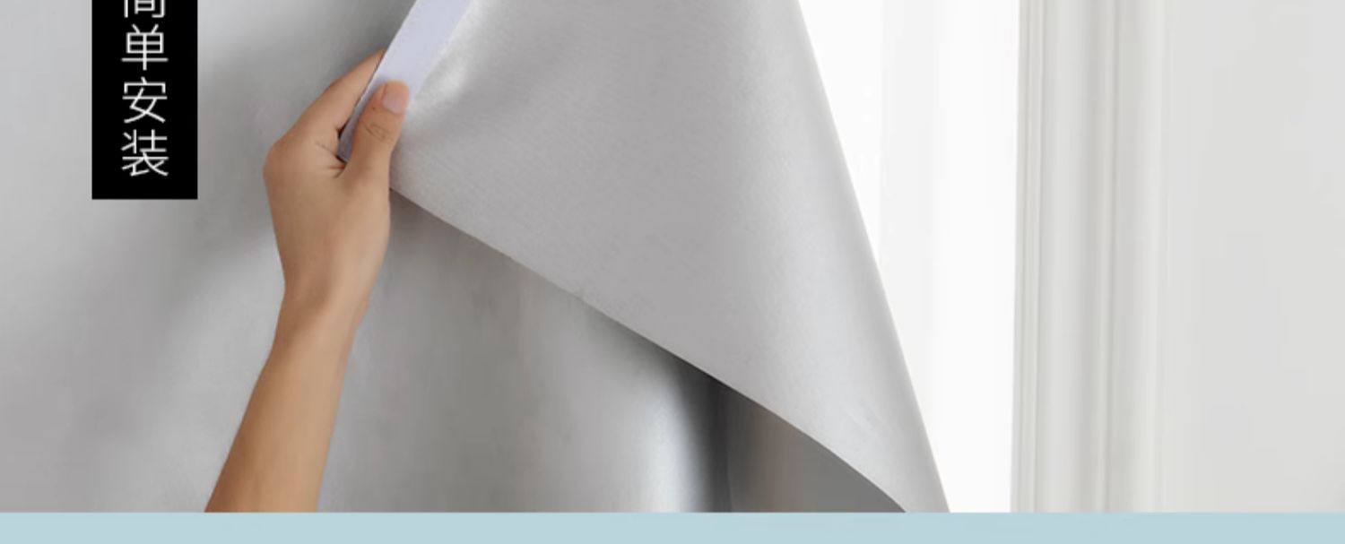 Полное затемнение, утолщённый и усиленный двусторонний серебристый материал, не требует сверления [в комплекте липучка + крепёжная верёвка].