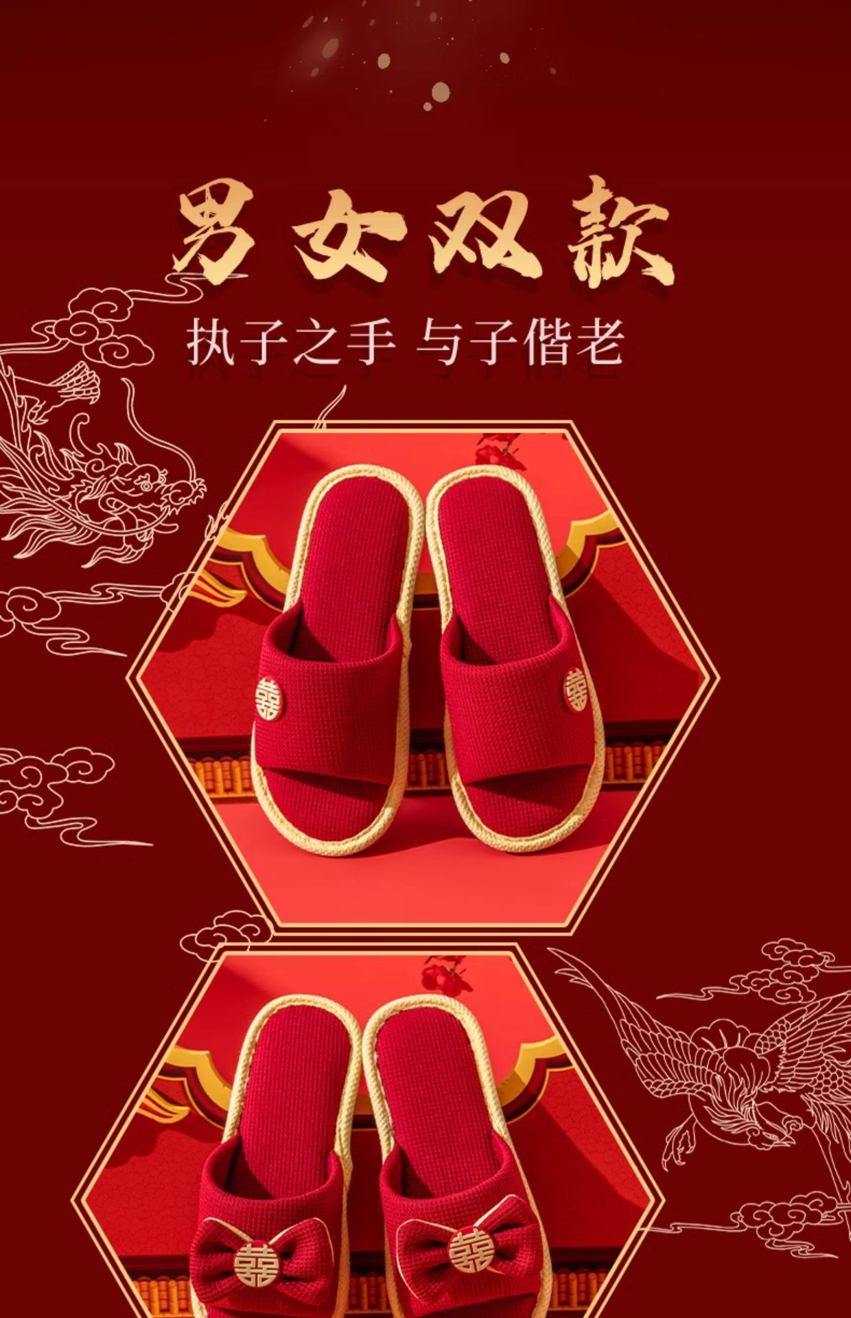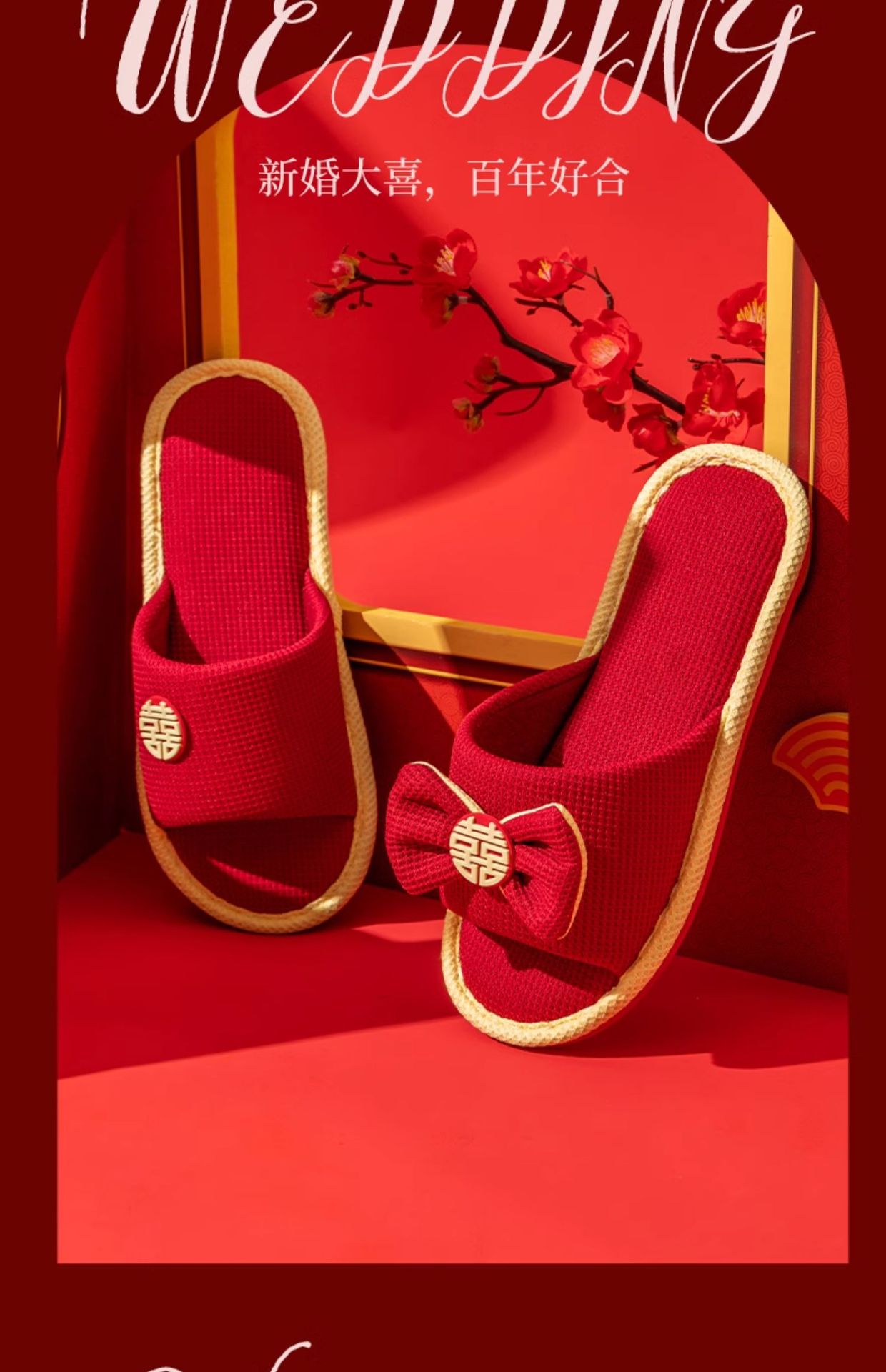 2024 новые свадебные тапочки пара большие красные праздничные слова