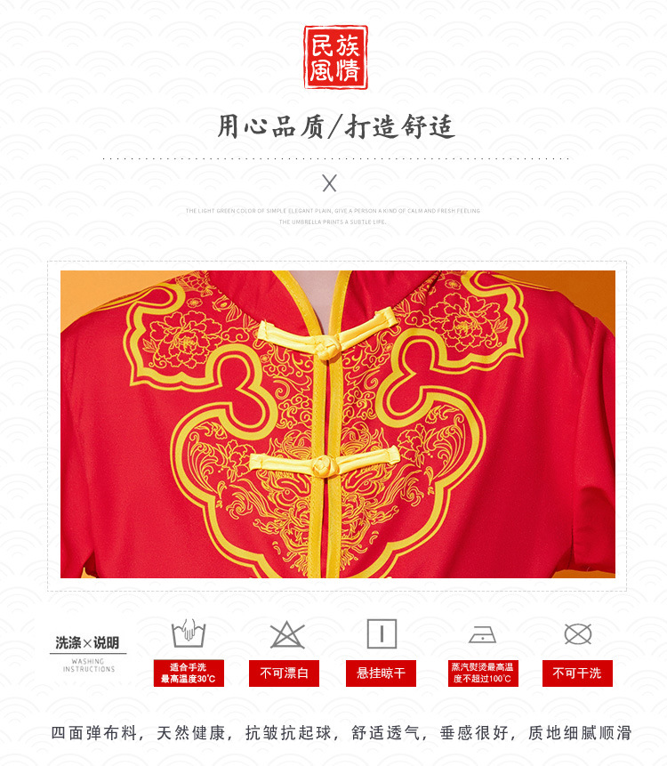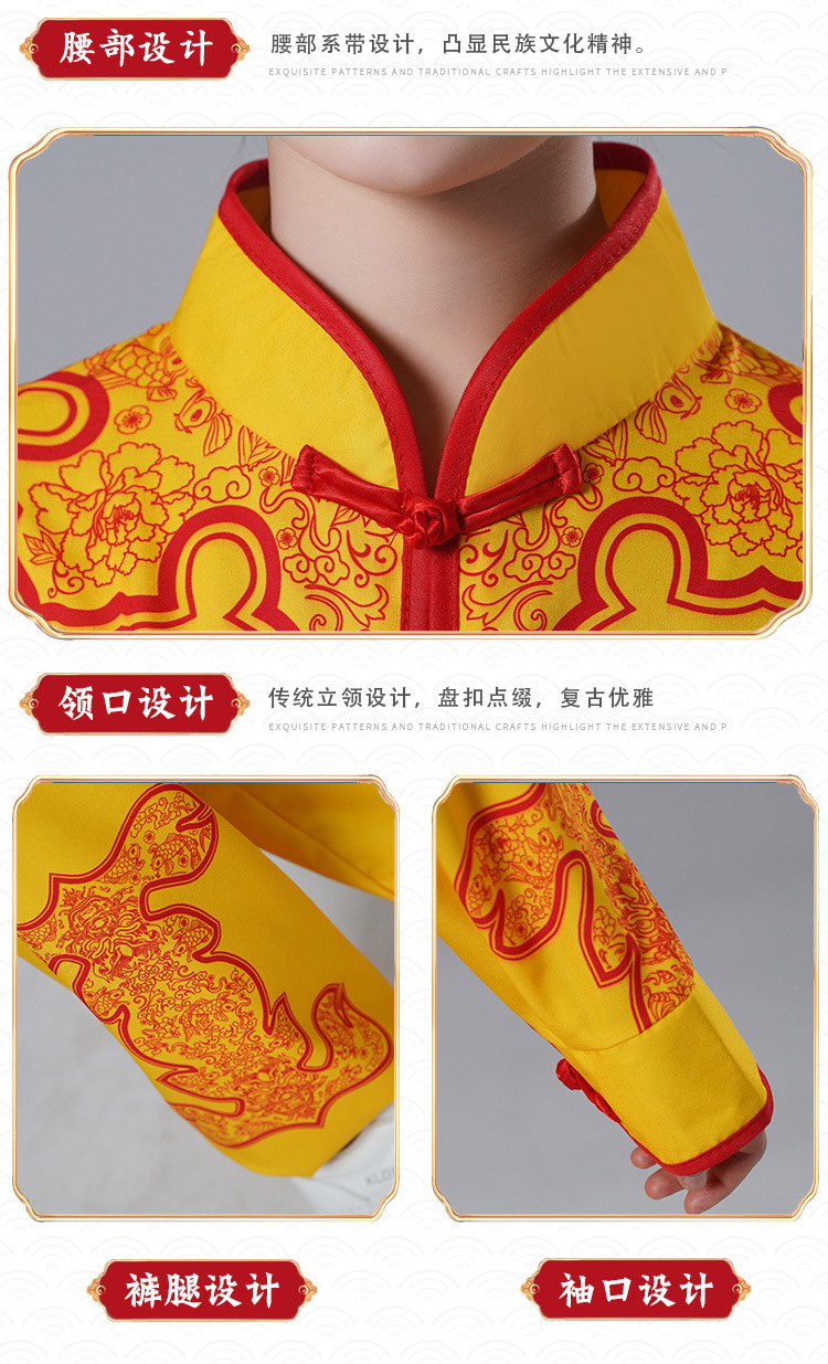 Белый с короткими рукавами вышитый дракон; Красный с короткими рукавами вышитый дракон; Желтый с короткими рукавами вышитый дракон; Красный длинный рукав вышитый дракон; Длинная черная вышивка дракона; Желтый длинный рукав вышитый дракон; Черный благоприятный облако; Красная модель благоприятного облака; Черная голова льва; Голова красного льва; Женский красный барабан; Мужские желтые барабаны; Женский желтый барабан; Мужские красные барабаны; Черный печатный дракон; Красный печатный дракон; Белый печатный дракон