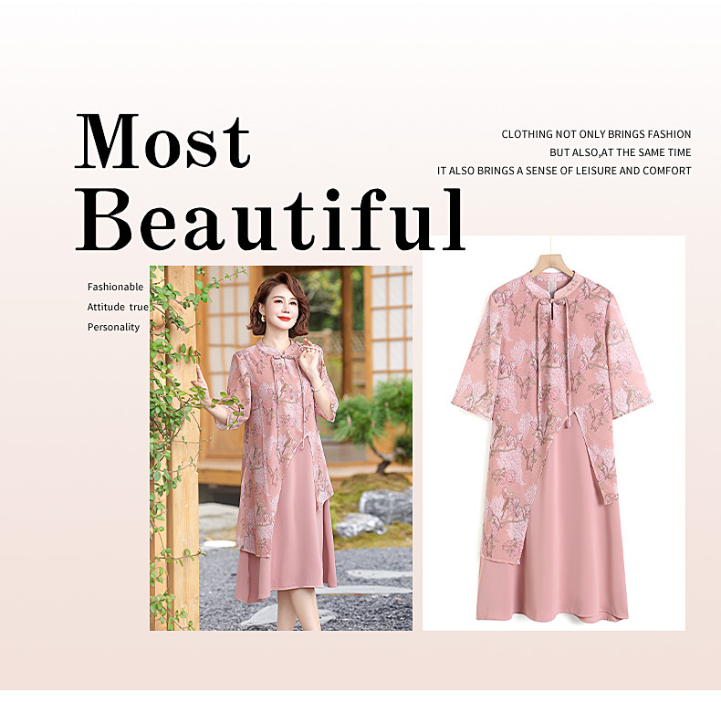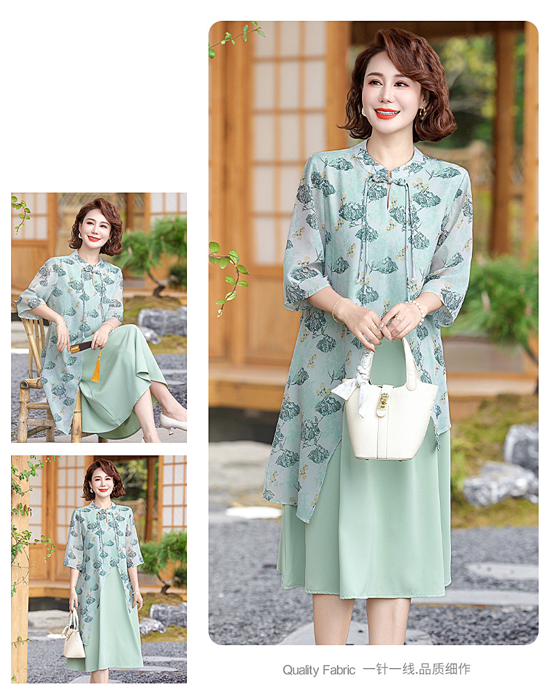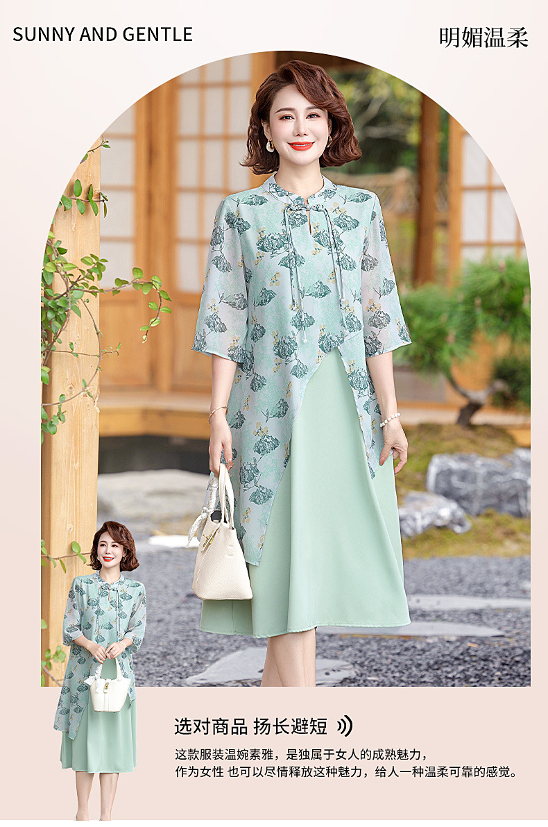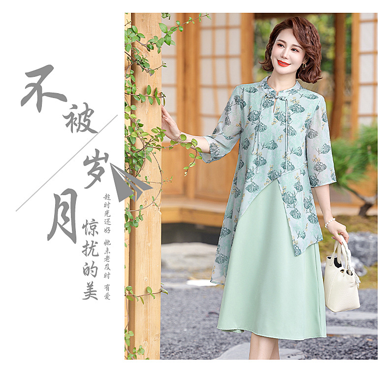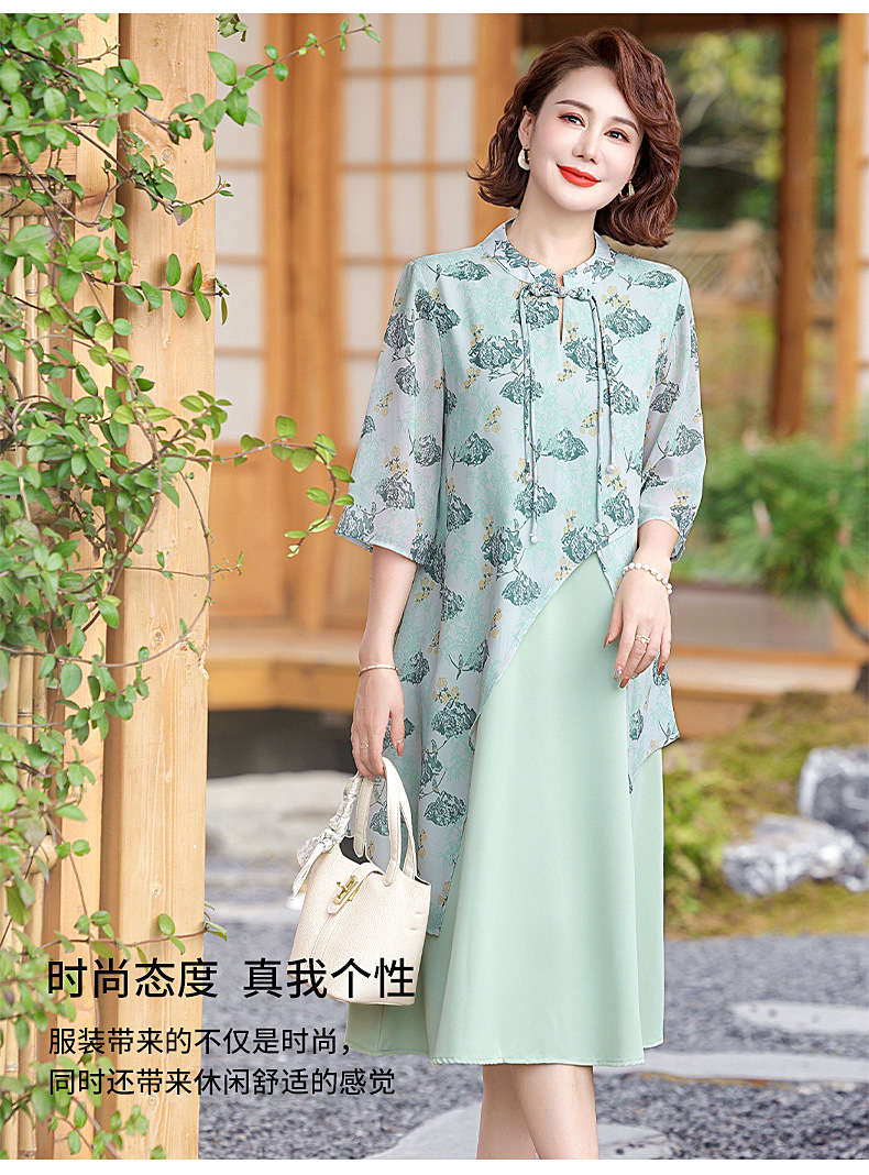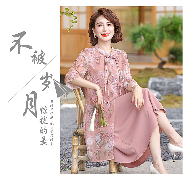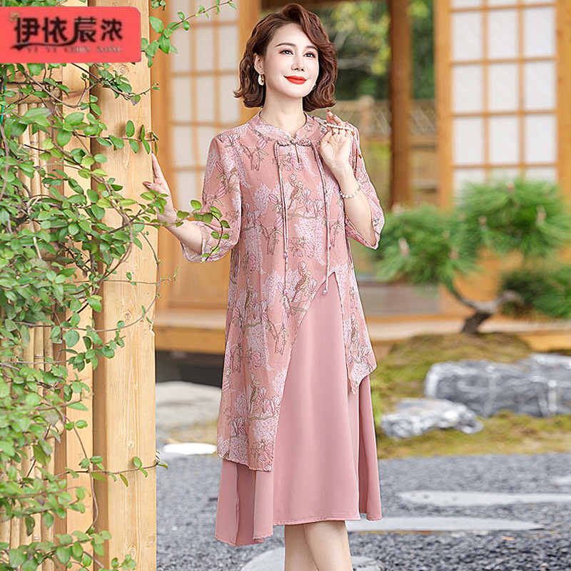 Летнее новое платье мамы в китайском стиле с короткими рукавами