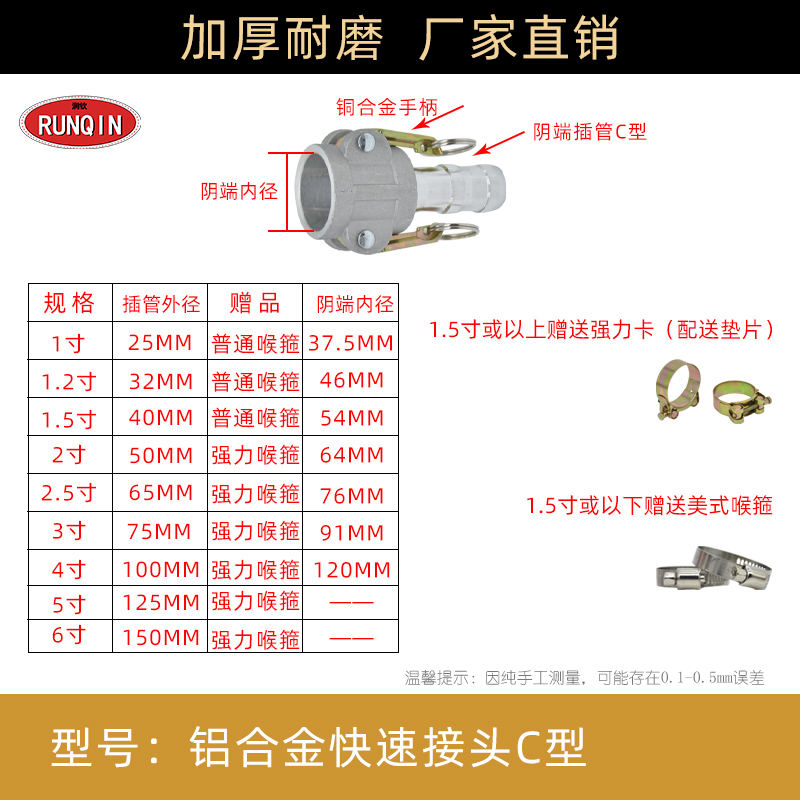 Алюминиевый сплав 6-точечного типа C (DN20) поставляется с зажимом.; [Толстая модель] Алюминиевый сплав 6-точечный тип C поставляется с зажимом; Алюминиевый сплав 1inch типа C (DN25) поставляется с зажимом.; [Утолщенная модель] Алюминиевый сплав 1inch Тип C поставляется с зажимом; Алюминиевый сплав 1.2inch типа C (DN32) поставляется с зажимом.; [Утолщенная модель] Алюминиевый сплав 1.2inch Тип C поставляется с зажимом; Алюминиевый сплав 1.5inch типа C (DN40) поставляется с зажимом.; [Утолщенная модель] Алюминиевый сплав 1.5inch Тип C поставляется с зажимом; Алюминиевый сплав 2inch типа C (DN50) поставляется с зажимом.; [Утолщенная модель] Алюминиевый сплав 2inch Тип C поставляется с зажимом; [Экспортное качество] Алюминиевый сплав 2inch Тип C поставляется с зажимом; Водяное удобрение 2inch Тип C + шаровой кран; Алюминиевый сплав 2.5inch типа C (DN65) поставляется с зажимом.; [Утолщенная модель] Алюминиевый сплав 2.5inch Тип C поставляется с зажимом; Алюминиевый сплав 3inch типа C (DN80) поставляется с зажимом.; [Утолщенная модель] Алюминиевый сплав 3inch Тип C поставляется с зажимом; [Экспортное качество] Алюминиевый сплав 3inch Тип C поставляется с зажимом; Водяное удобрение 3inch Тип C + шаровой кран; Алюминиевый сплав 4inch типа C (DN100) поставляется с зажимом.; [Утолщенная модель] Алюминиевый сплав 4inch Тип C поставляется с зажимом; [Экспортное качество] Алюминиевый сплав 4inch Тип C поставляется с зажимом; Водяное удобрение 4inch Тип C + шаровой кран; Алюминиевый сплав 5inch типа C (DN125) поставляется с зажимом.; Алюминиевый сплав 6inch типа C (DN150) поставляется с зажимом.; Алюминиевый сплав 8inch типа C (DN200) поставляется с зажимом.; Алюминиевый сплав 1.5inch переменный к 1inch Тип C поставляется с зажимом; Алюминиевый сплав 1.5inch переменный к 1.2inch Тип C поставляется с зажимом; Алюминиевый сплав 2inch до 1inch типа C поставляется с зажимом; Алюминиевый сплав 2inch переменный к 1.2inch Тип C поставляется с зажимом; Алюминиевый сплав 2inch переменный к 1.5inch Тип C поставляется с зажимом; Алюминиевый сплав 2inch переменный к 2.5inch Тип C поставляется с зажимом; Алюминиевый сплав 2.5inch переменный к 1inch Тип C поставляется с зажимом; Алюминиевый сплав 2.5inch переменный к 1.2inch Тип C поставляется с зажимом; Алюминиевый сплав 2.5inch переменный к 1.5inch Тип C поставляется с зажимом; Алюминиевый сплав 2.5inch переменный к 2inch Тип C поставляется с зажимом; Алюминиевый сплав 2.5inch переменный к 3inch Тип C поставляется с зажимом; Алюминиевый сплав 3inch переменный к 1inch Тип C поставляется с зажимом; Алюминиевый сплав 3inch переменный до 1inch смещение типа C с зажимом; Алюминиевый сплав 3inch переменный к 1.2inch Тип C поставляется с зажимом; Алюминиевый сплав 3inch переменный до 1.2inch смещение с зажимом; Алюминиевый сплав 3inch переменный к 1.5inch Тип C поставляется с зажимом; Алюминиевый сплав 3inch переменный до 1.5inch смещение с зажимом; Алюминиевый сплав 3inch переменный к 2inch Тип C поставляется с зажимом; Алюминиевый сплав 3inch переменный к 2.5inch Тип C поставляется с зажимом; Алюминиевый сплав 3inch переменный к 4inch Тип C поставляется с зажимом; Алюминиевый сплав 4inch переменный к 1inch Тип C поставляется с зажимом; Алюминиевый сплав 4inch переменный к 1.2inch Тип C поставляется с зажимом; Алюминиевый сплав 4inch переменный к 1.5inch Тип C поставляется с зажимом; Алюминиевый сплав 4inch переменный к 2inch Тип C поставляется с зажимом; Алюминиевый сплав 4inch переменный к 2.5inch Тип C поставляется с зажимом; Алюминиевый сплав 4inch переменный к 3inch Тип C поставляется 
