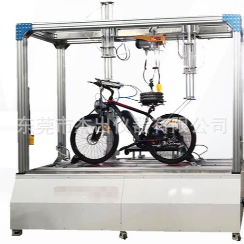 1、本设备主要测试测试自行车车轮的静负荷强度,在轮辋上某一点施加370N(GB为178N)的力,方向与车轮平面相垂直,这个力只要施加一次,并持续1 min。测试完毕后,车轮之任何零部件不应断裂,轮辋上施力点的永久变形应不大于1.5mm。