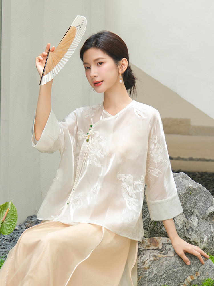 Новая китайская тяжелая промышленная вышивка свободная тонкая рубашка популярна в начале лета