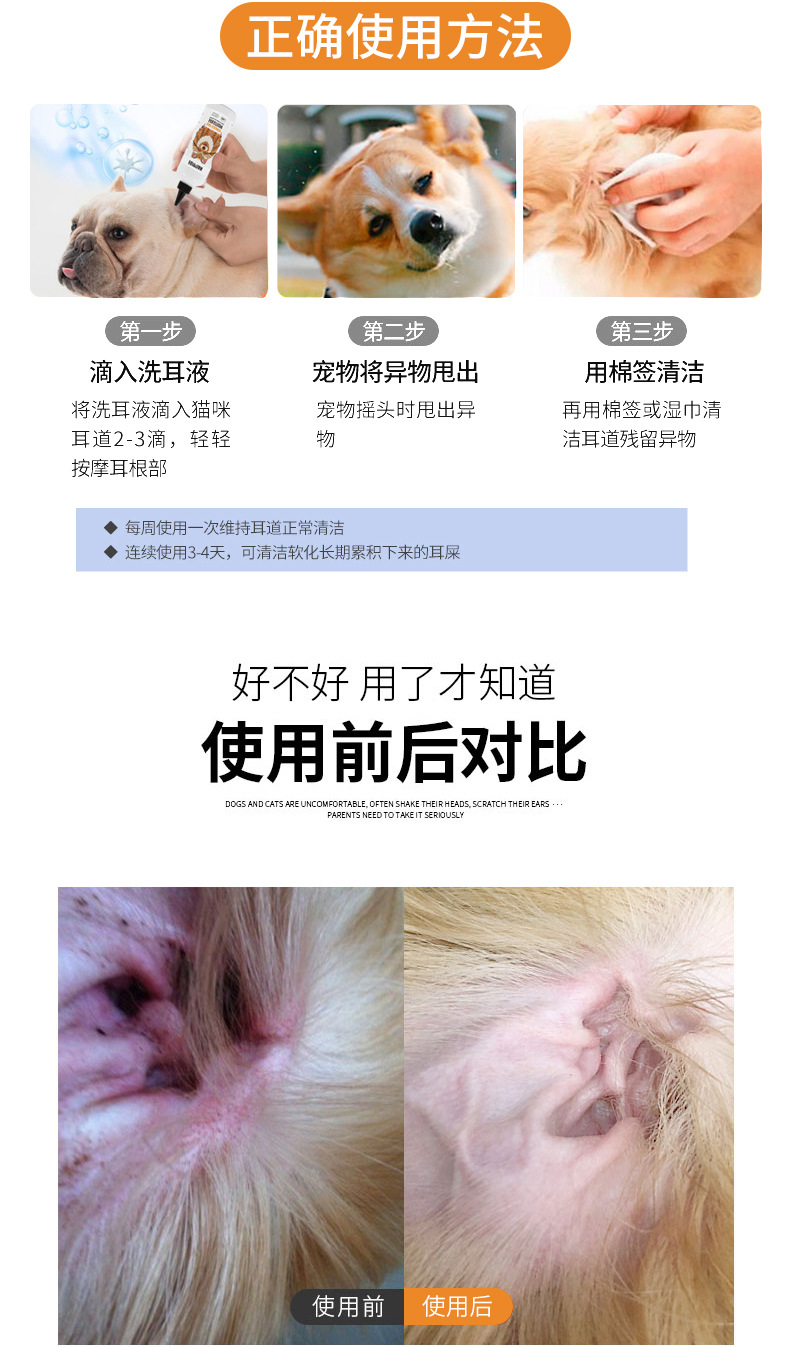 Ушные капли для чистки ушей с промывкой ушей Домашние животные кошки собаки