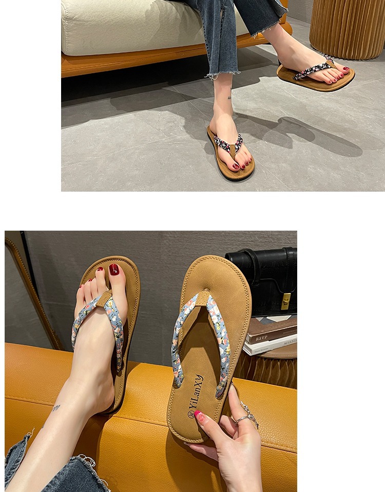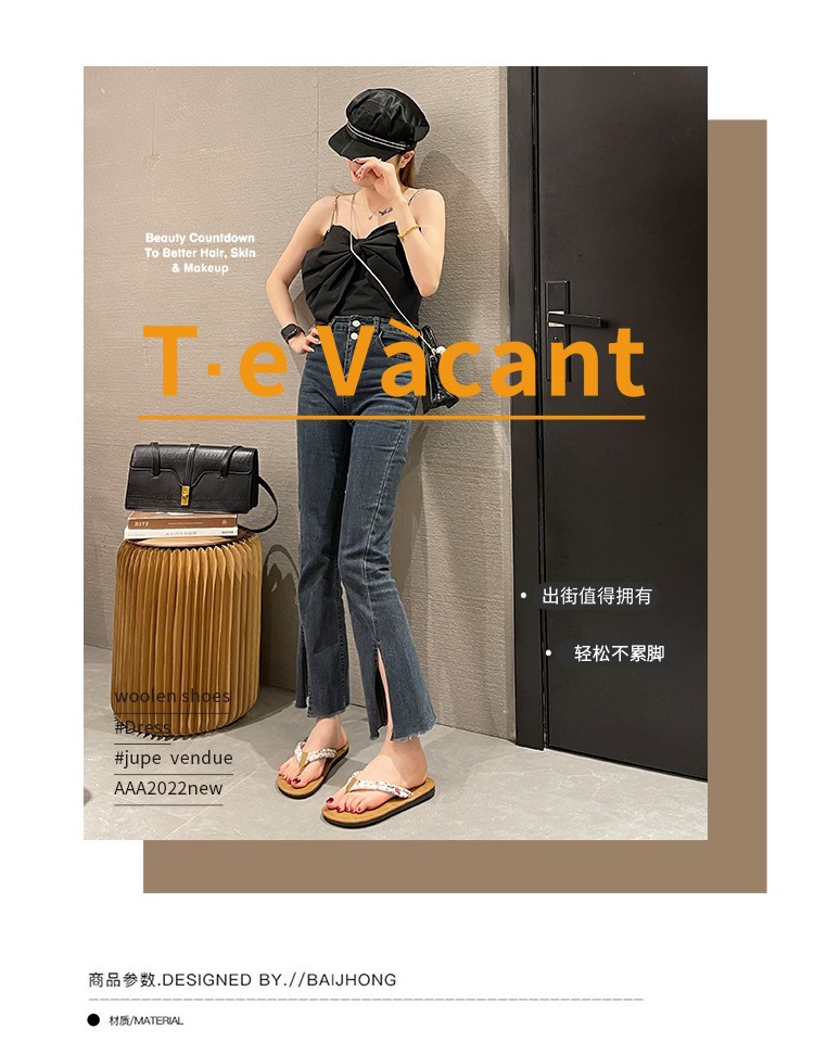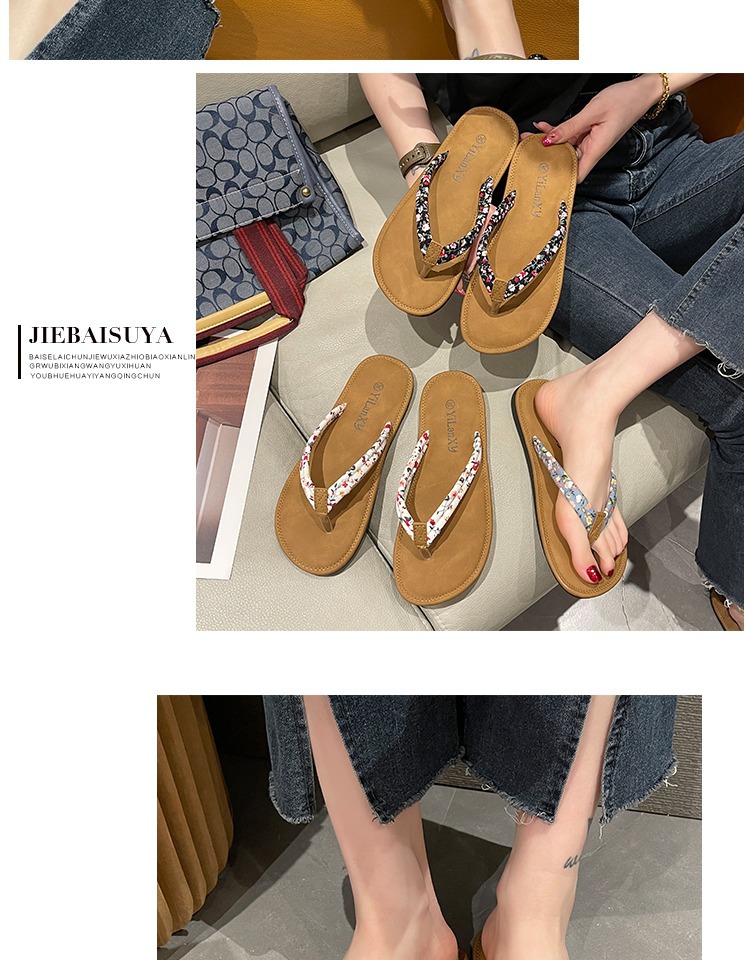 Оптовая новая летняя мода снаружи носить дикие ножки плоские шлепанцы на каблуках женские нескользящие плоские пляжные холодные тапочки