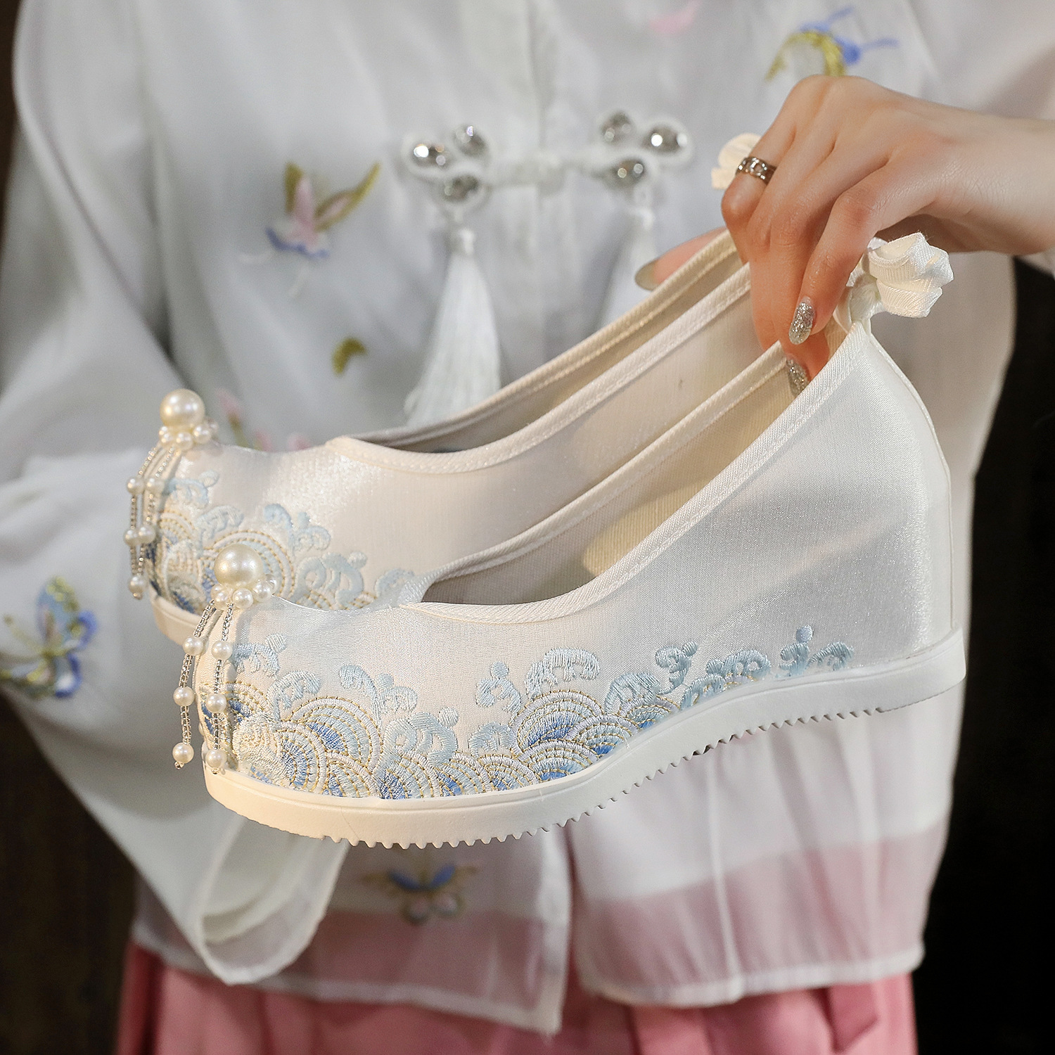 Новая обувь Hanfu Студентка вышитая обувь древний стиль