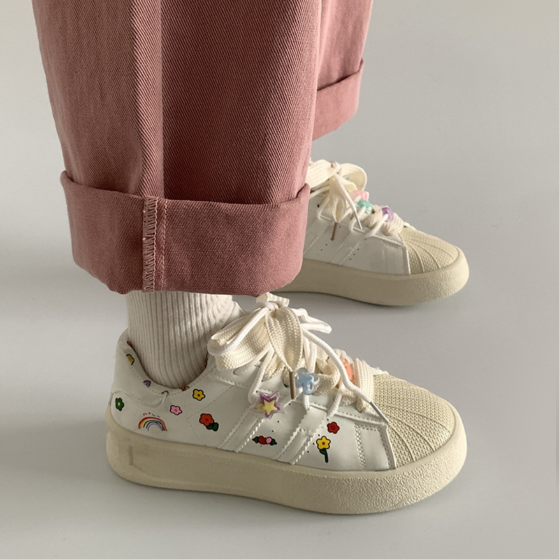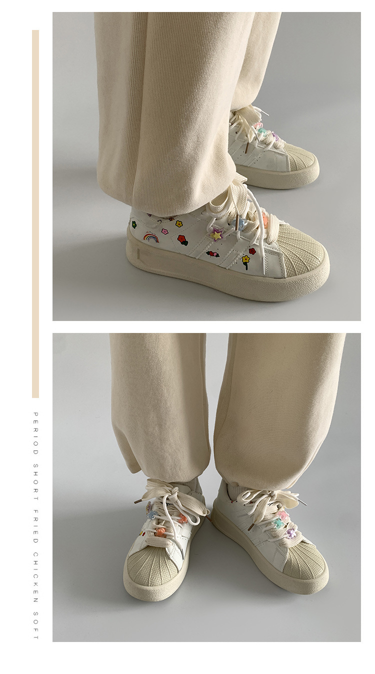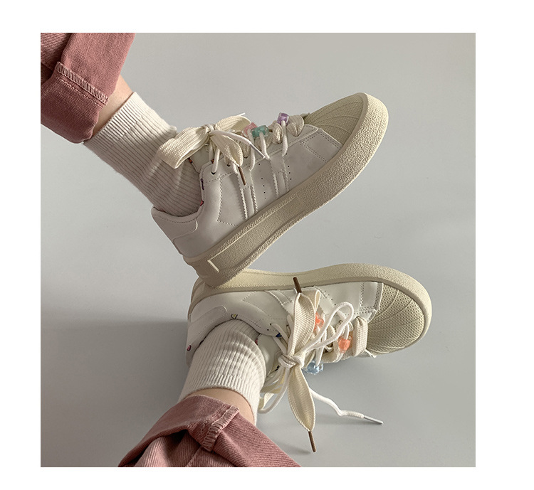 2024 весна новый стиль нишевые дизайнерские туфли с раковиной головы повседневные туфли ретро DIY бисер шнуровка