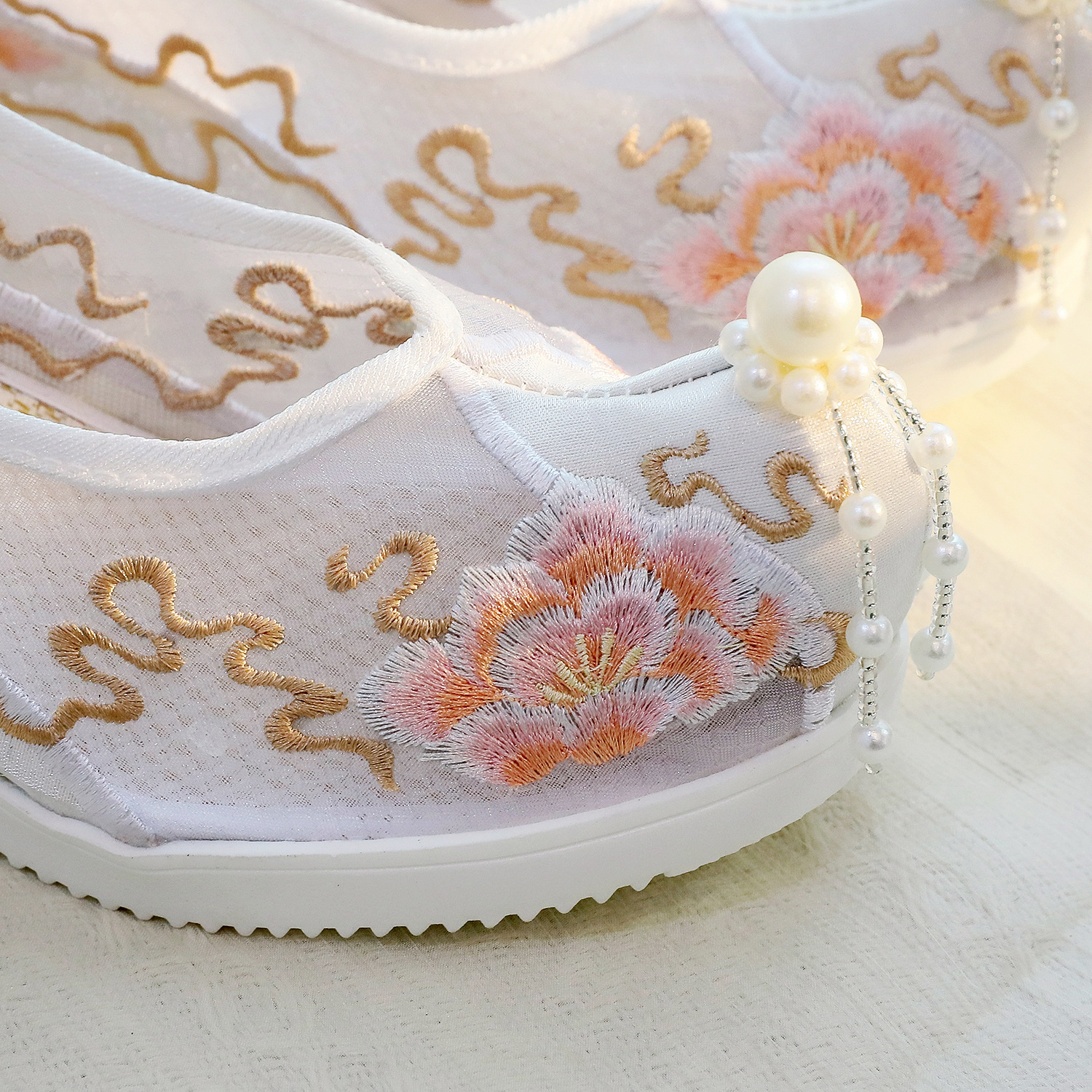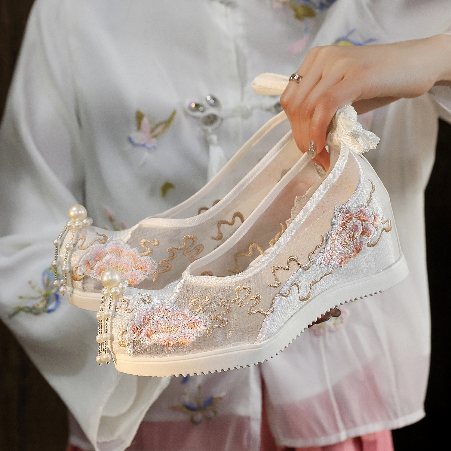 Yunbailian сетчатая пряжа 2024 летом новый древний ветер с вышивкой сандалии вышивка дышащая мягкая подошва сетчатая обувь Hanfu