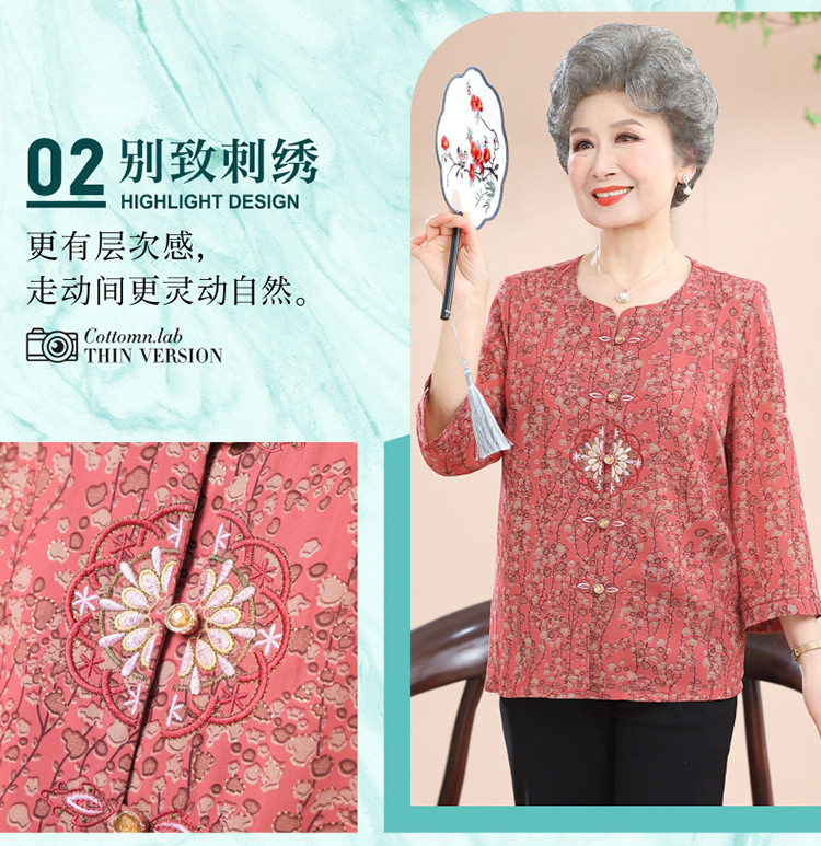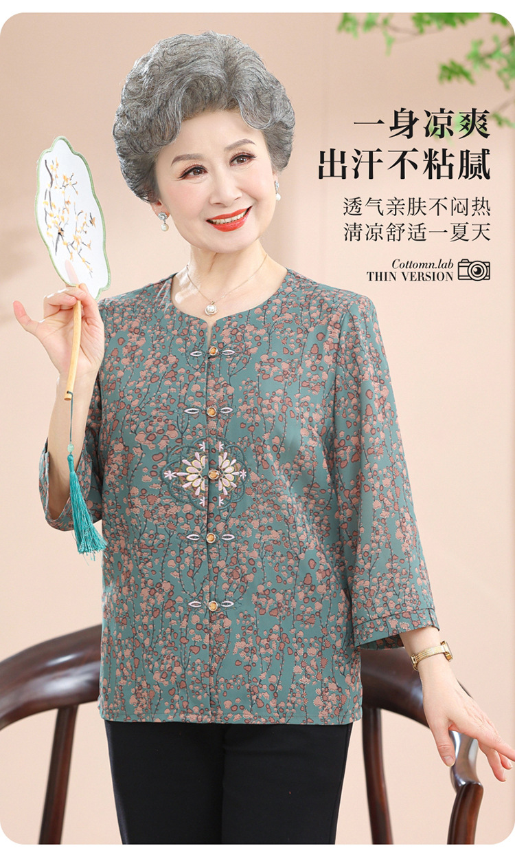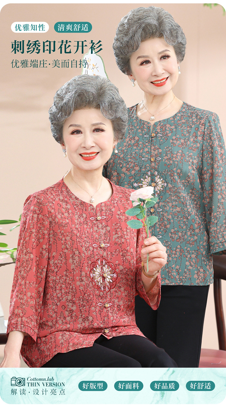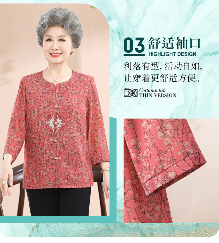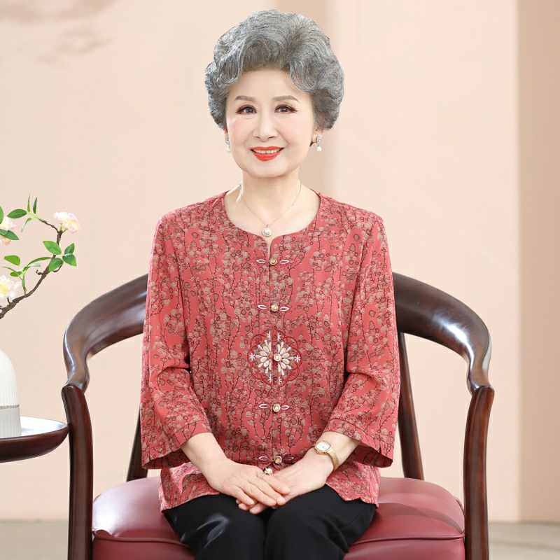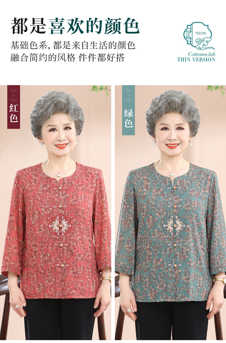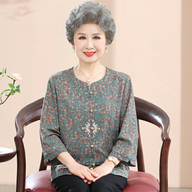 Пожилые люди одежда женская весна/лето рубашка бабушка 60 лет 70 пожилая женщина топ мама рубашка с девятью рукавами тонкое пальто