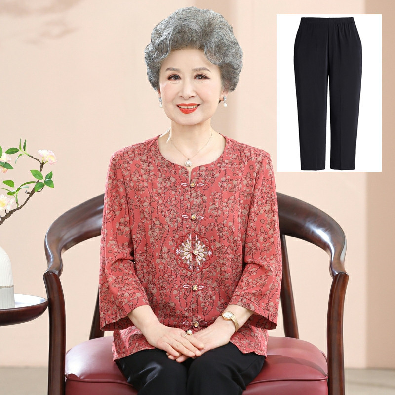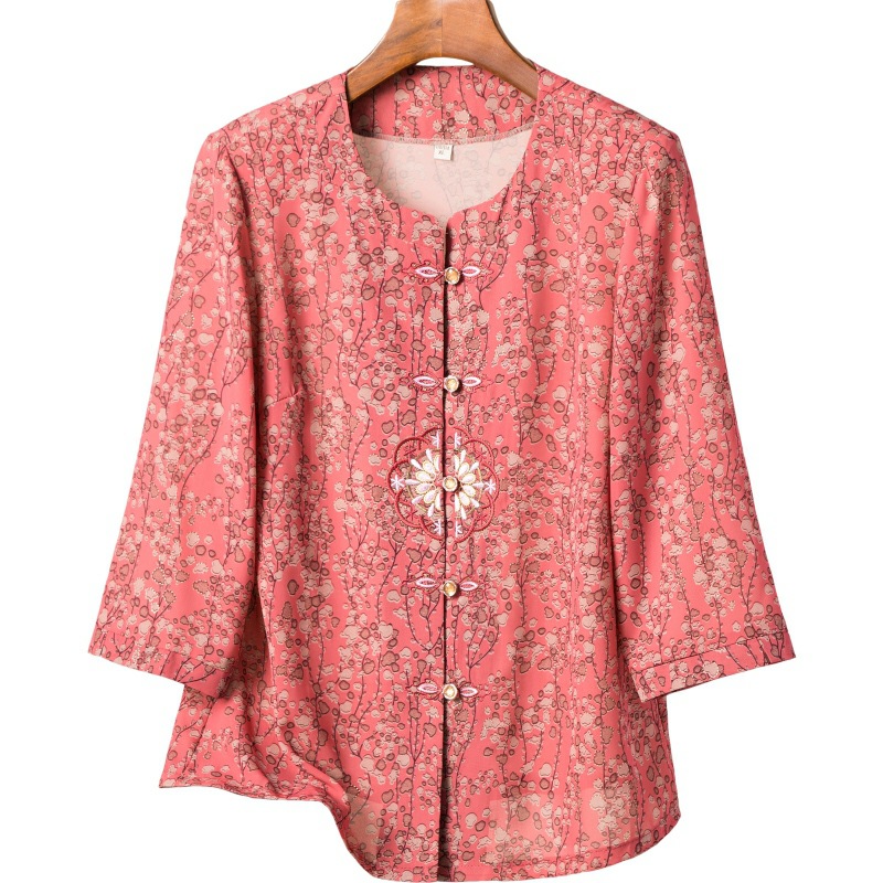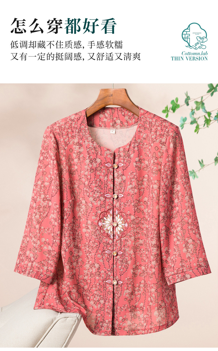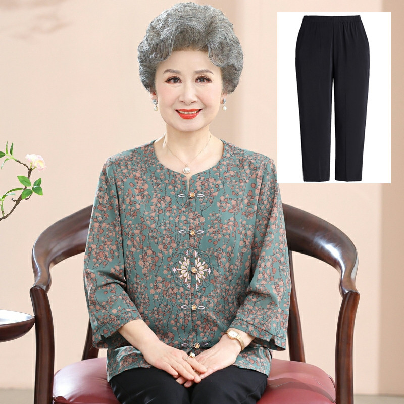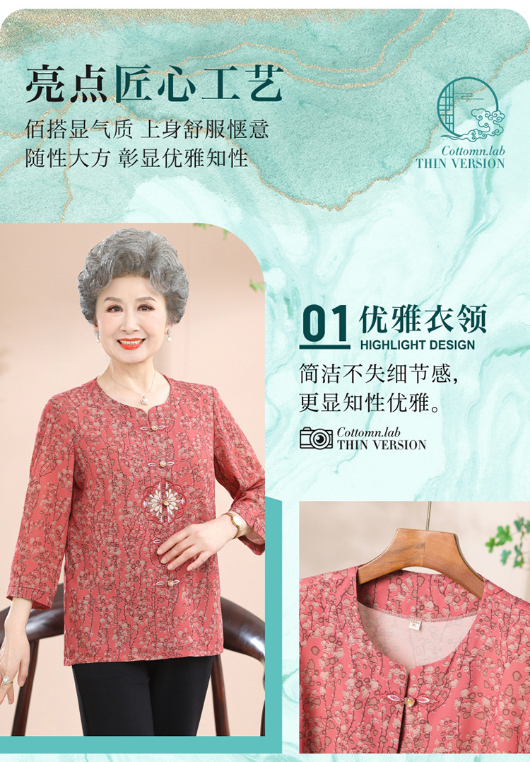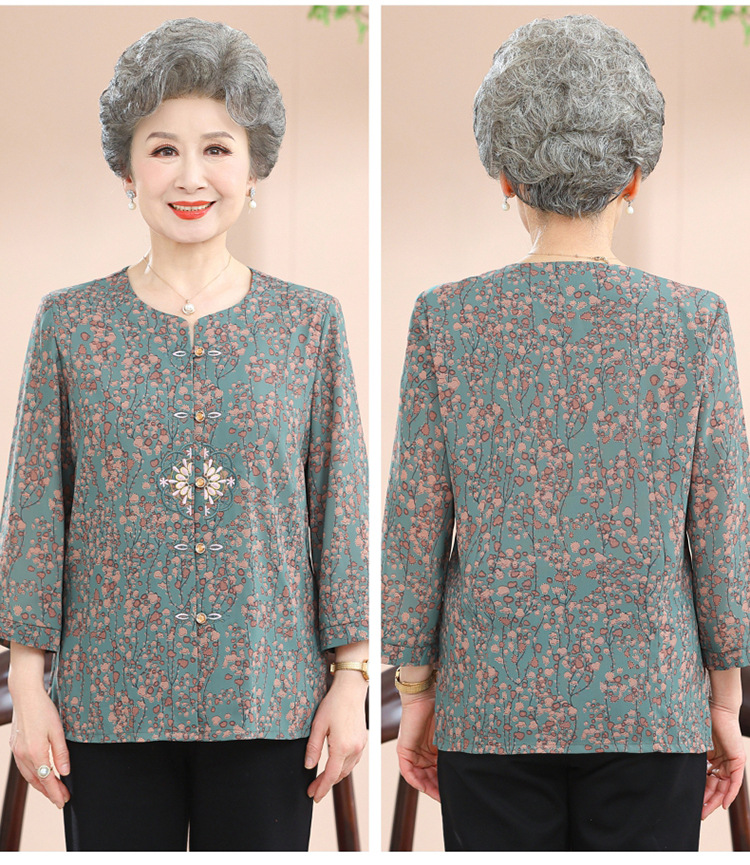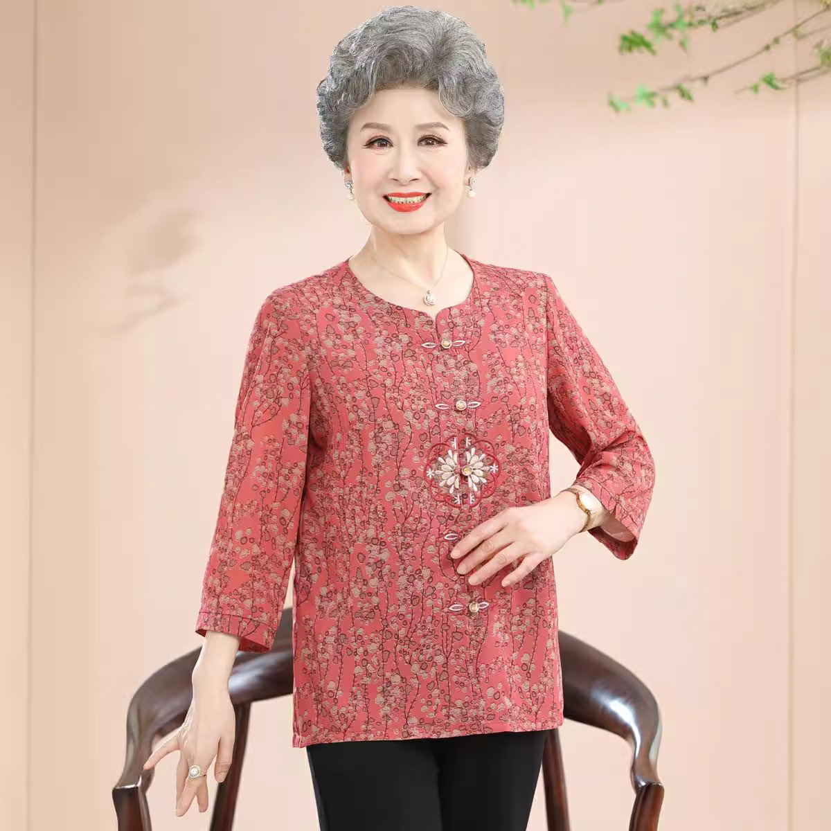 Пожилые люди одежда женская весна/лето рубашка бабушка 60 лет 70 пожилая женщина топ мама рубашка с девятью рукавами тонкое пальто
