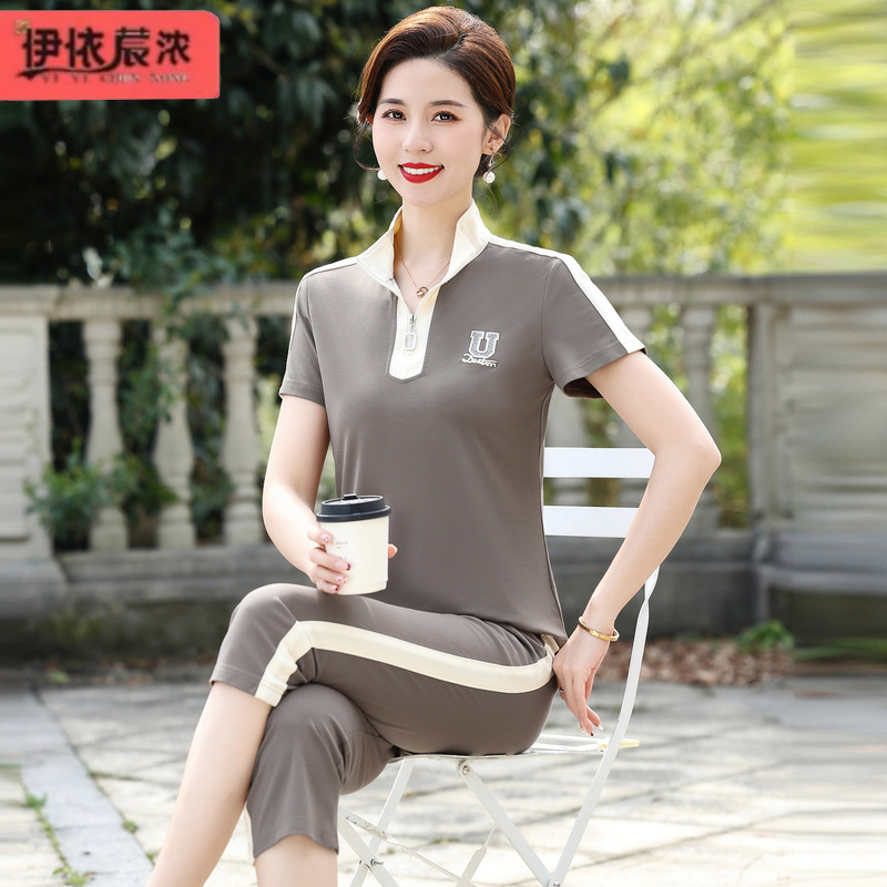 Тощая мама одеваются повседневные комплекты с короткими рукавами