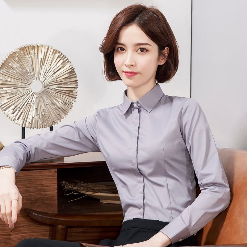 Женская белая рубашка с длинными рукавами тонко эластичная без горячего бамбукового волокна на работе Интервью Профессиональная одежда Рабочая одежда Белая рубашка
