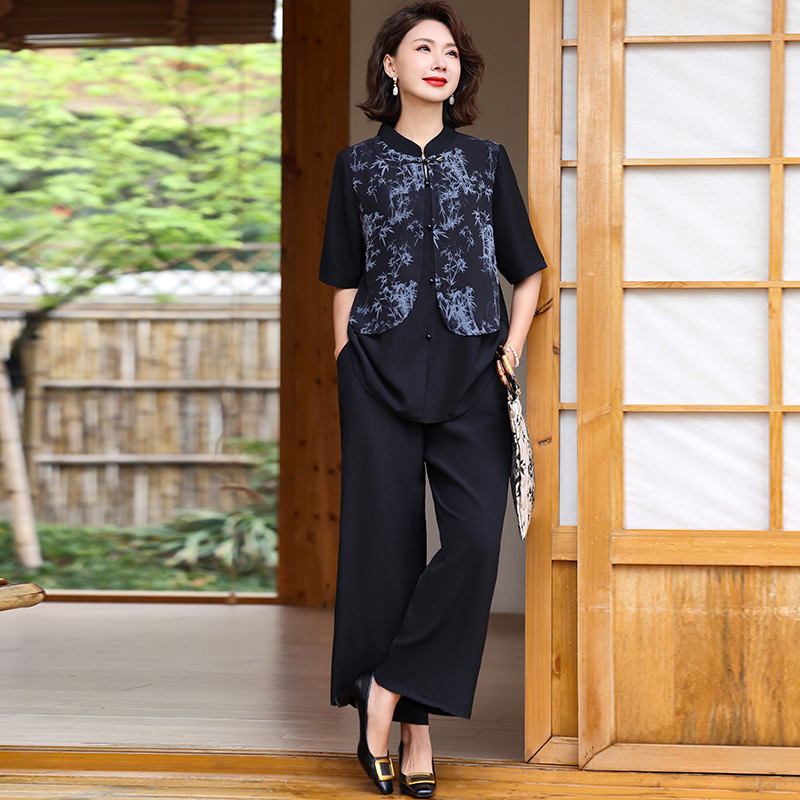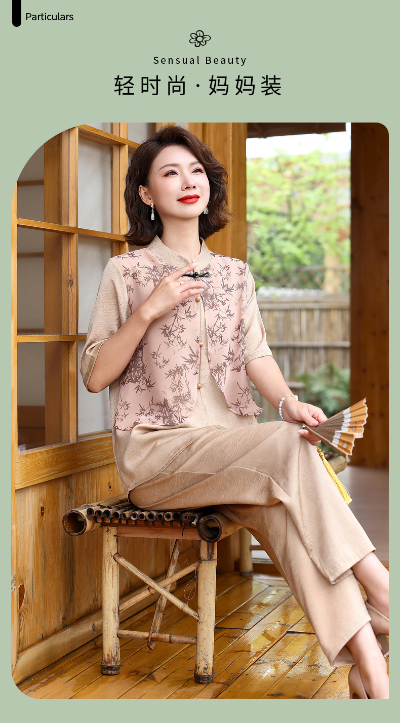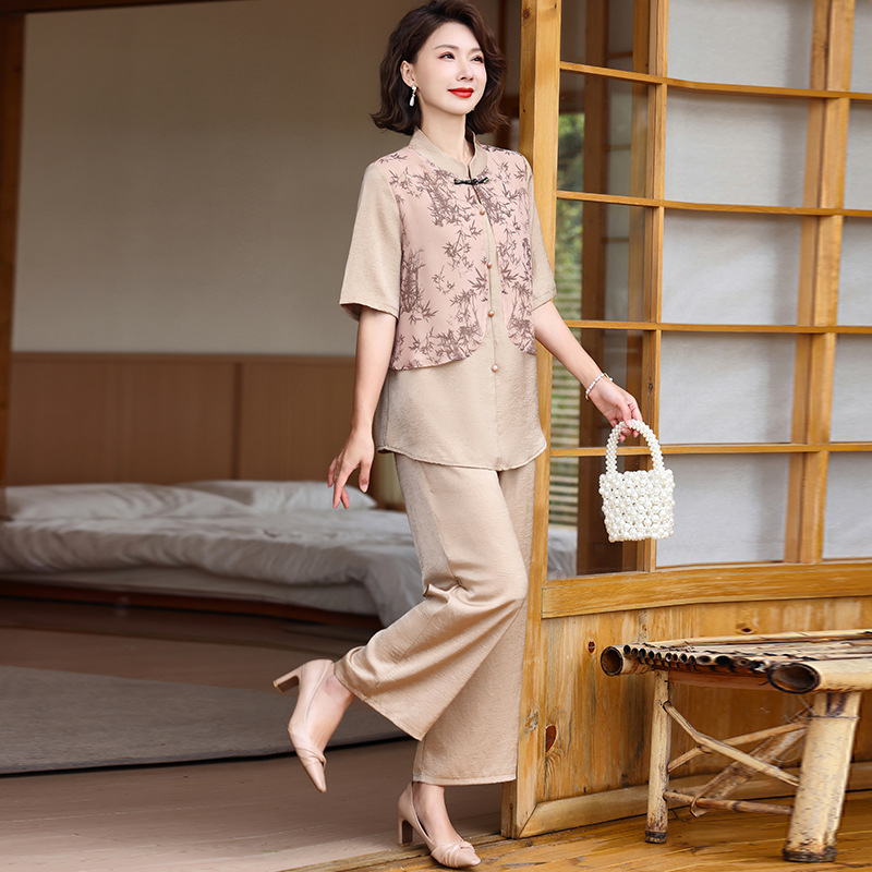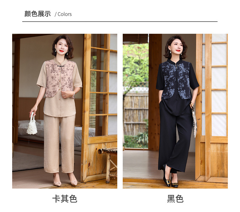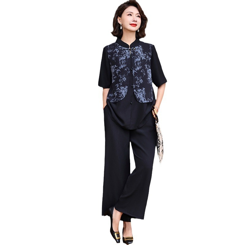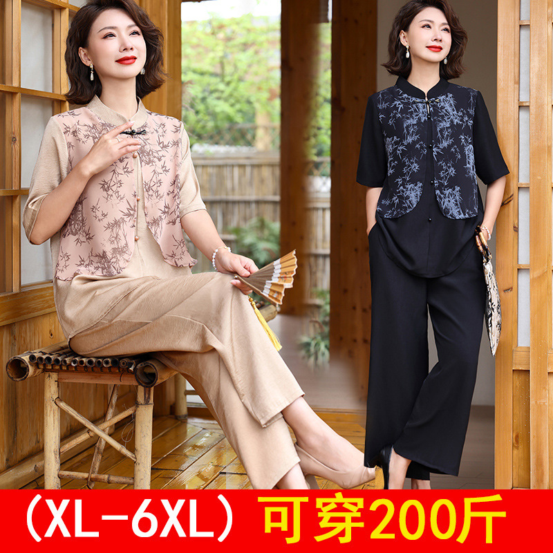 Китайский костюм с короткими рукавами плюс мама большого размера 50-летняя женщина среднего и пожилого возраста свободный большой размер прохладный и вертикальный набор
