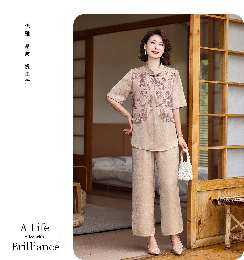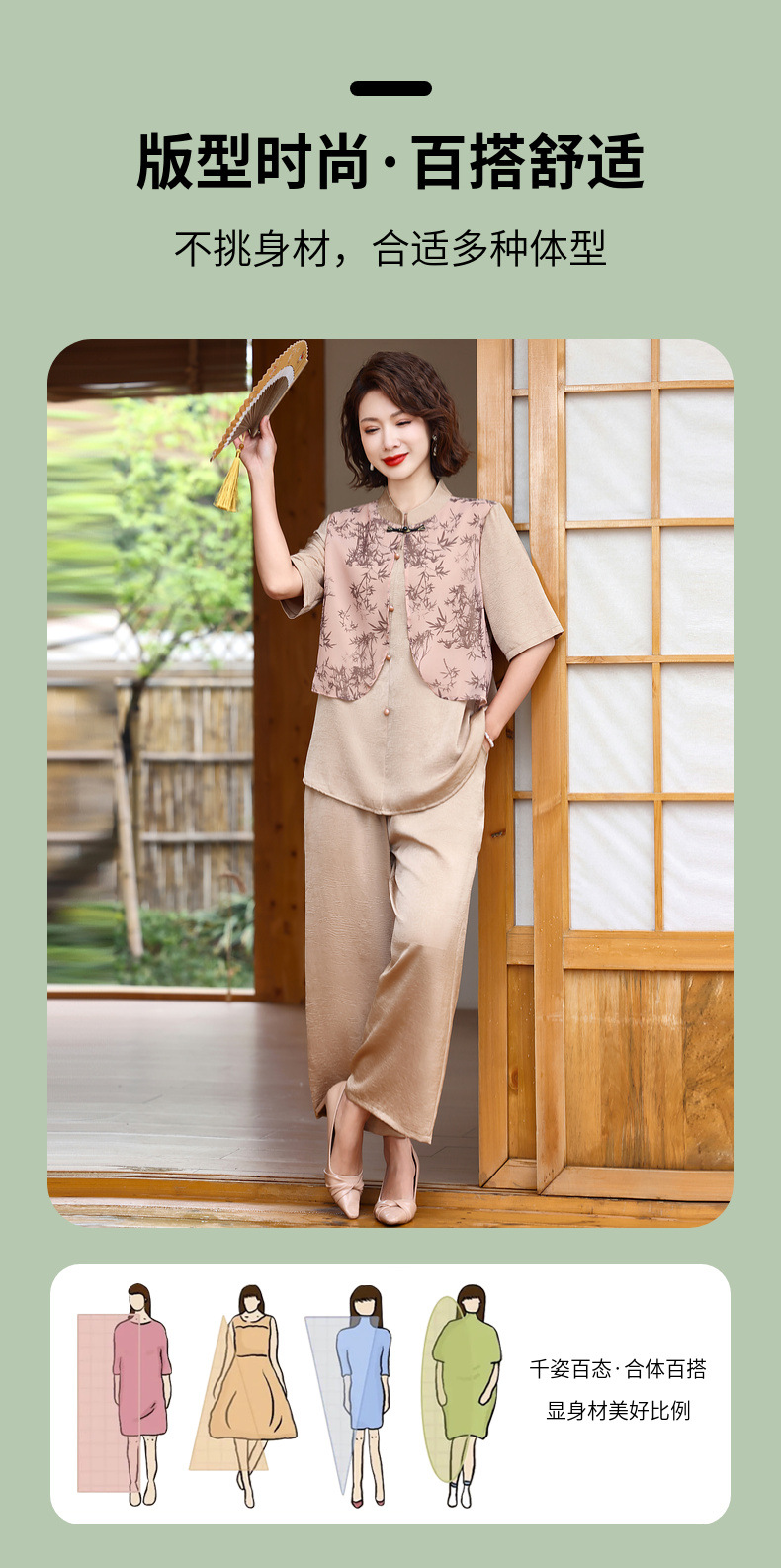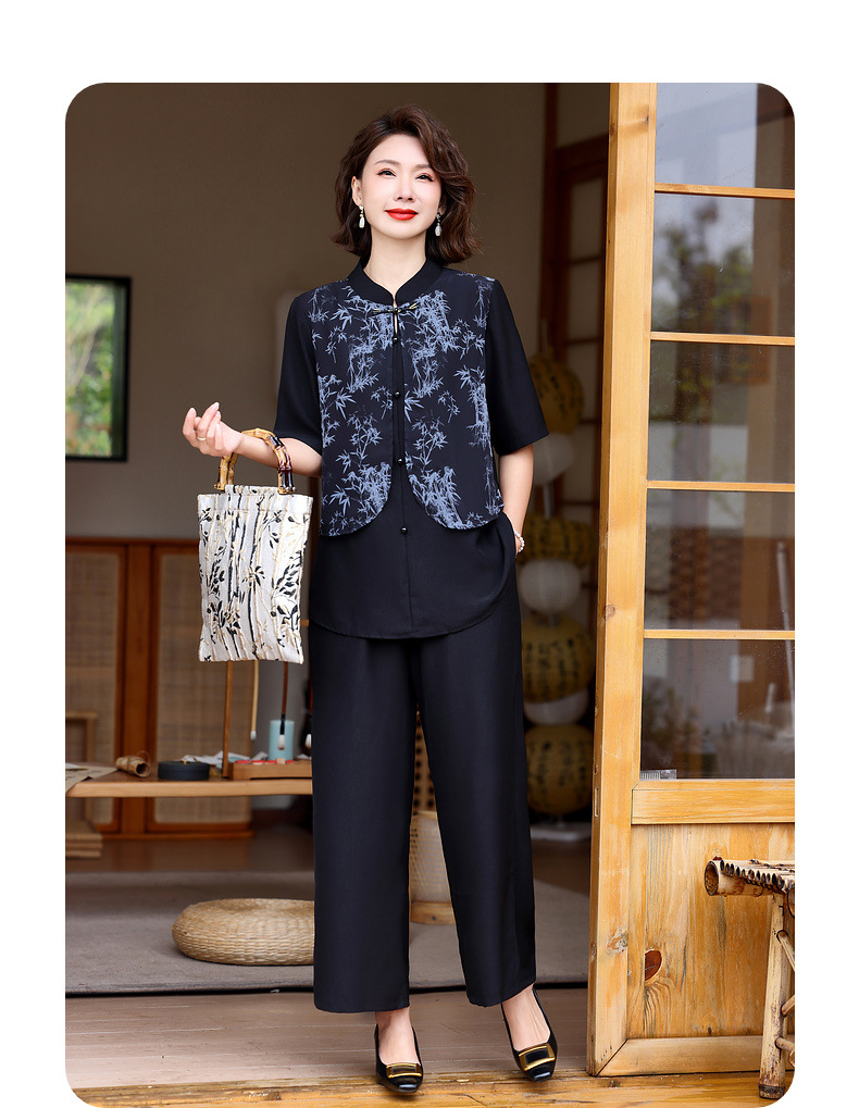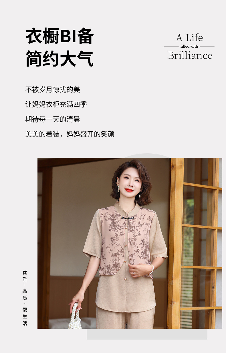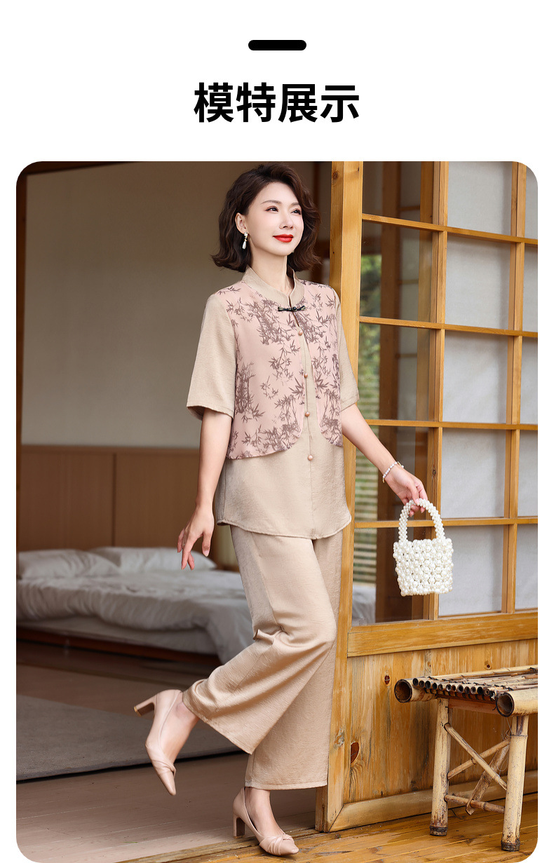 Китайский костюм с короткими рукавами плюс мама большого размера 50-летняя женщина среднего и пожилого возраста свободный большой размер прохладный и вертикальный набор