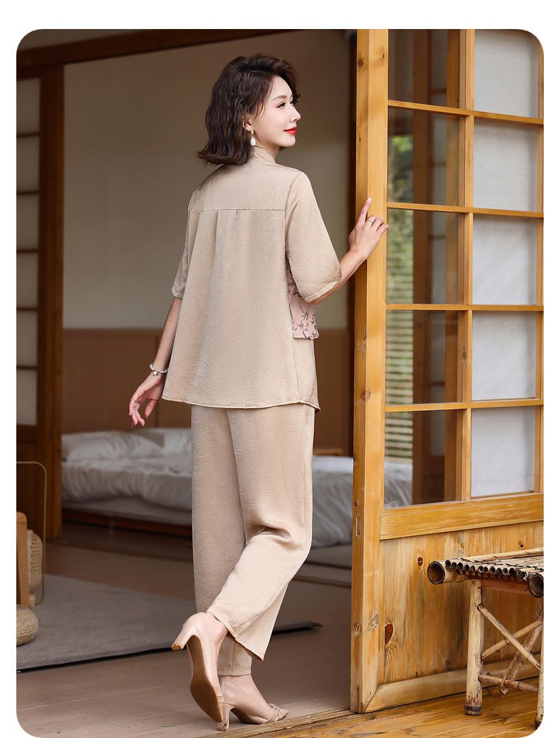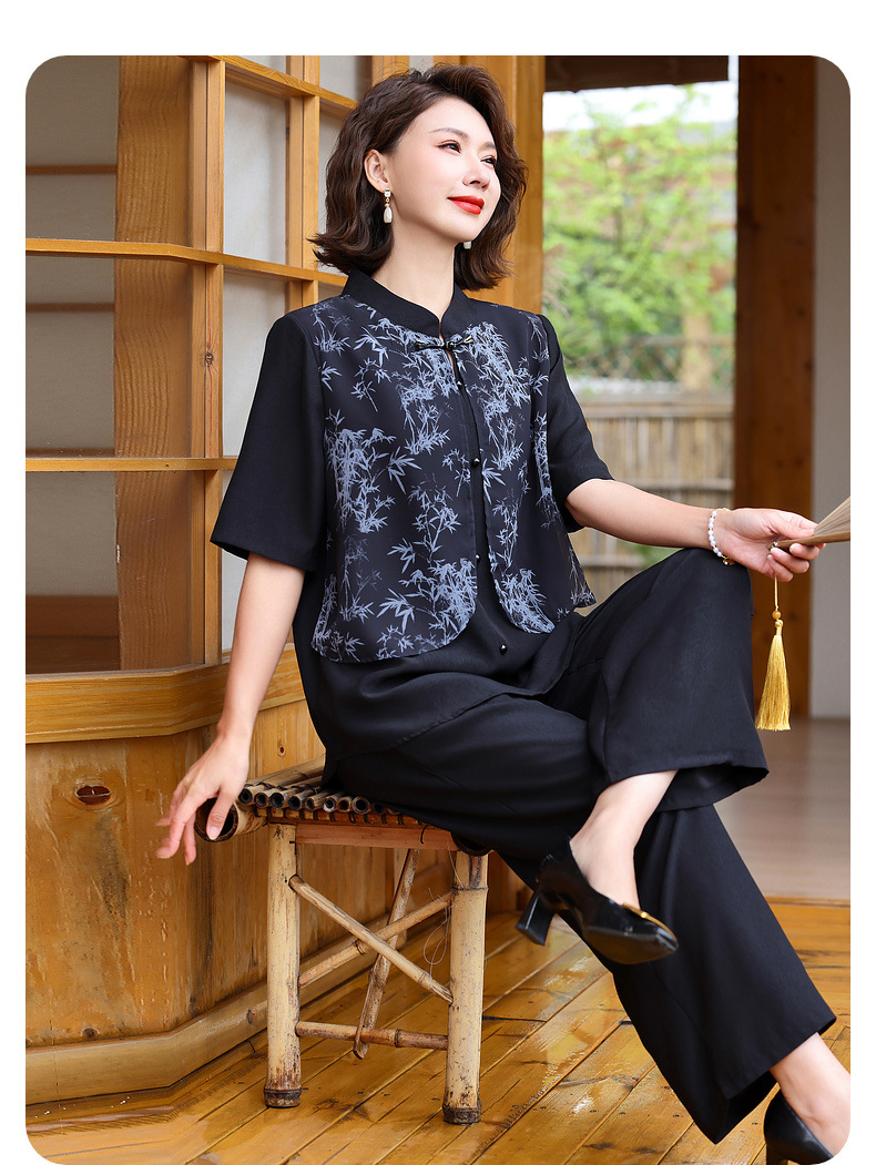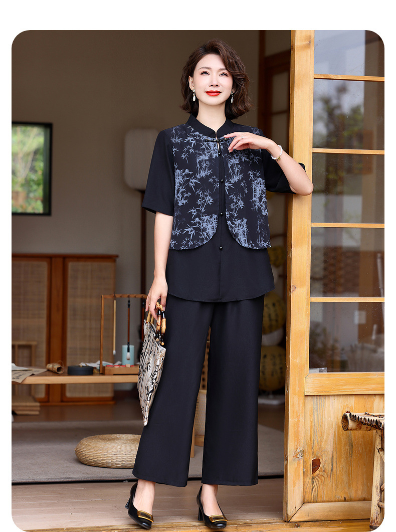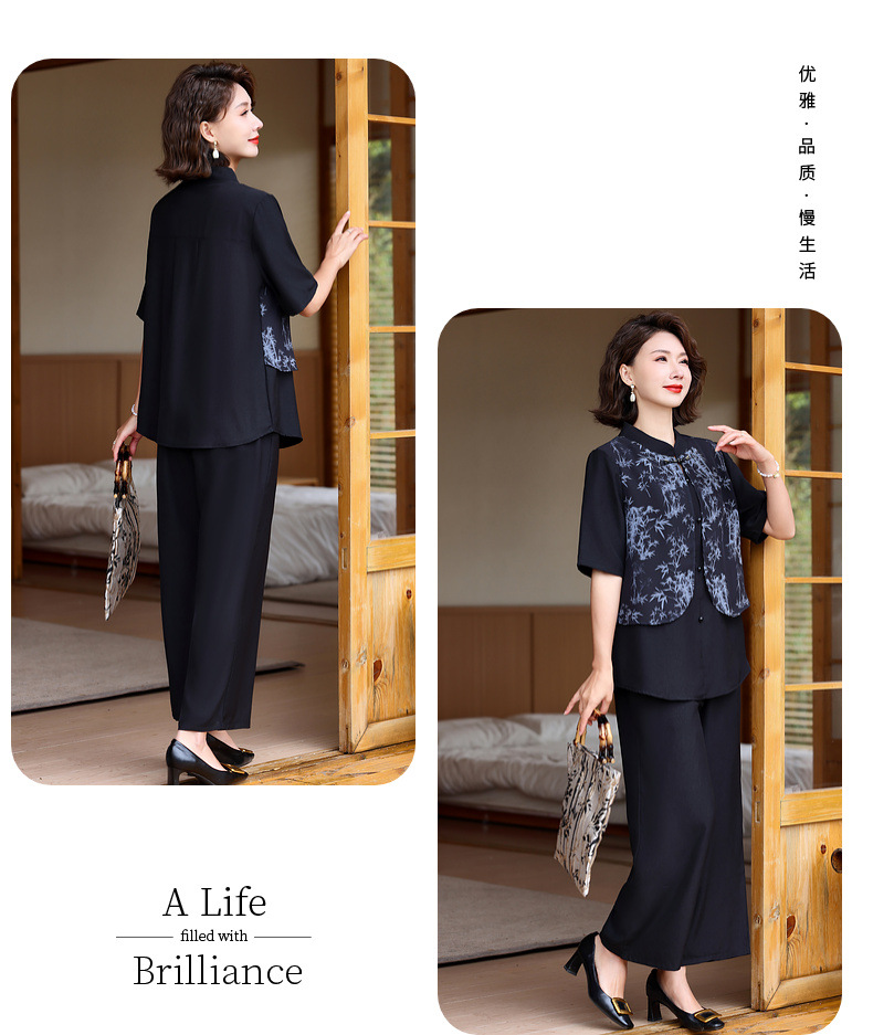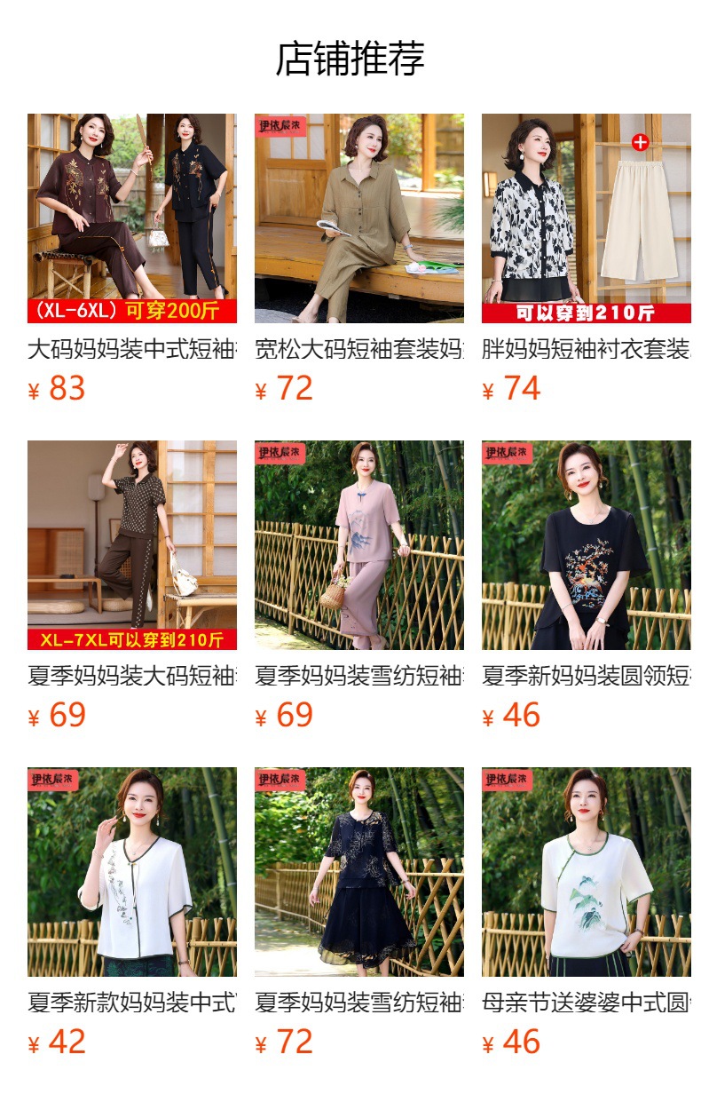 Китайский костюм с короткими рукавами плюс мама большого размера 50-летняя женщина среднего и пожилого возраста свободный большой размер прохладный и вертикальный набор