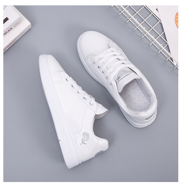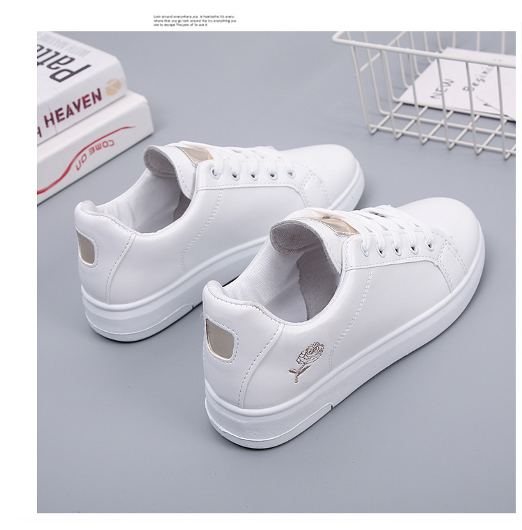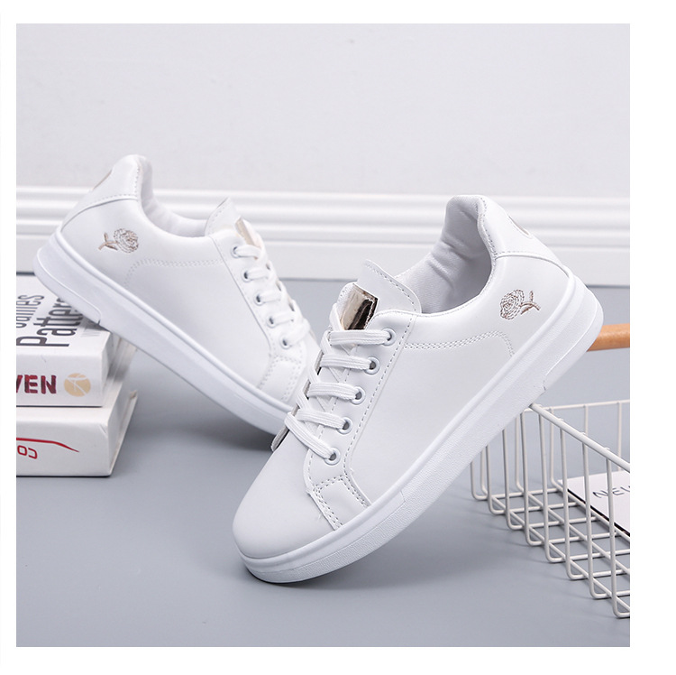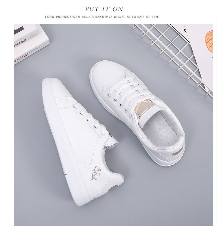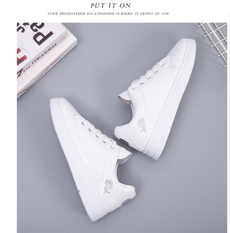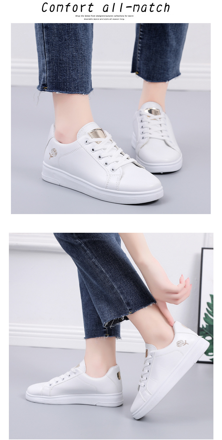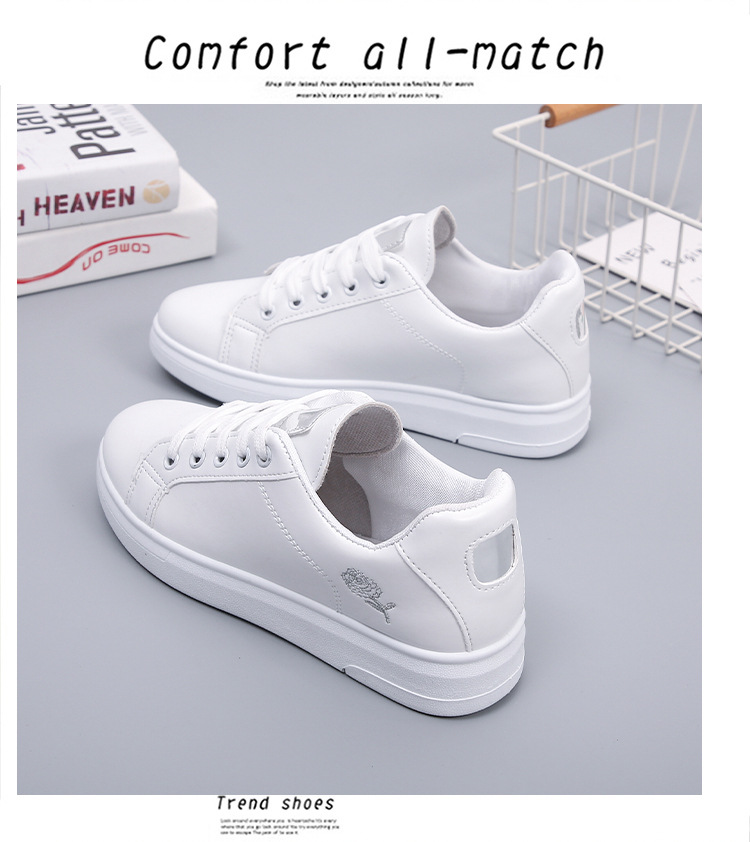 大码皮面时尚爆款小白鞋女2025新款春秋季百搭学生ins潮韩版百搭休闲运动平底板鞋跑步鞋轻便高品质复古潮流面包鞋女鞋鞋子外贸跨境大量现货支持外贸代发玫瑰花滑板鞋