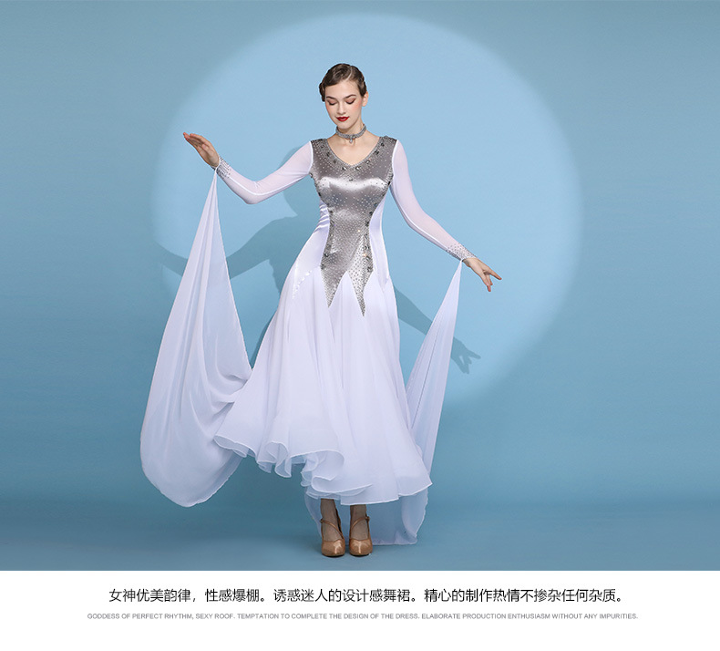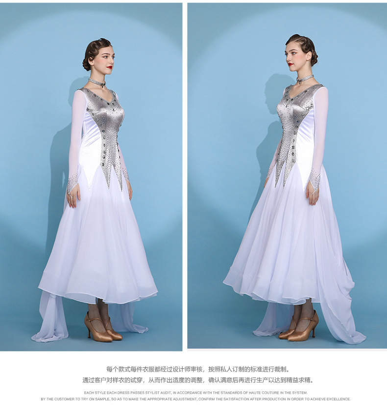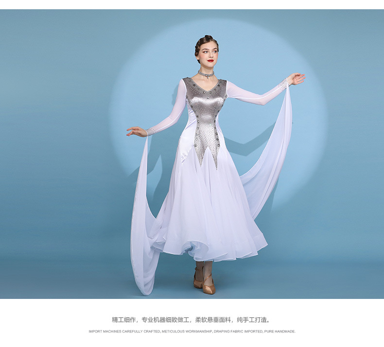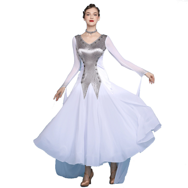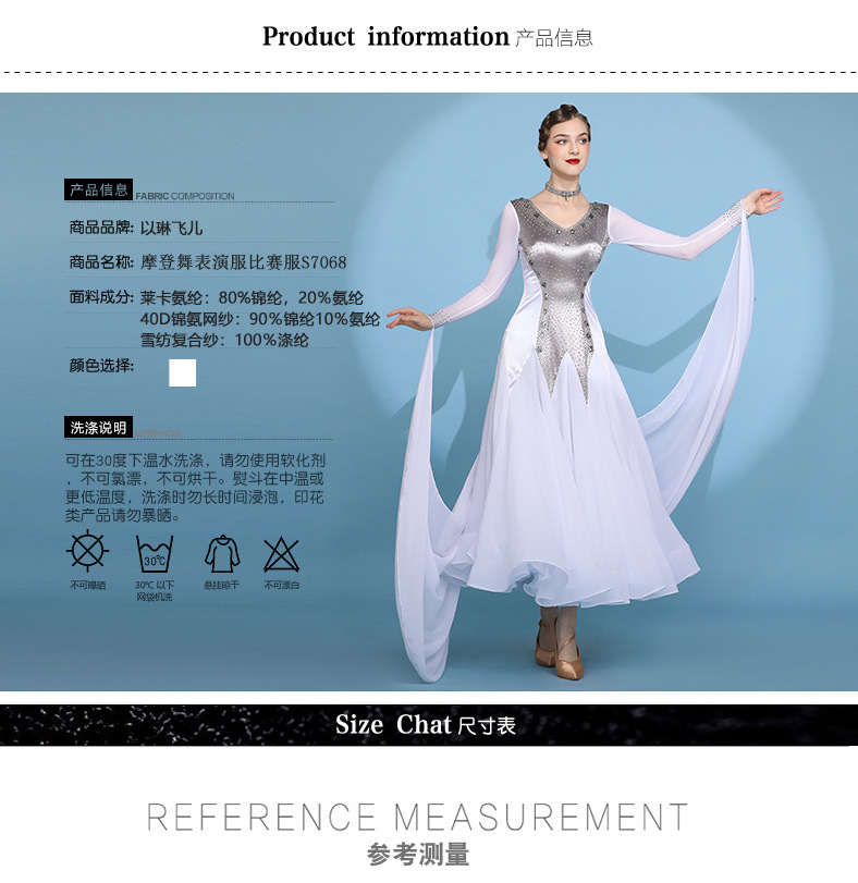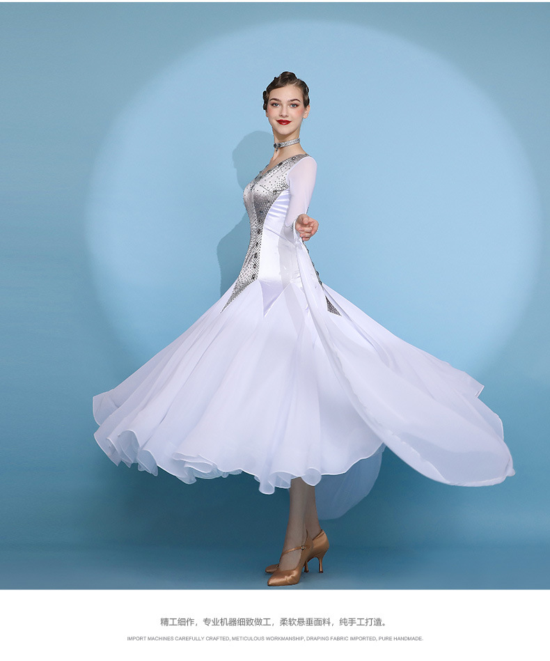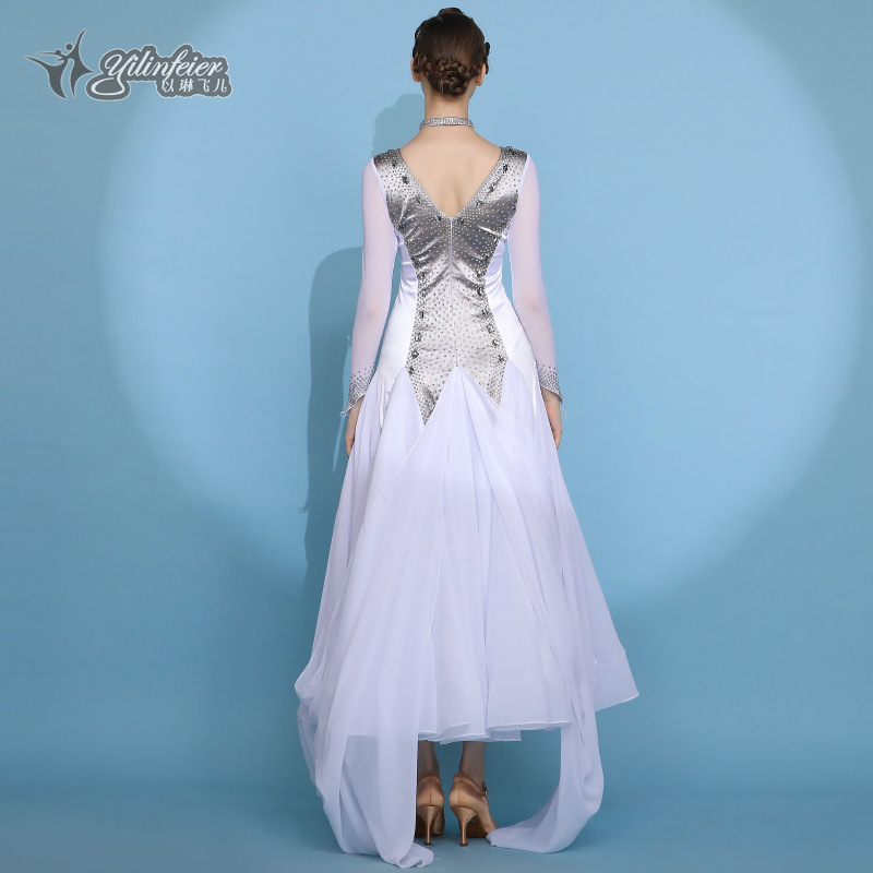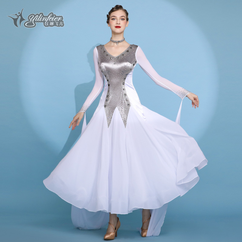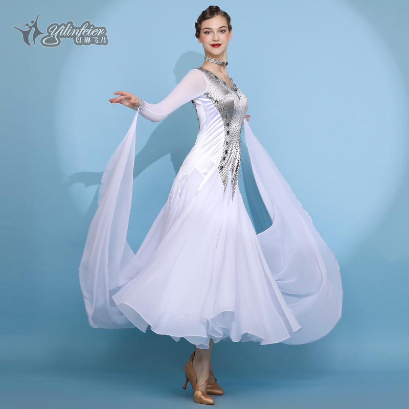 Новый современный танцевальный костюм с Lin Feier S7068 белый костюм для танцевального вальса