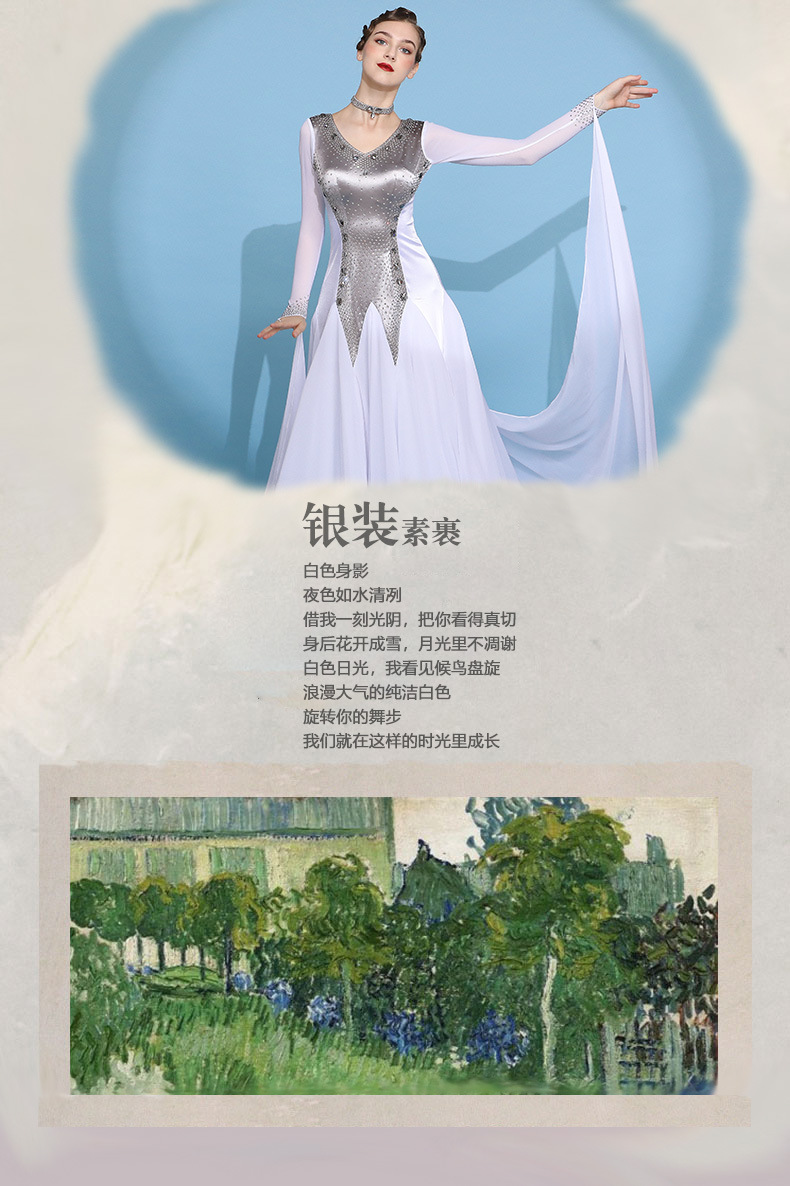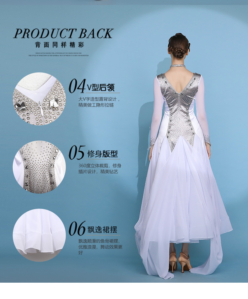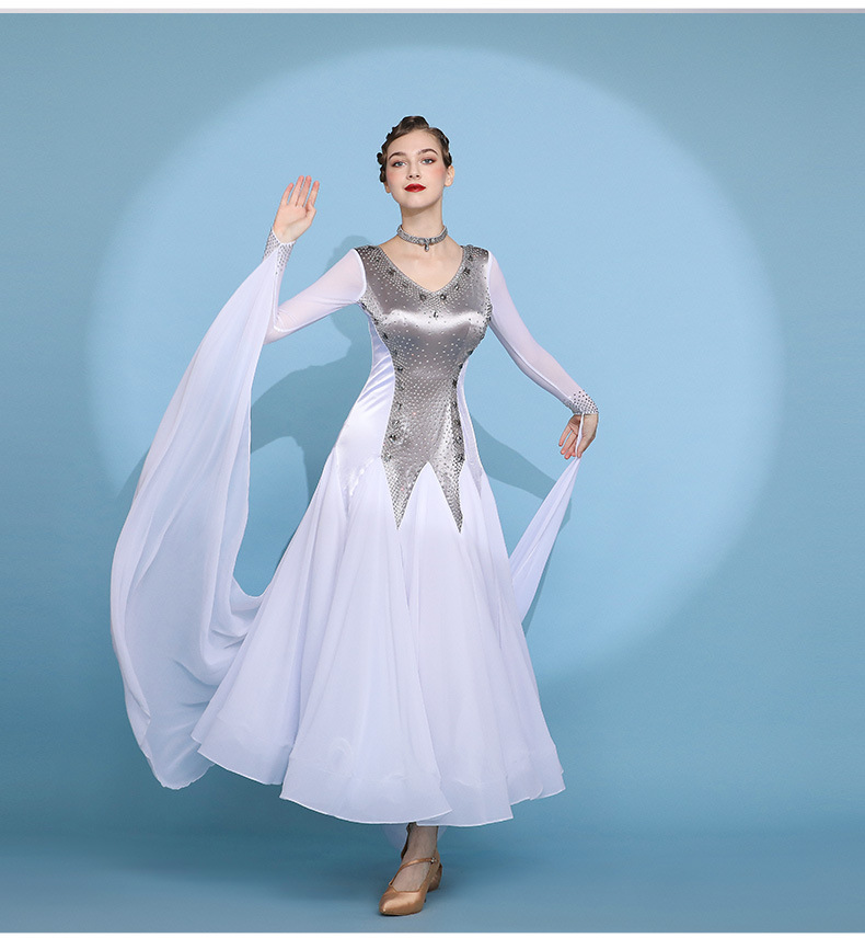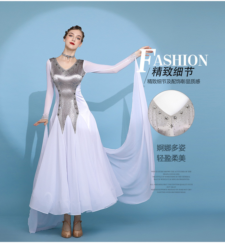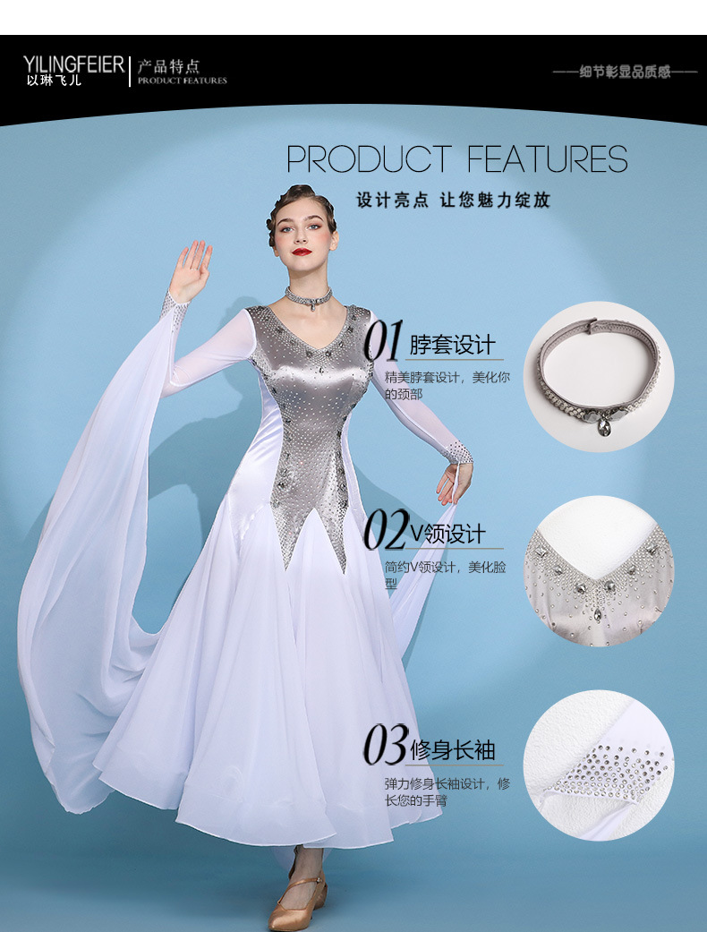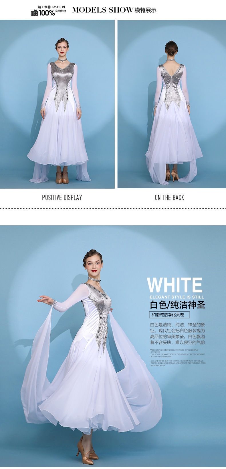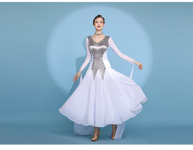 Новый современный танцевальный костюм с Lin Feier S7068 белый костюм для танцевального вальса