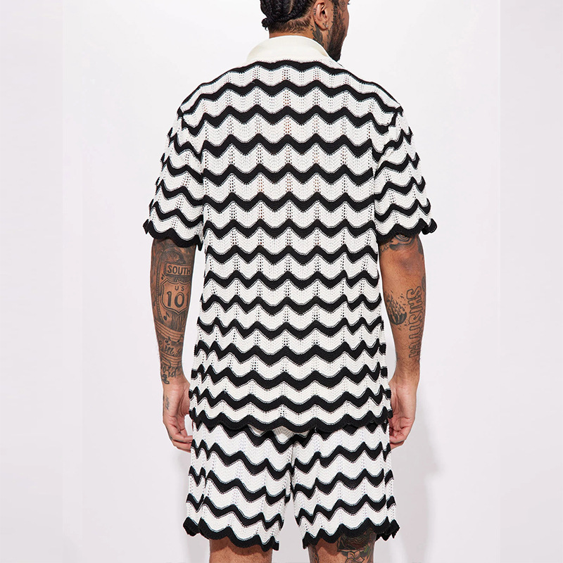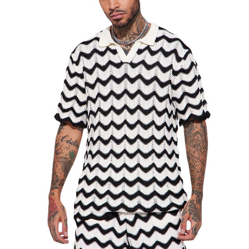 2024 Трансграничный AliExpress Европейская и Американская мужская одежда с волнистым вырезом с короткими рукавами топ повседневные спортивные шорты мужской костюм