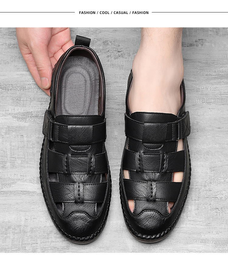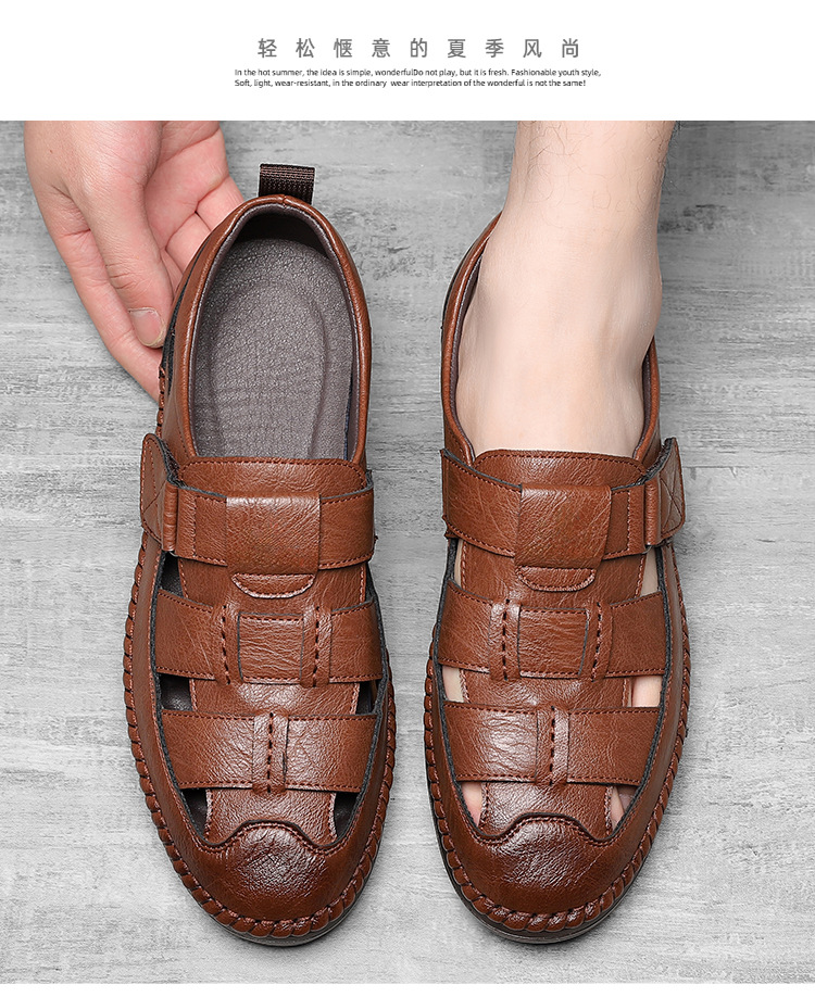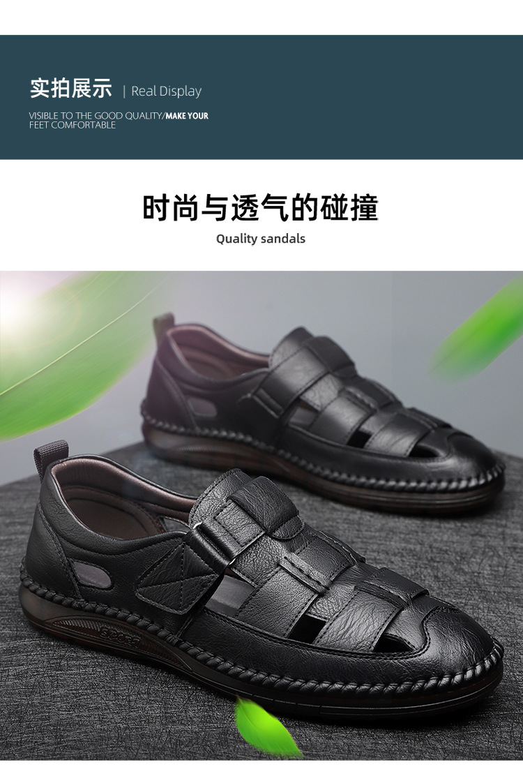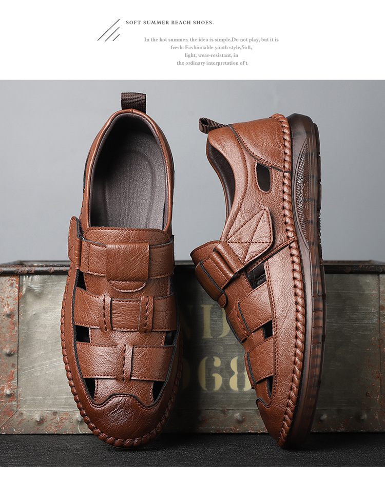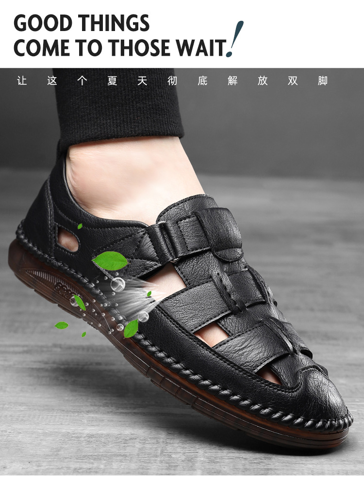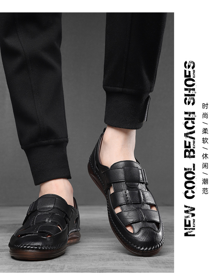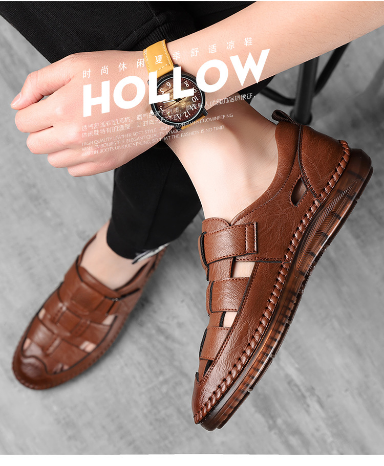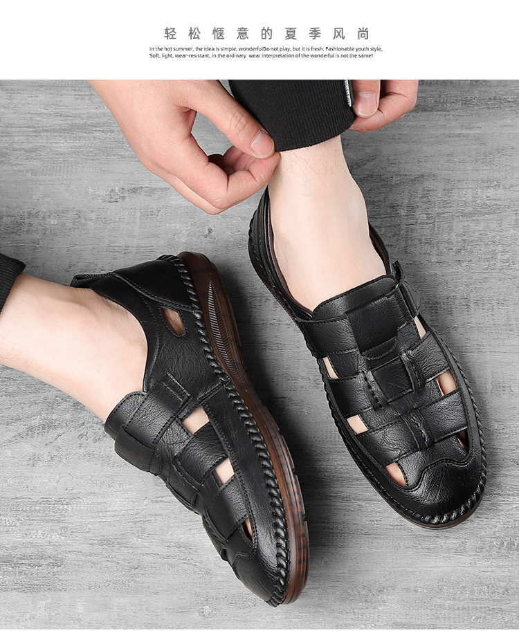 Кожаные сандалии Баотоу 2024 Летняя новая кожаная дышащая полая пещерная обувь мужские говяжьи сухожилия на мягкой подошве
