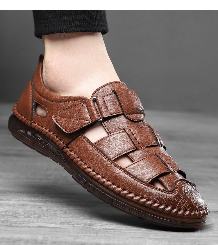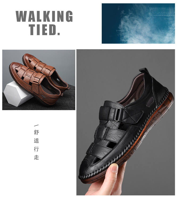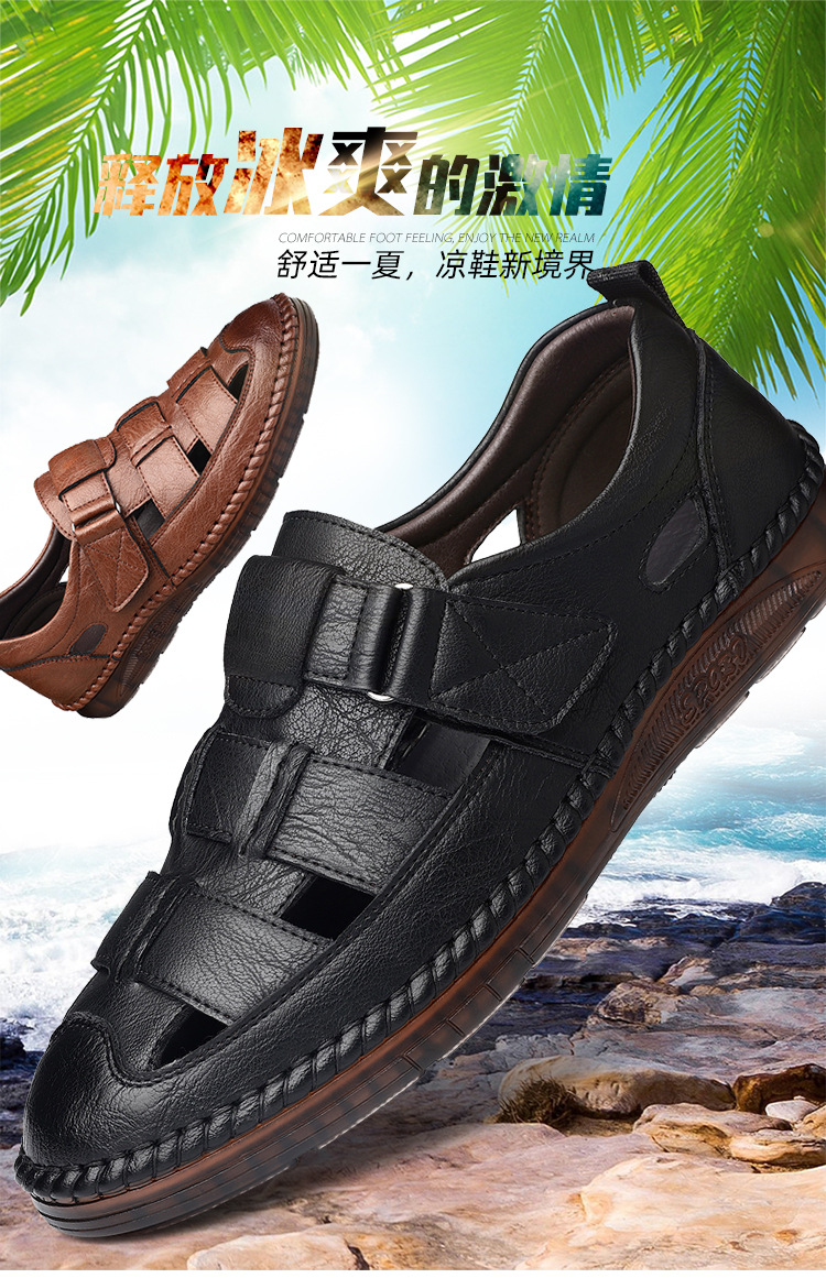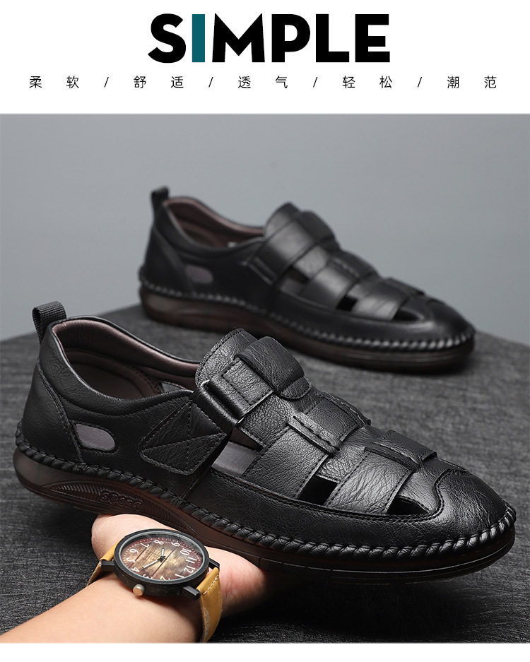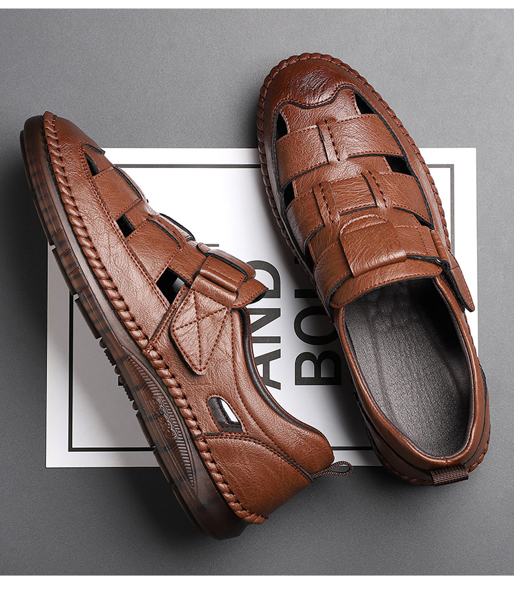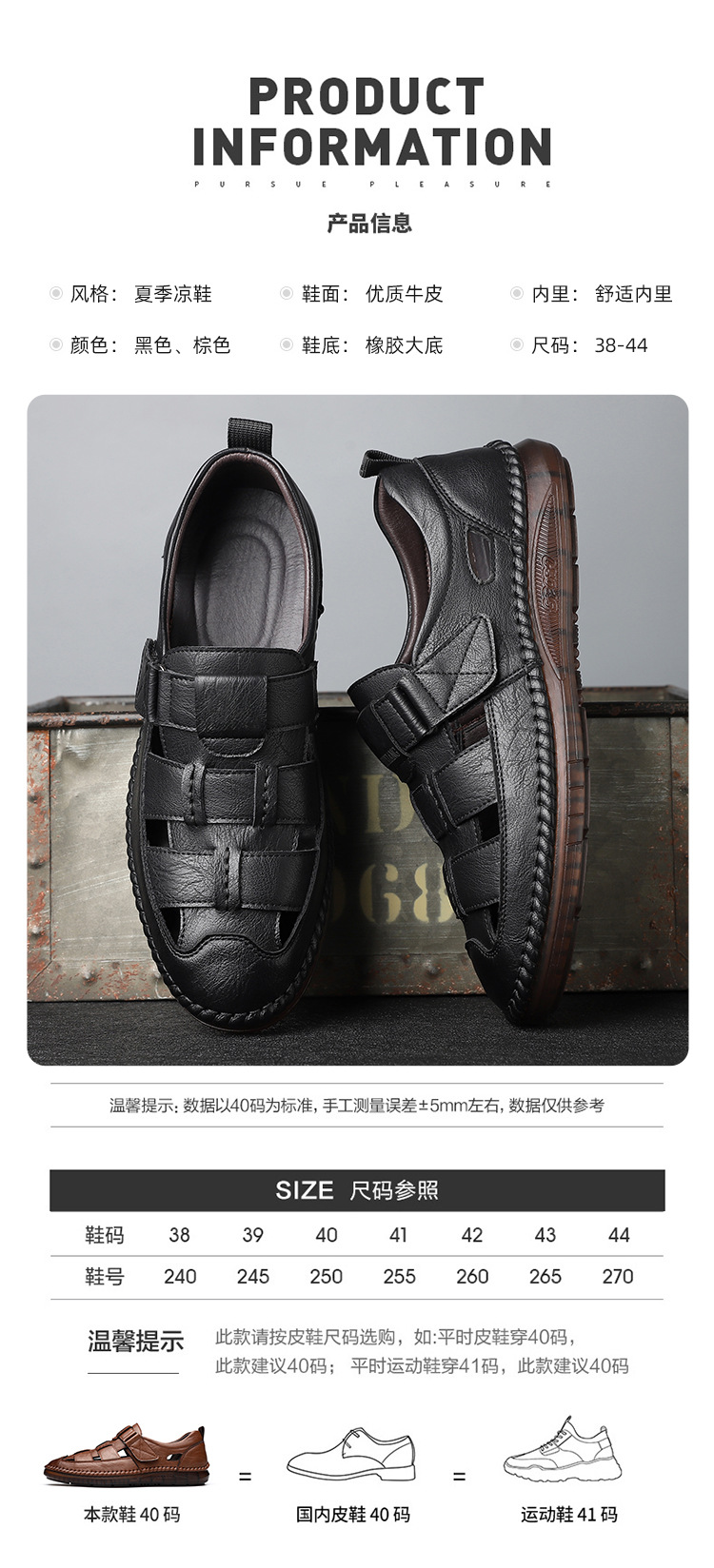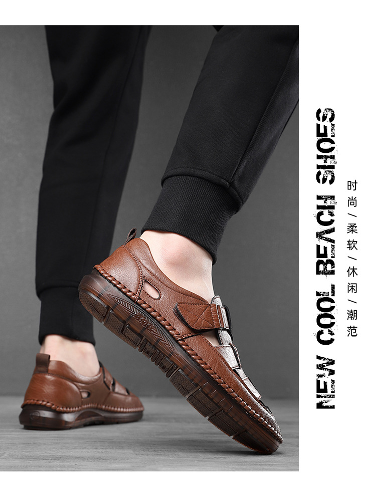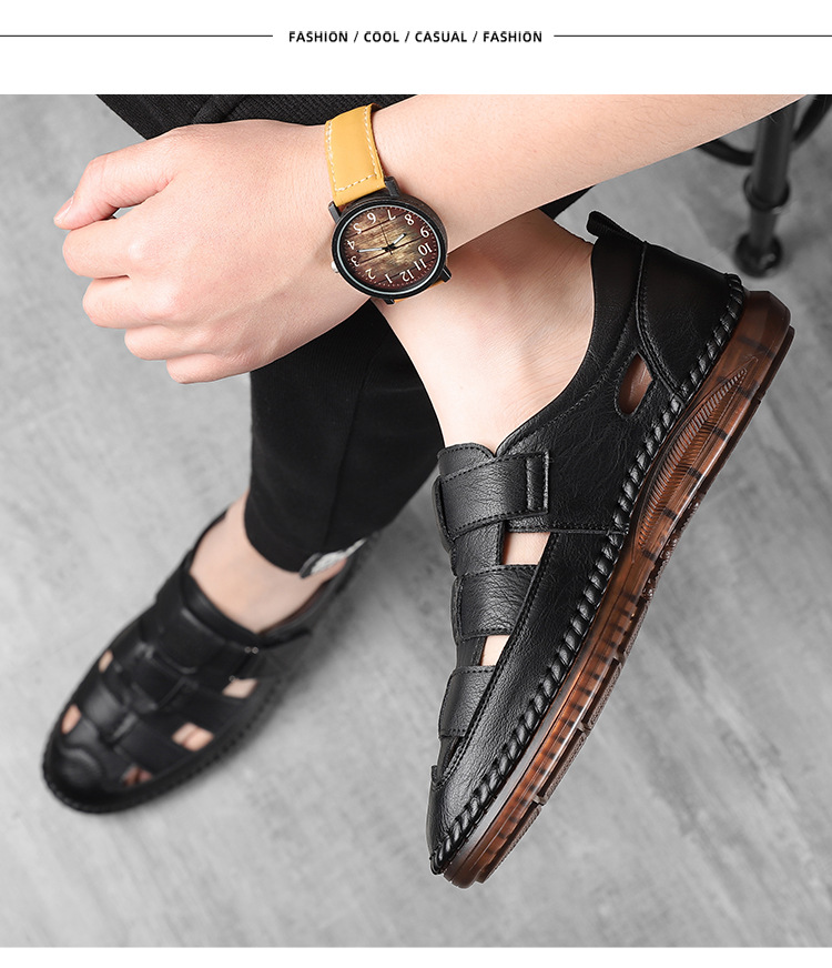 Кожаные сандалии Баотоу 2024 Летняя новая кожаная дышащая полая пещерная обувь мужские говяжьи сухожилия на мягкой подошве