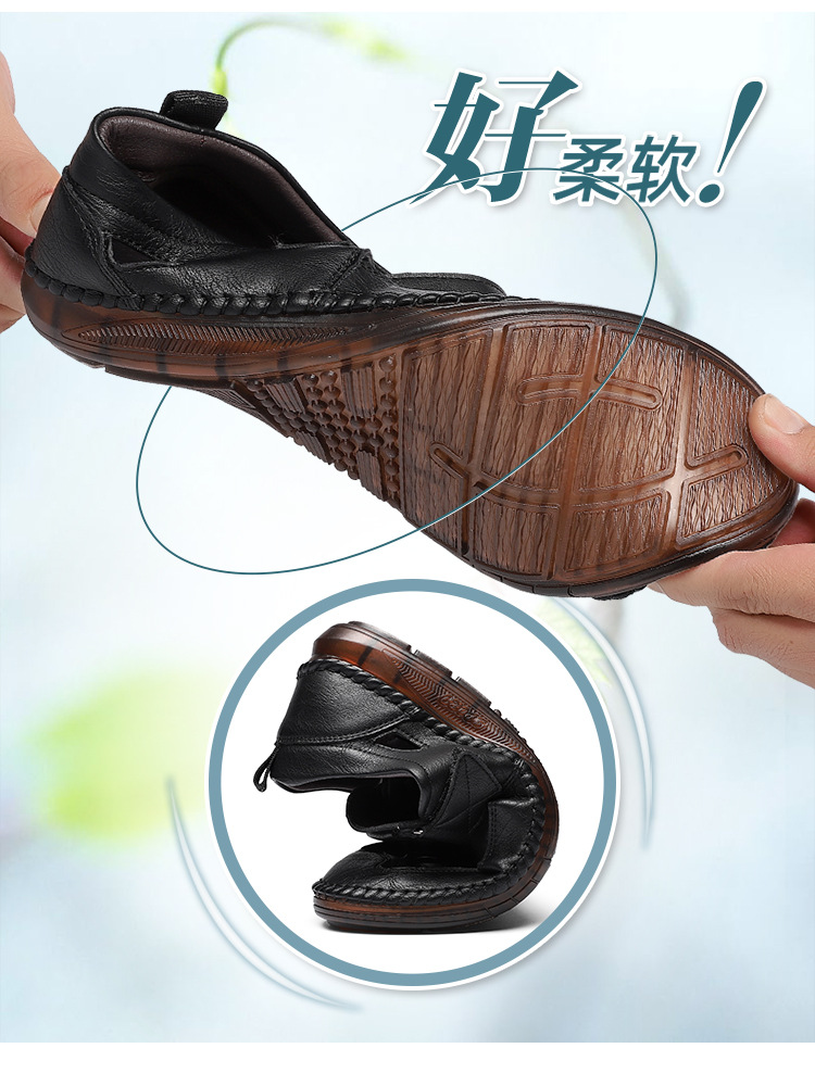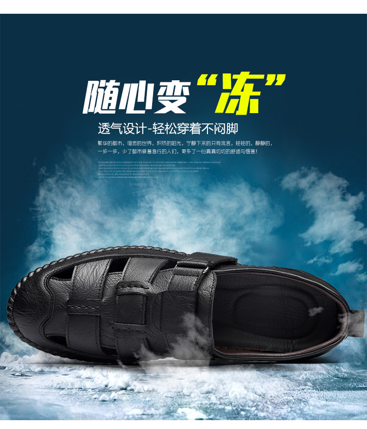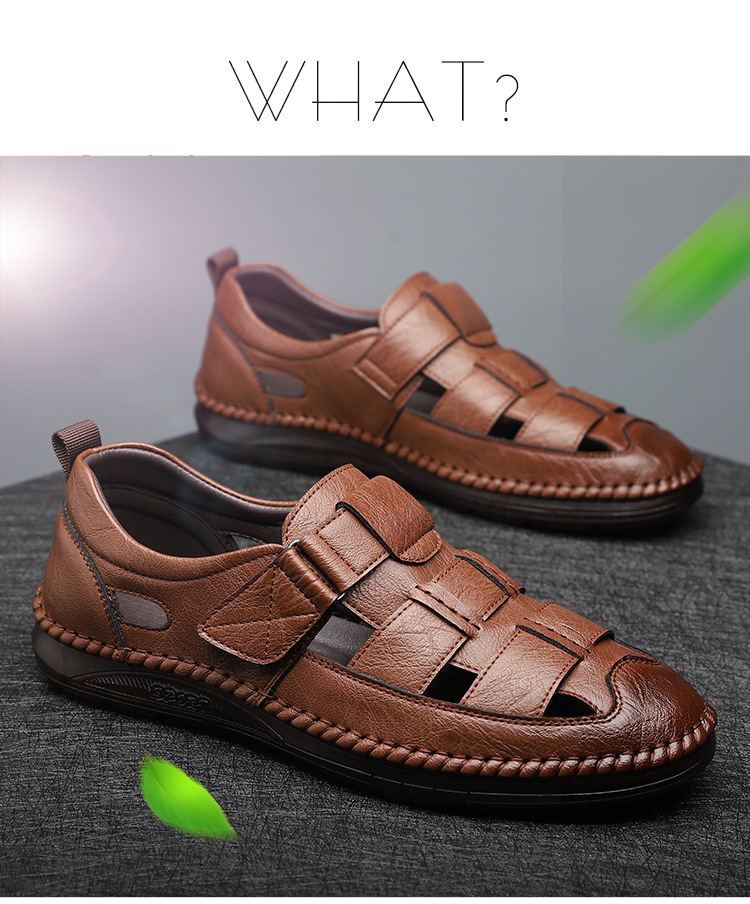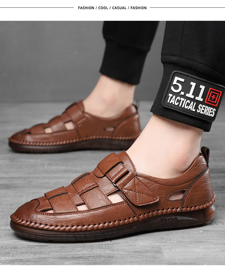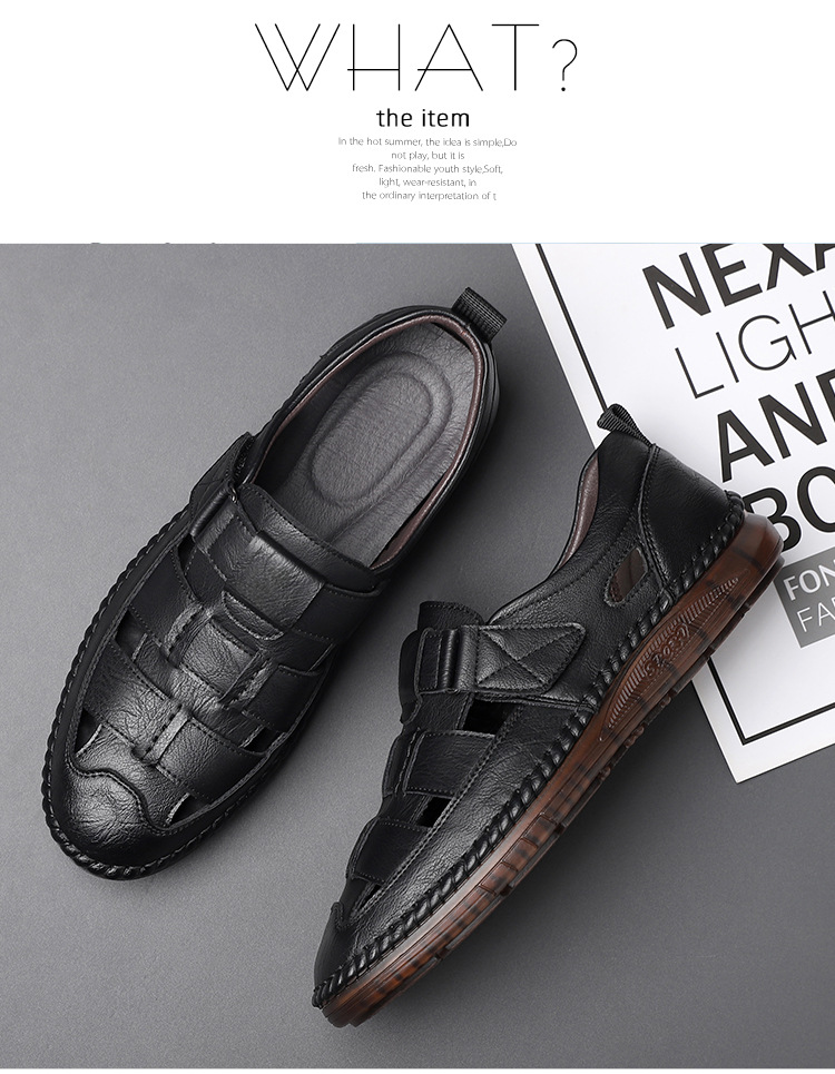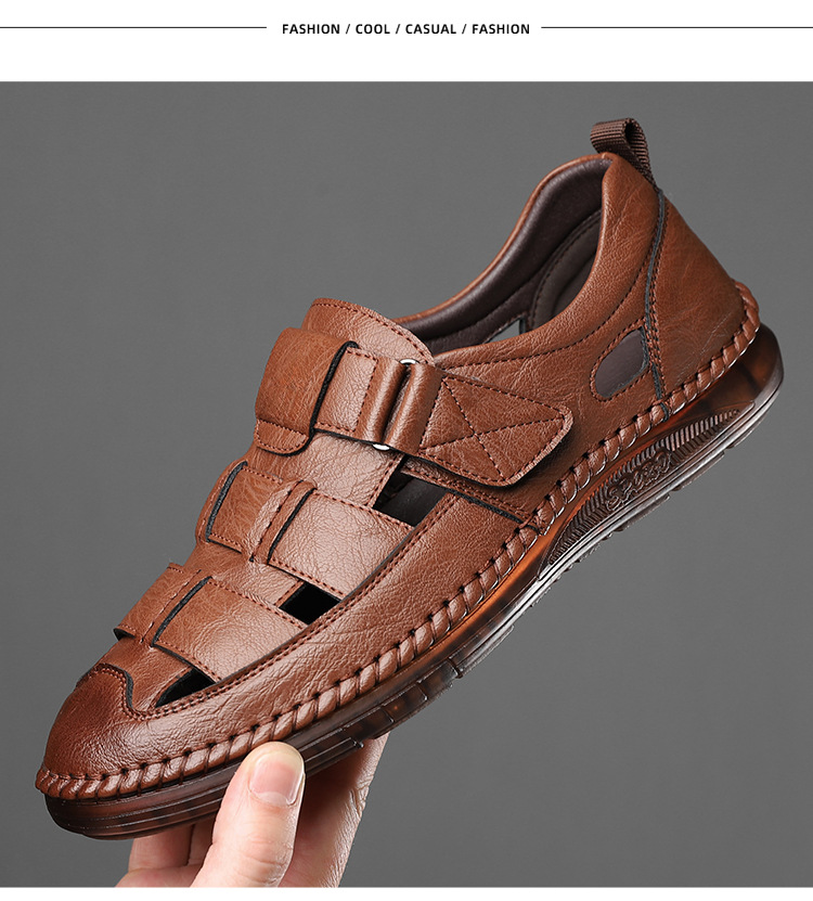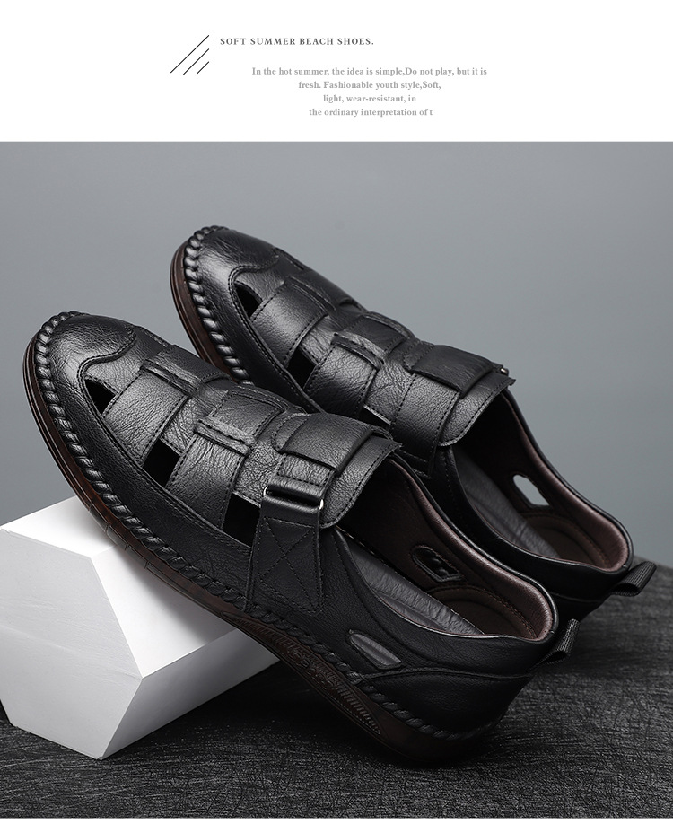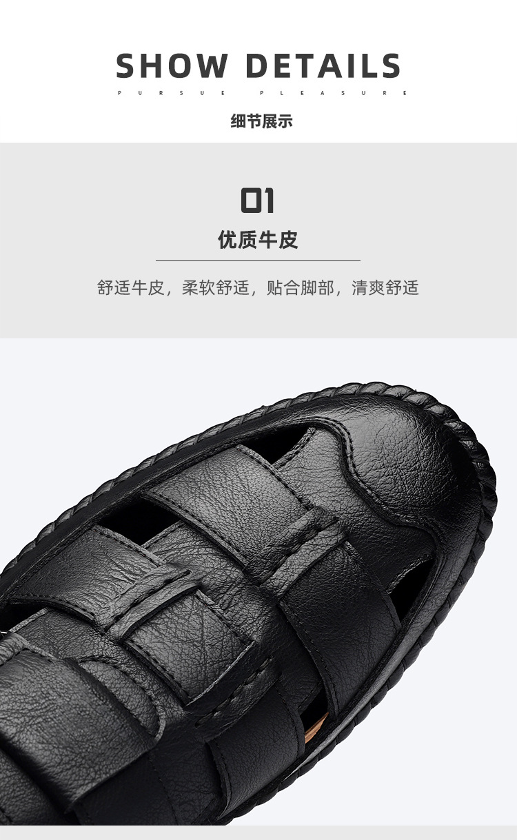 Кожаные сандалии Баотоу 2024 Летняя новая кожаная дышащая полая пещерная обувь мужские говяжьи сухожилия на мягкой подошве