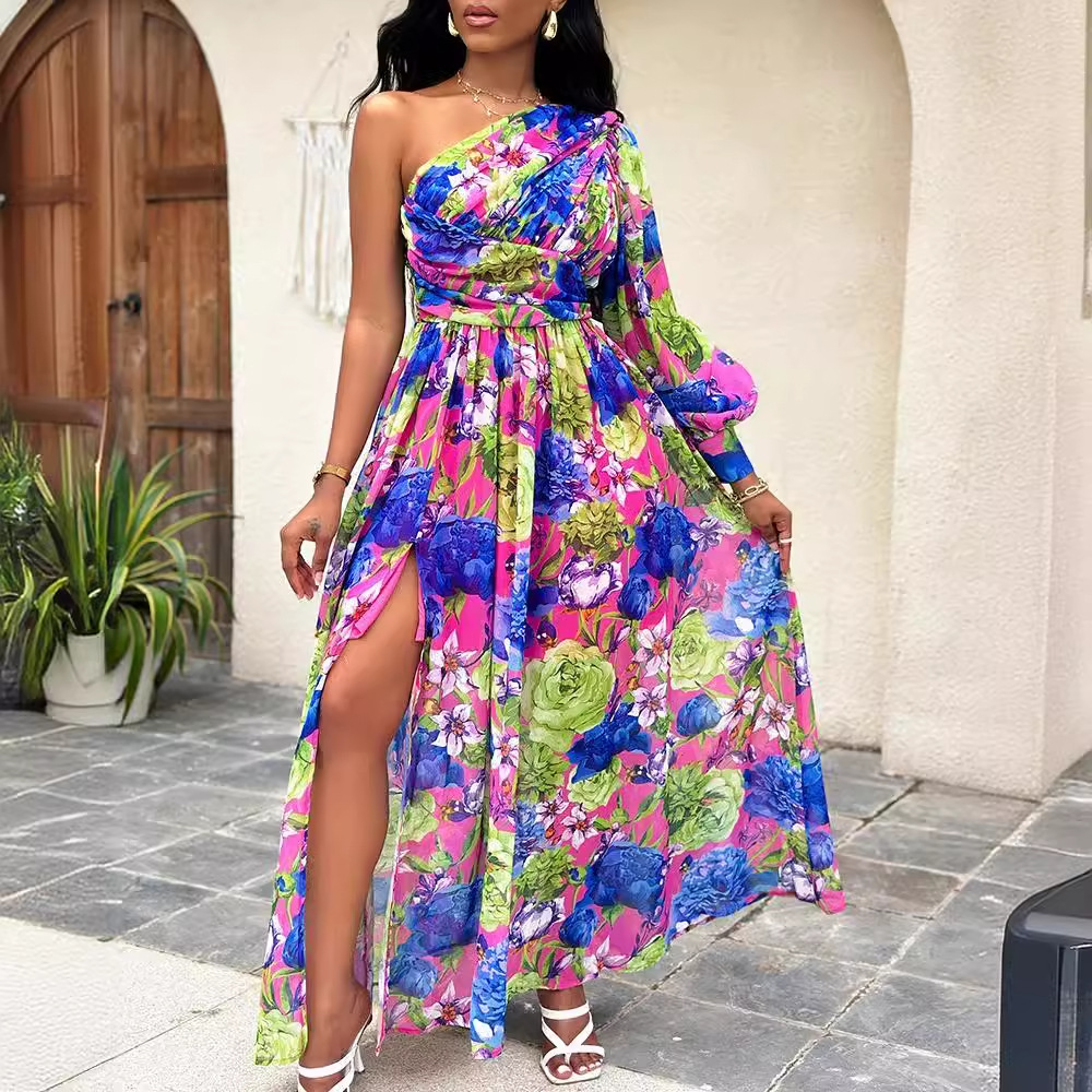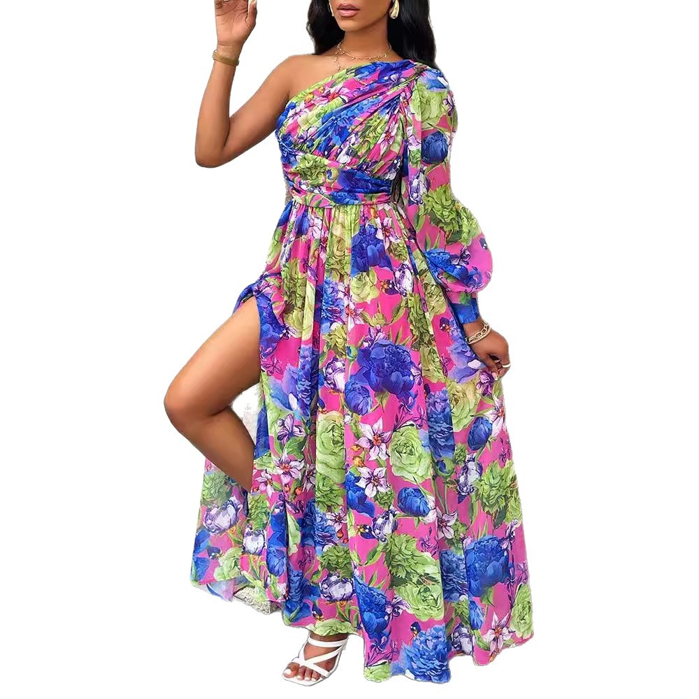 2024 Amazon AliExpress новая мода платье с длинными рукавами фонаря с принтом для женской одежды