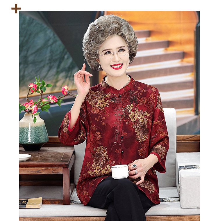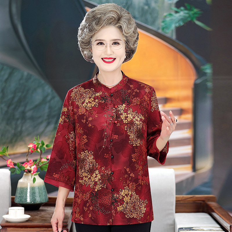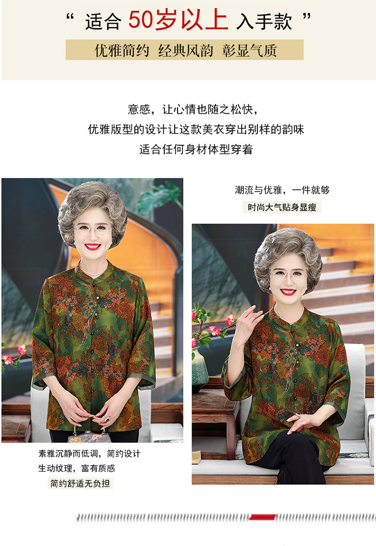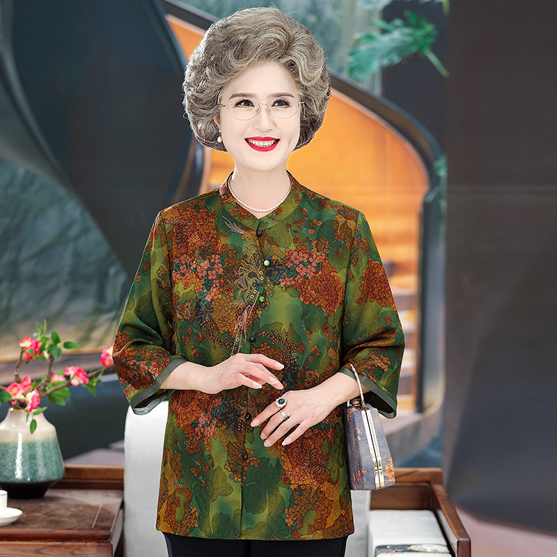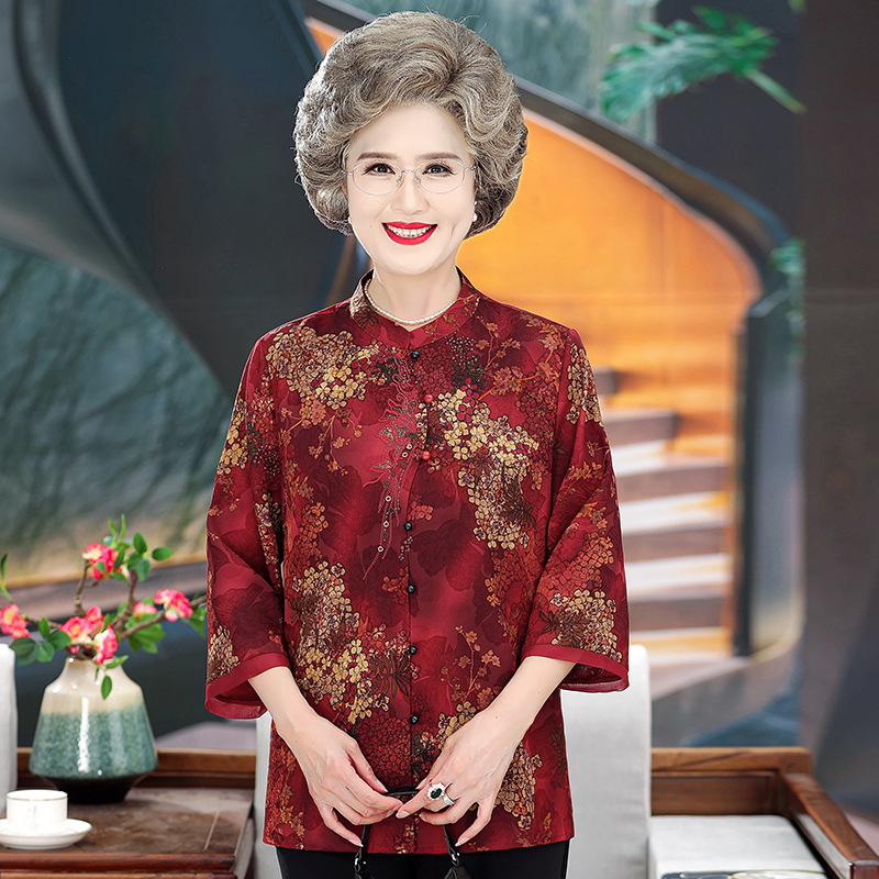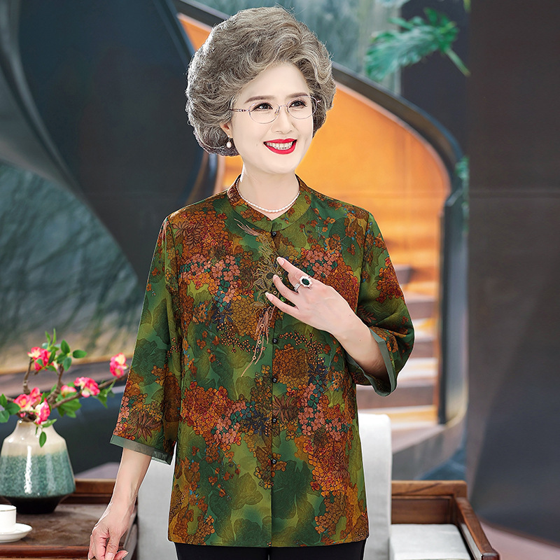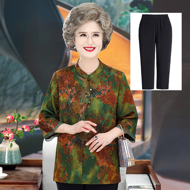 Благородный пожилой летний костюм бабушки средний рукав рубашки средней и пожилой мамы летний дух старушки иностранная рубашка
