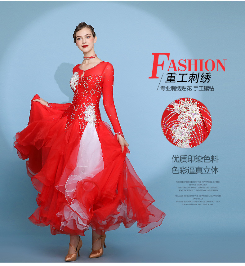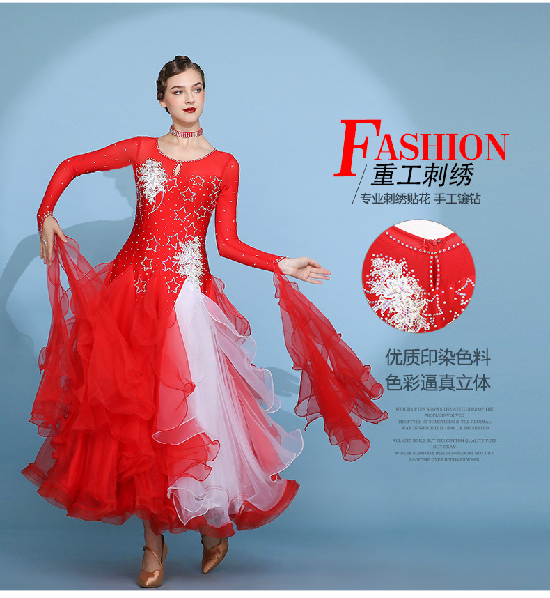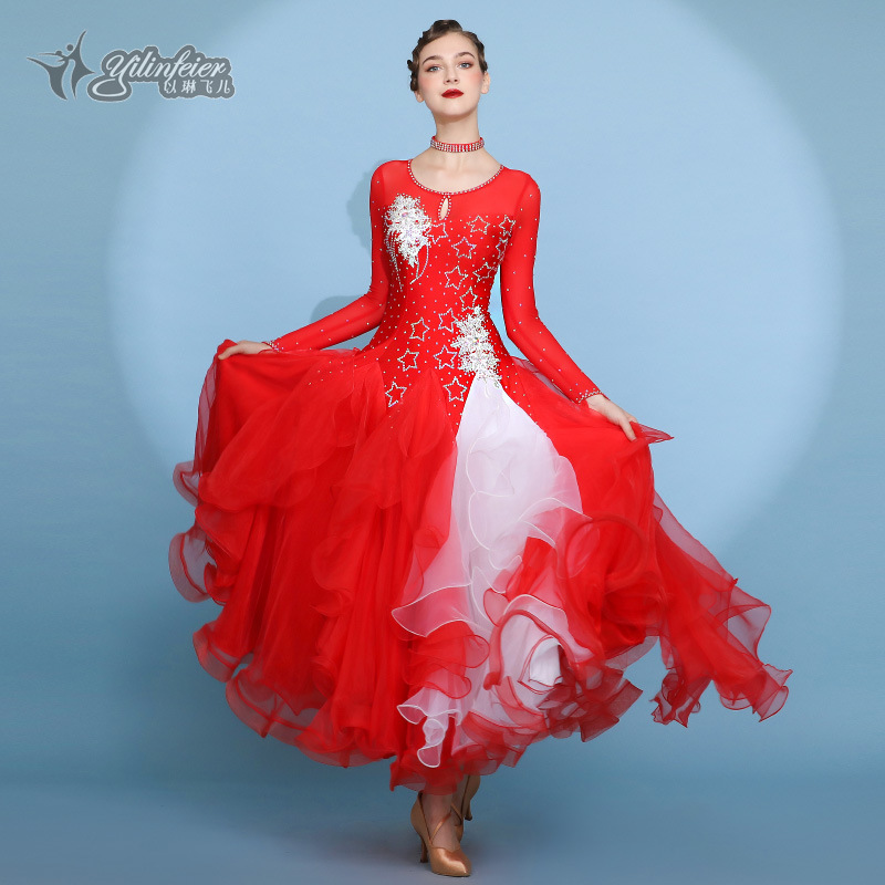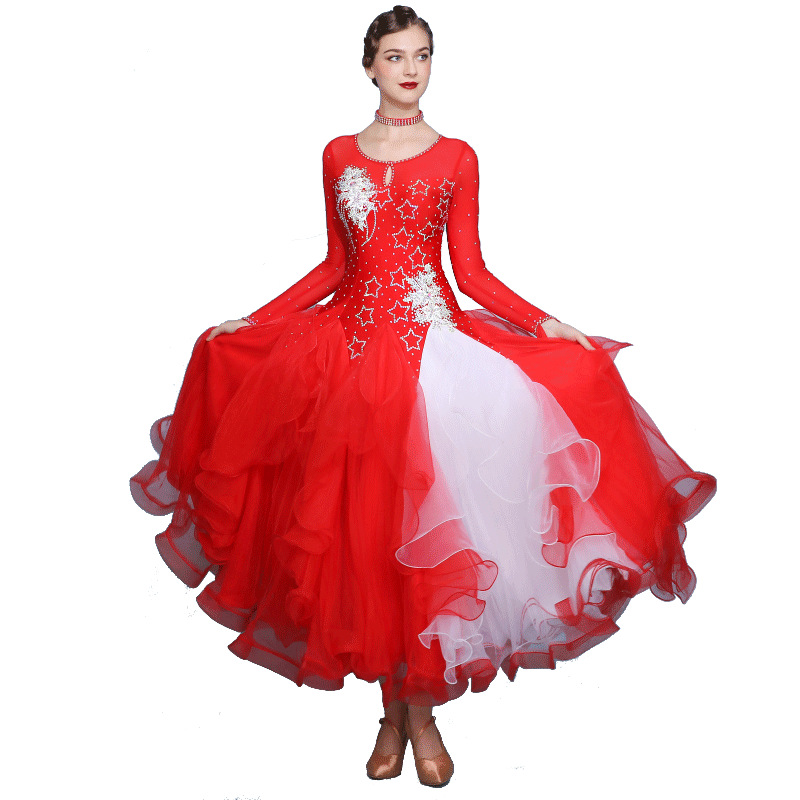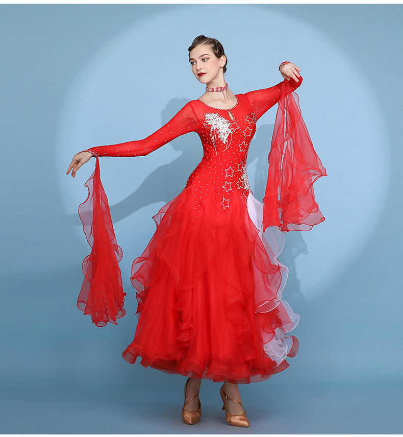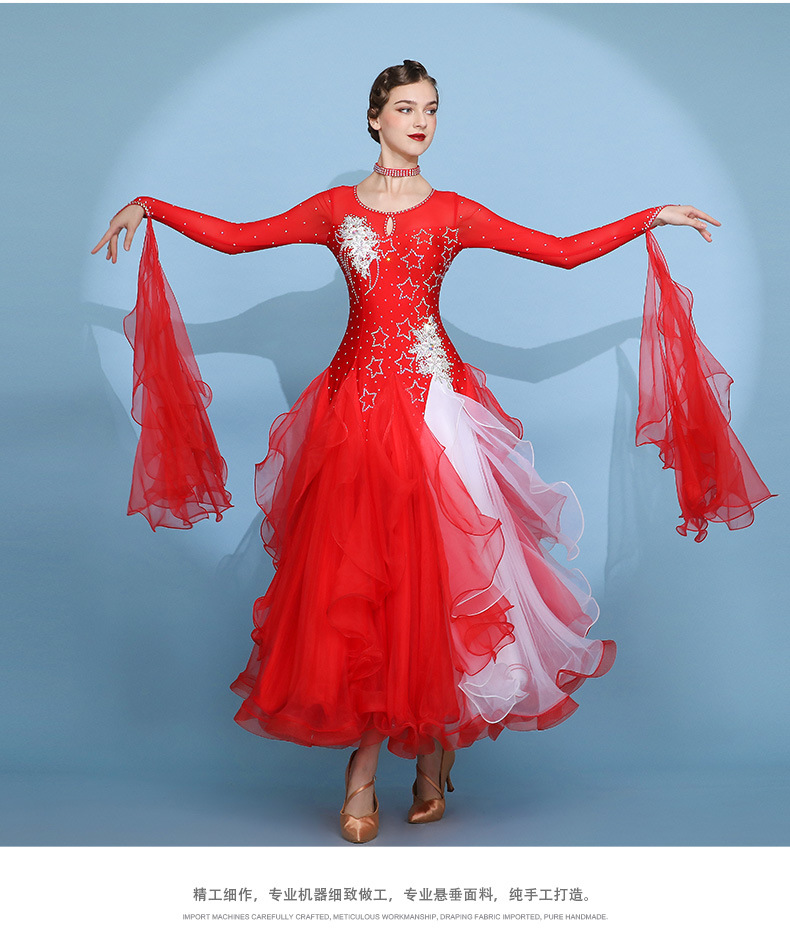 Red Dust Женское платье с круглым вырезом с длинным рукавом Современное танцевальное платье S7062 Национальный бальный танец бальный танец вальс