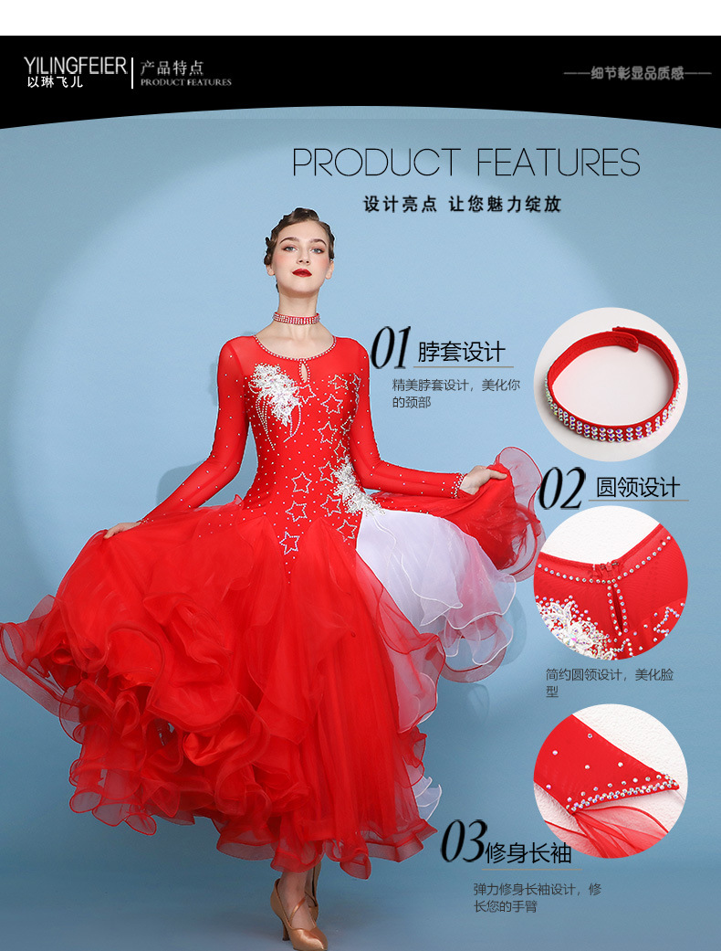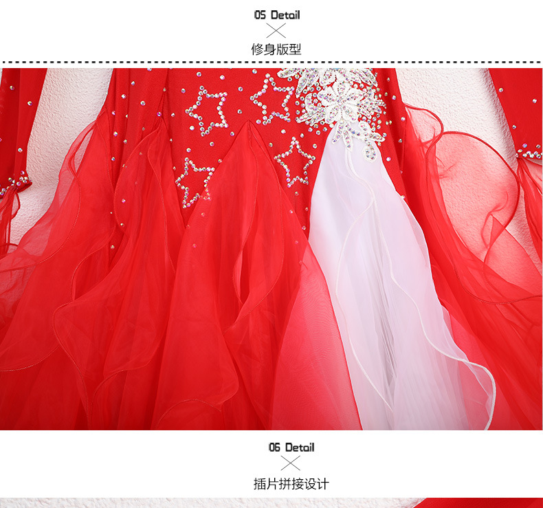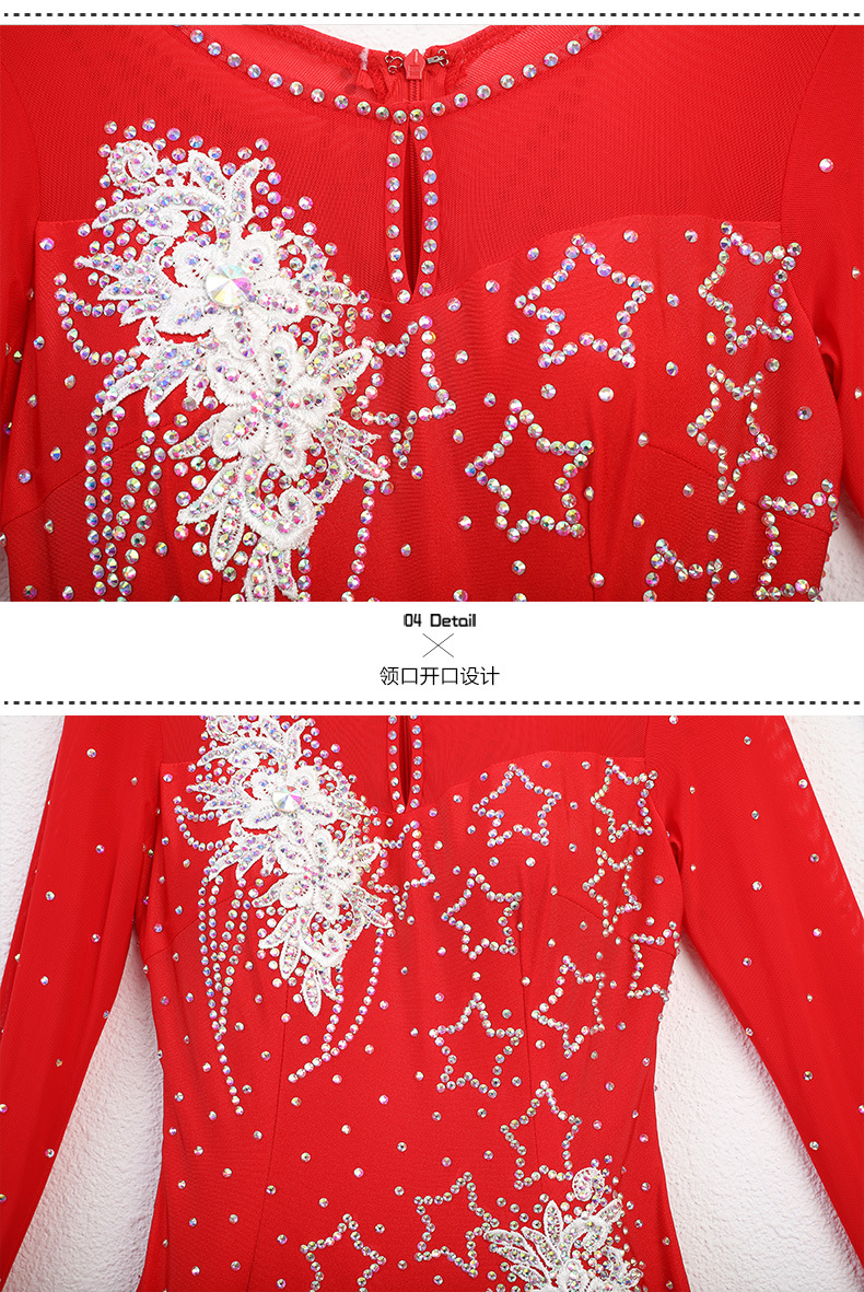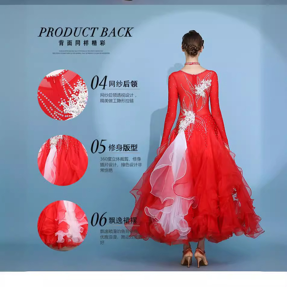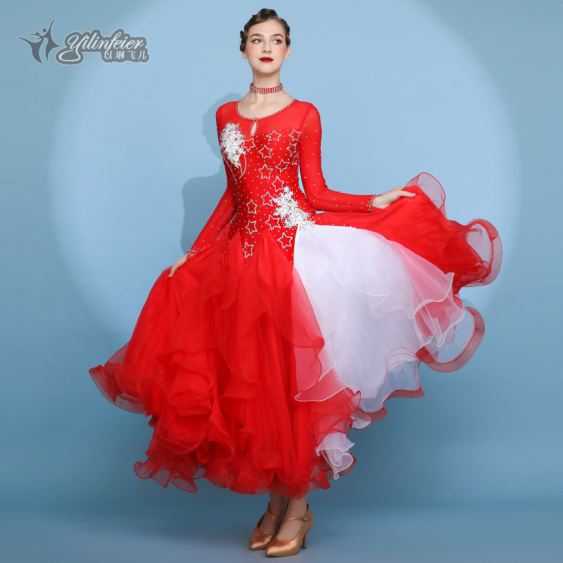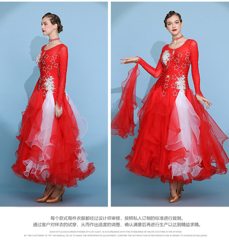 Red Dust Женское платье с круглым вырезом с длинным рукавом Современное танцевальное платье S7062 Национальный бальный танец бальный танец вальс