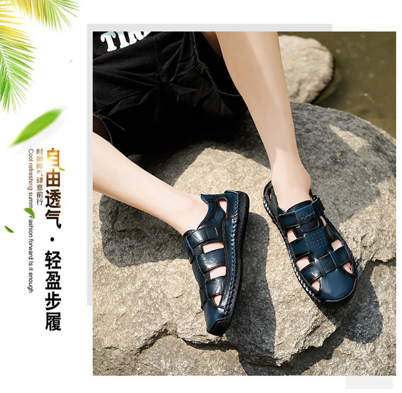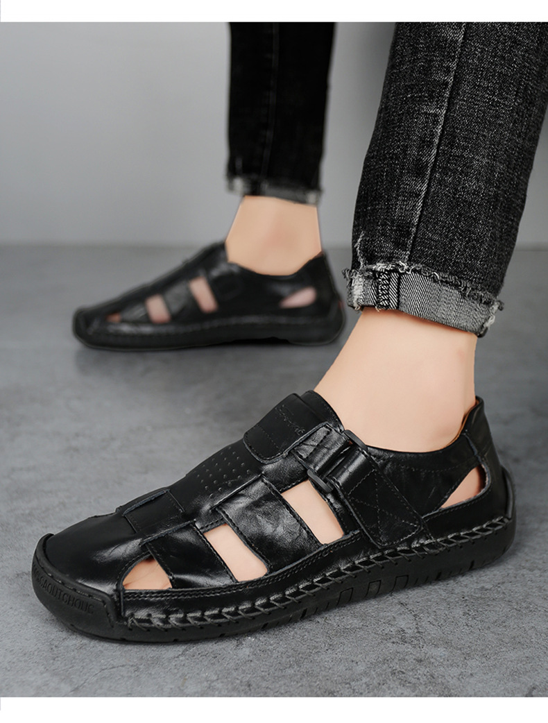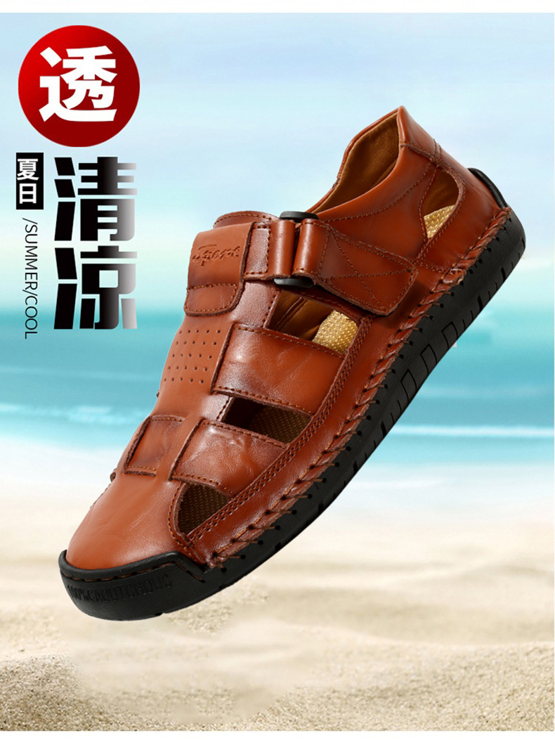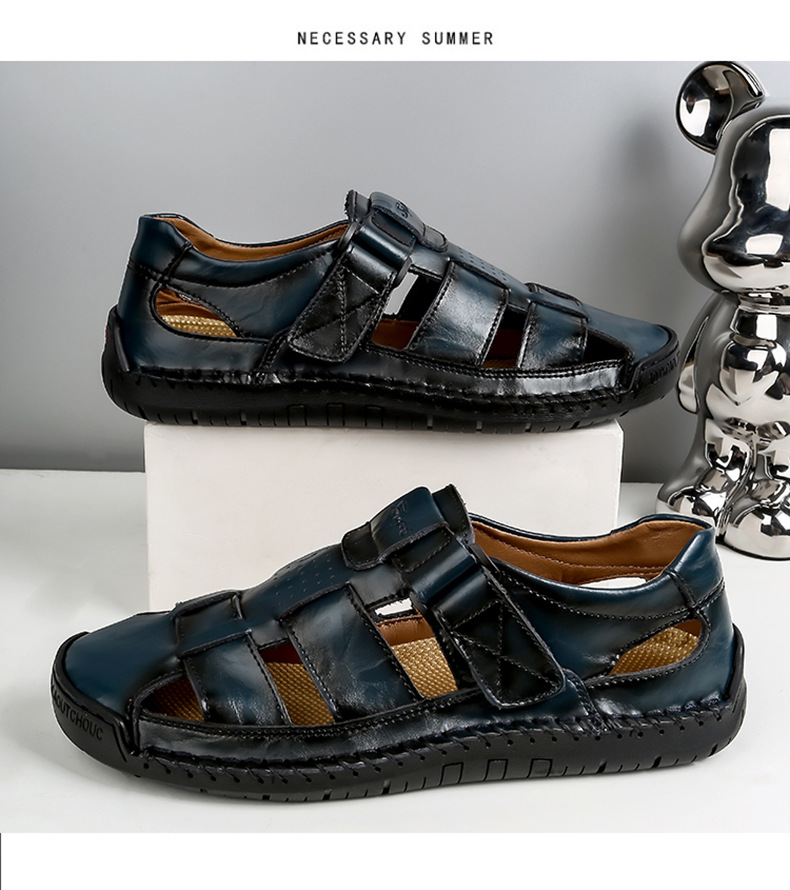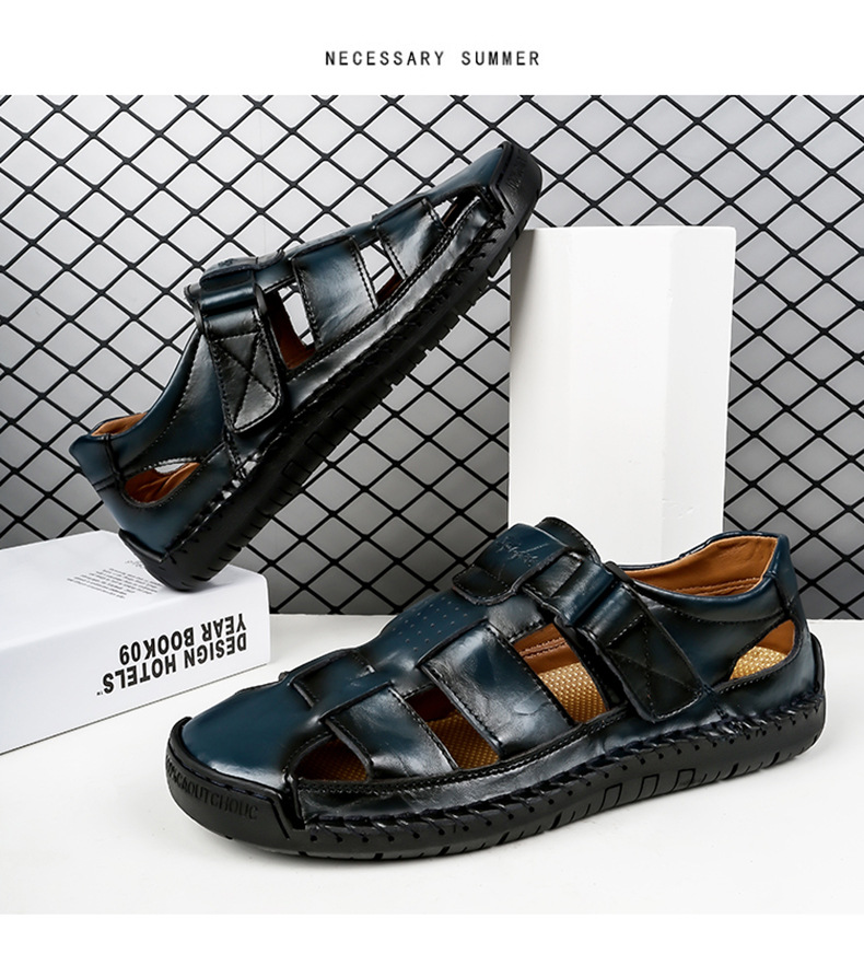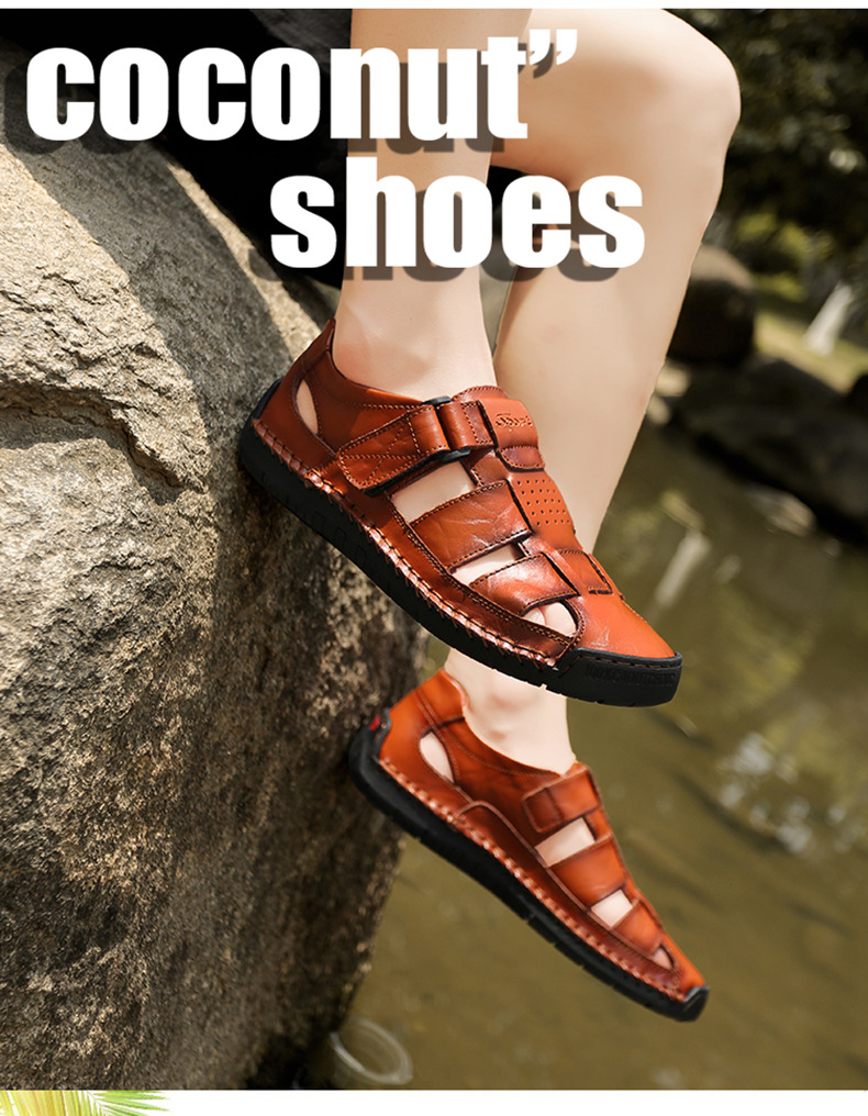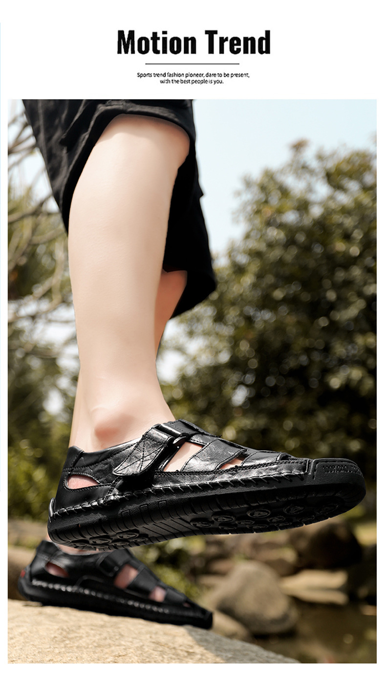 Трансграничные взрывные кожаные шовные тапочки мужской 2024 летний новый открытый мужской пляжный сандалии мужской тренд