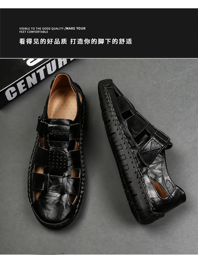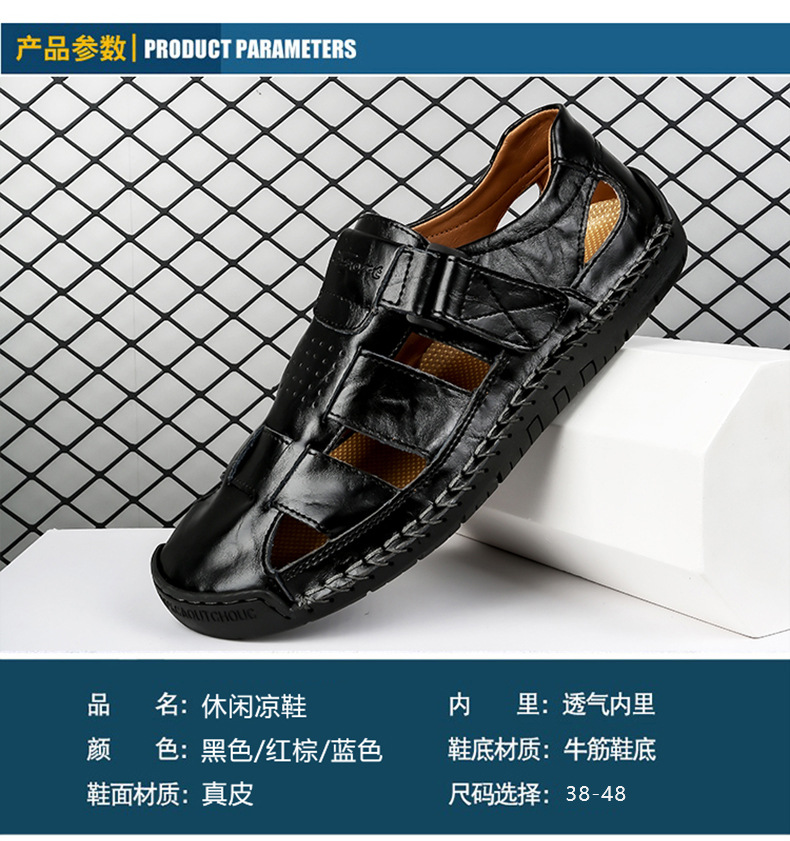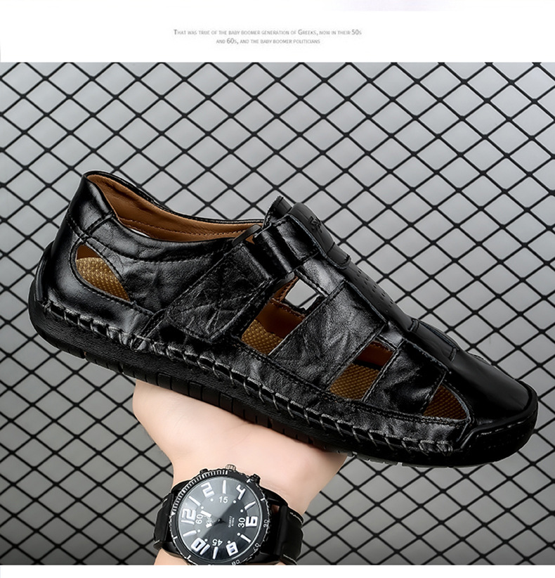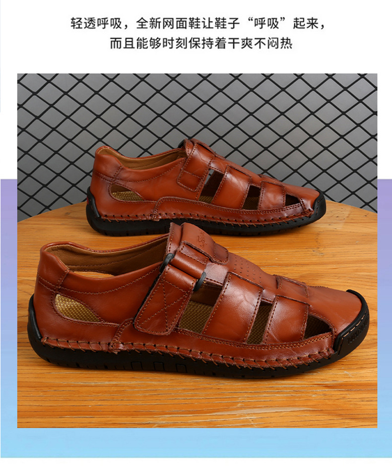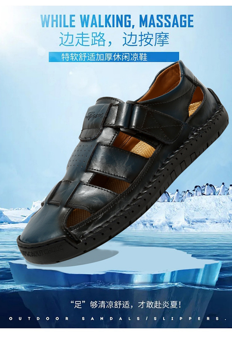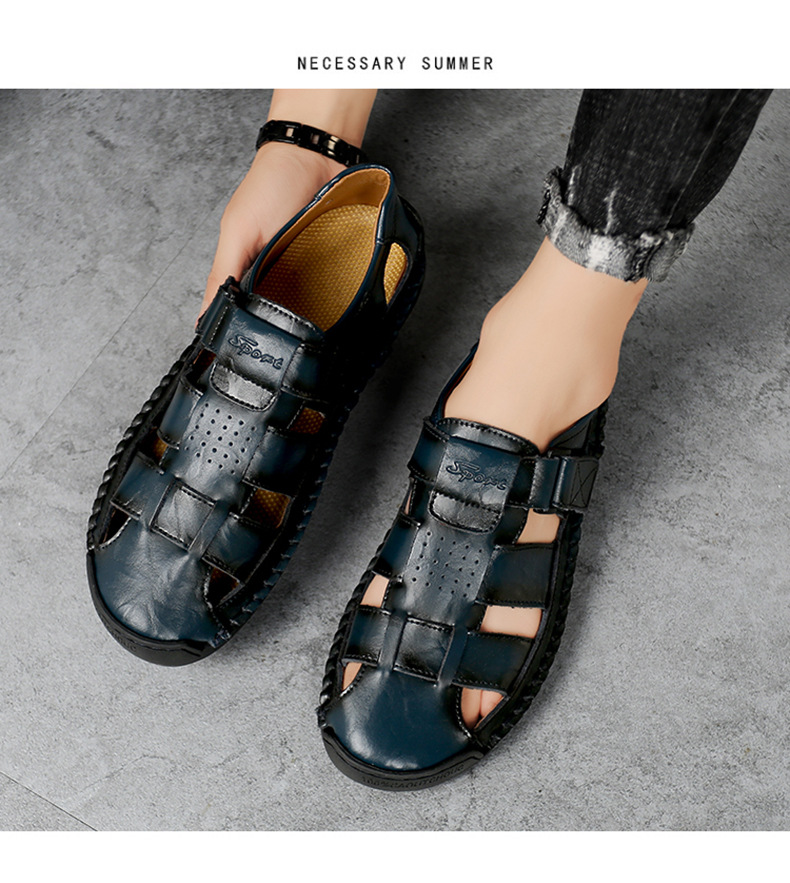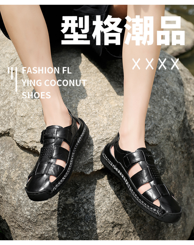 Трансграничные взрывные кожаные шовные тапочки мужской 2024 летний новый открытый мужской пляжный сандалии мужской тренд