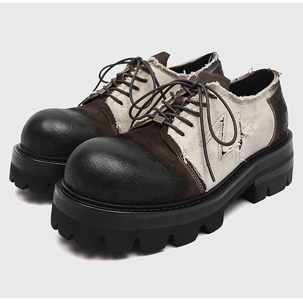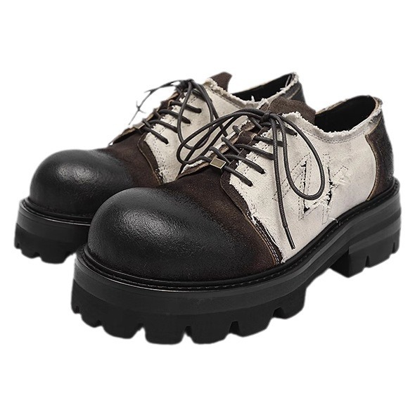 Ницкий национальный прилив повреждает ветер, толстая подошва, туфли дерби, полировочные ретро, туфли с низким баном, сшитые, слегка приподнятые мужские туфли
