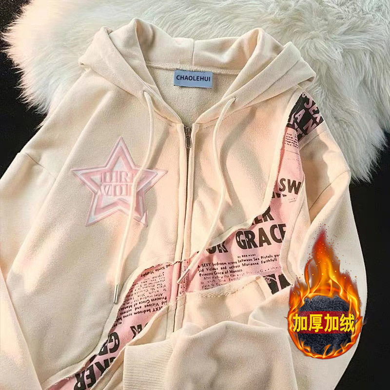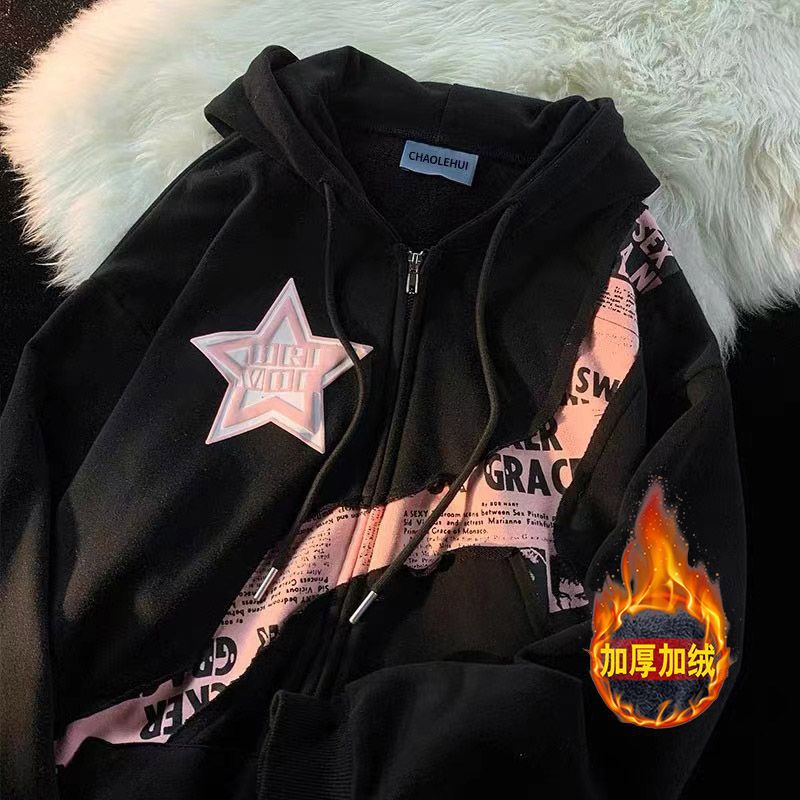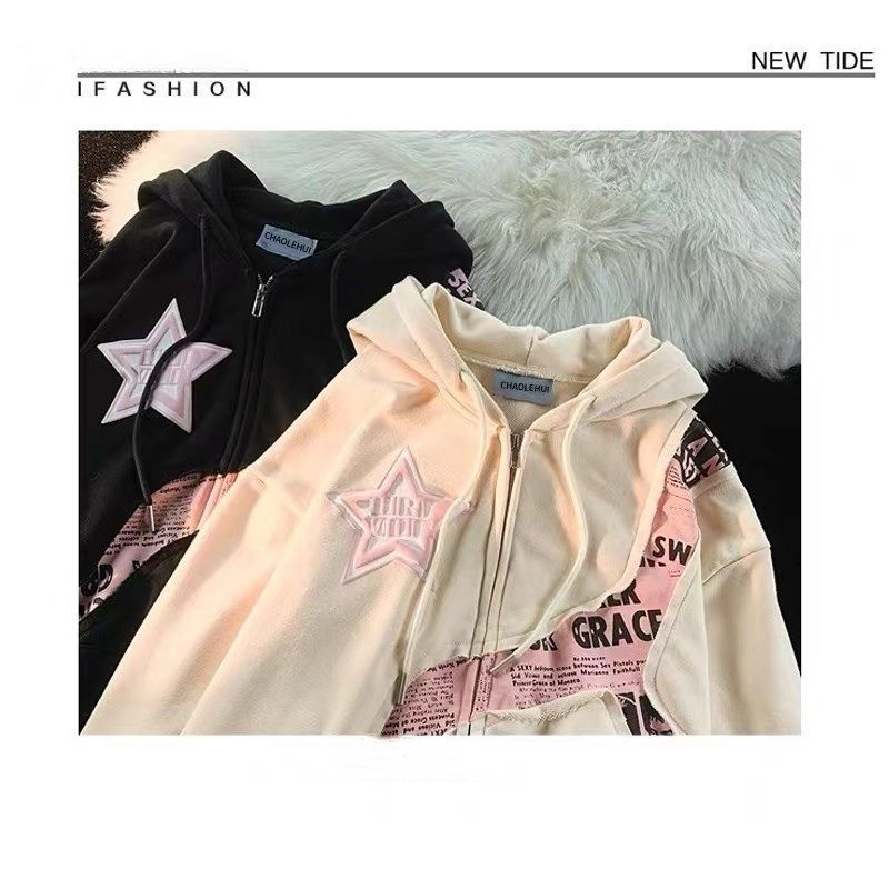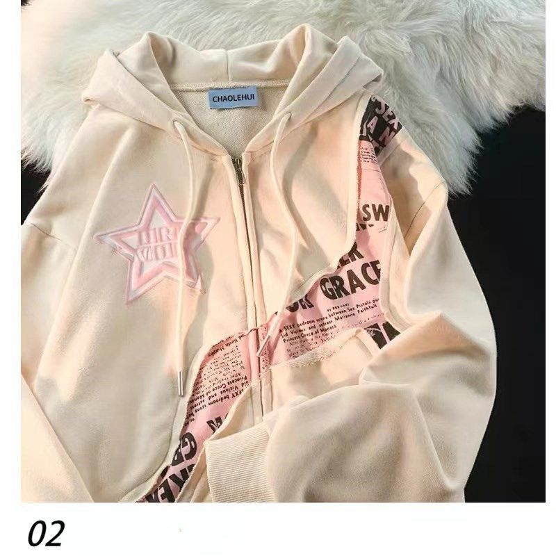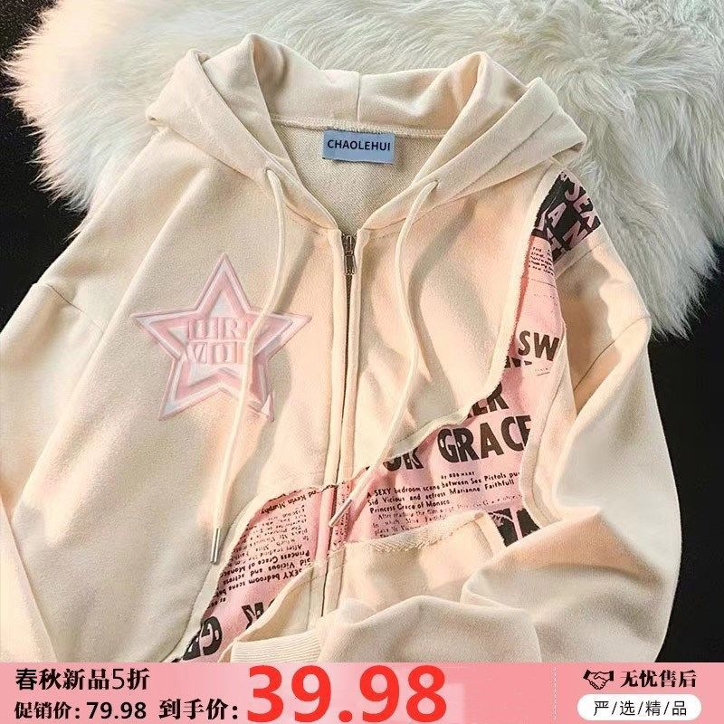 Побег из земли Американская жареная улица звезды с принтом буквы кардиган свитер женский прилив сладкий прохладный ветер свободная куртка