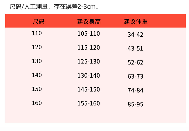 110cm; 120cm; 130cm; 140cm; 150cm; 160cm