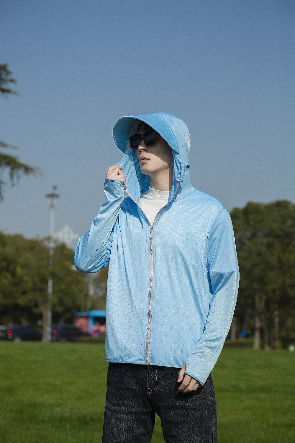 Летняя одежда из ледяного шелка в стиле Jiao для мужчин и женщин с козырьком, без защиты от ультрафиолета, дышащая, быстросохнущая, для защиты от солнца при рыбалке.