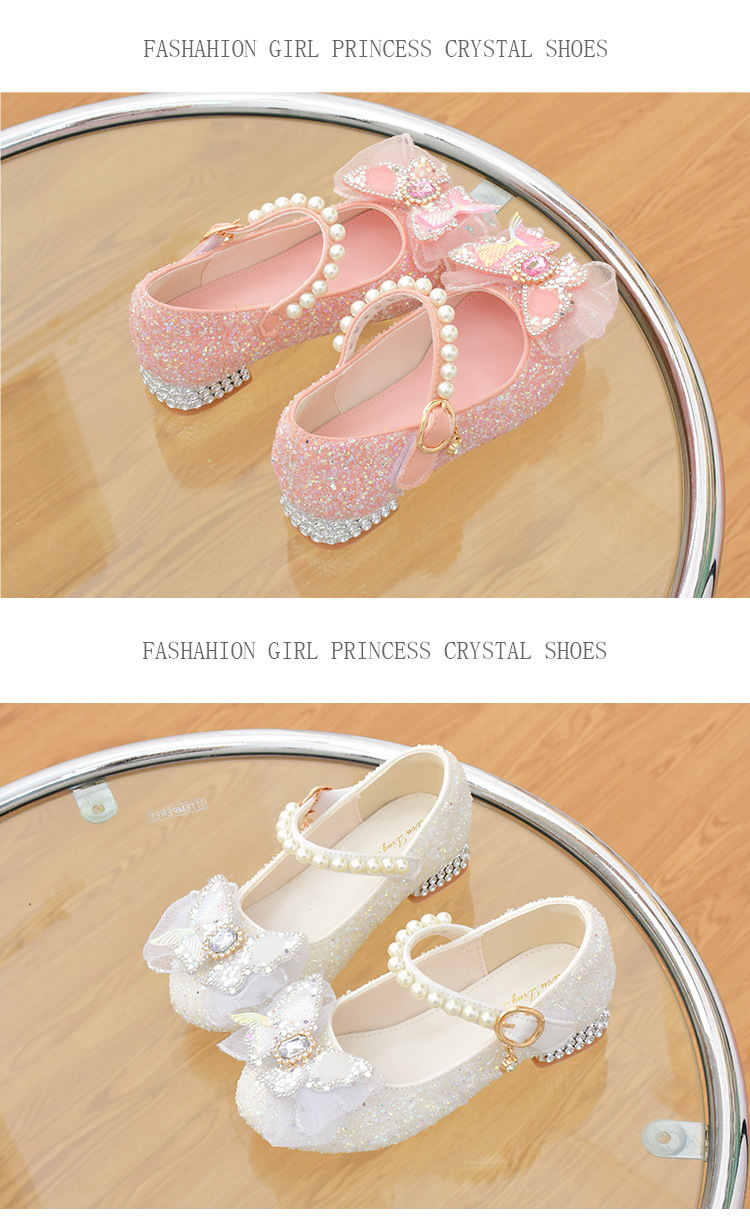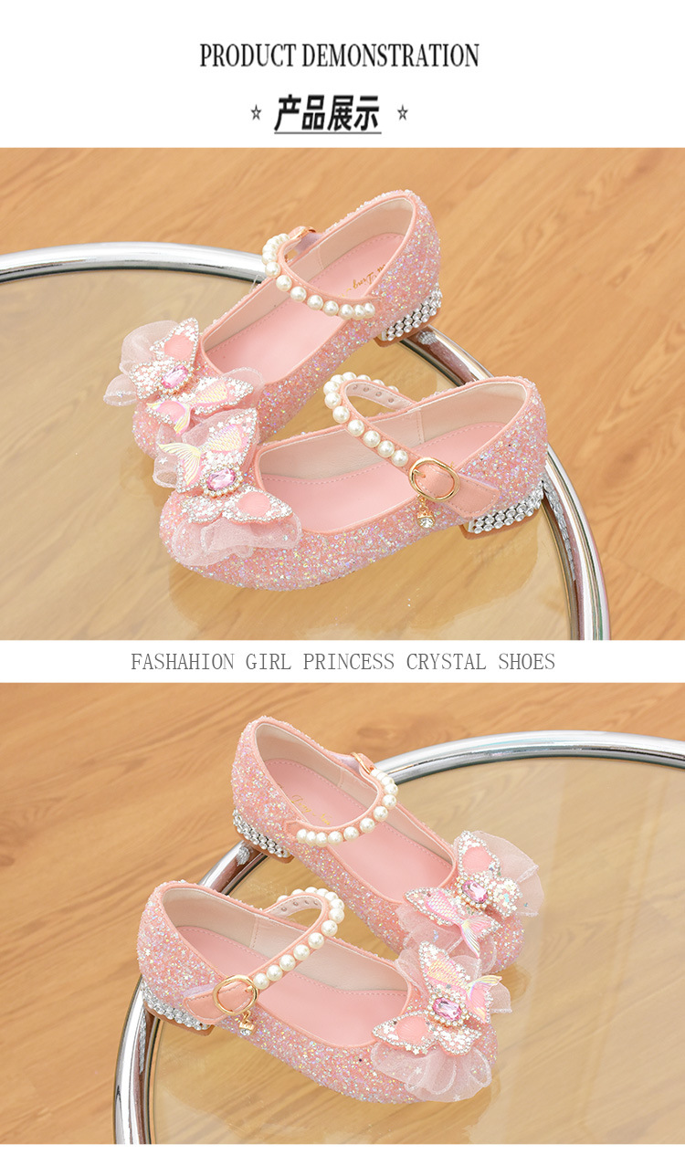 Фабрика оптовая продажа обувь принцессы для детей русалки одиночные туфли для девочек весной и осенью на высоком каблуке хрустальные туфли с бриллиантами новые кожаные туфли
