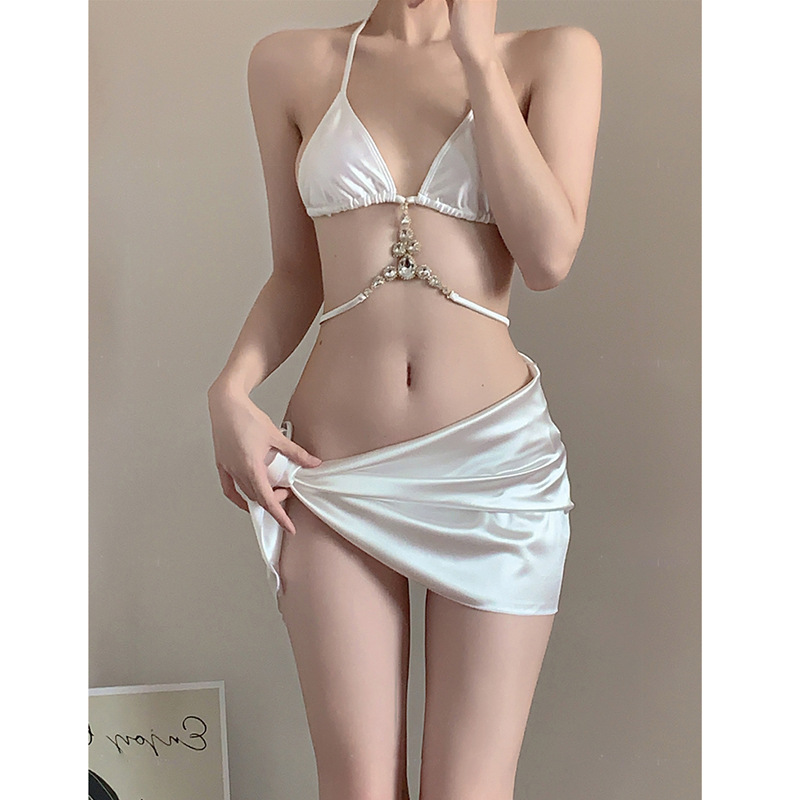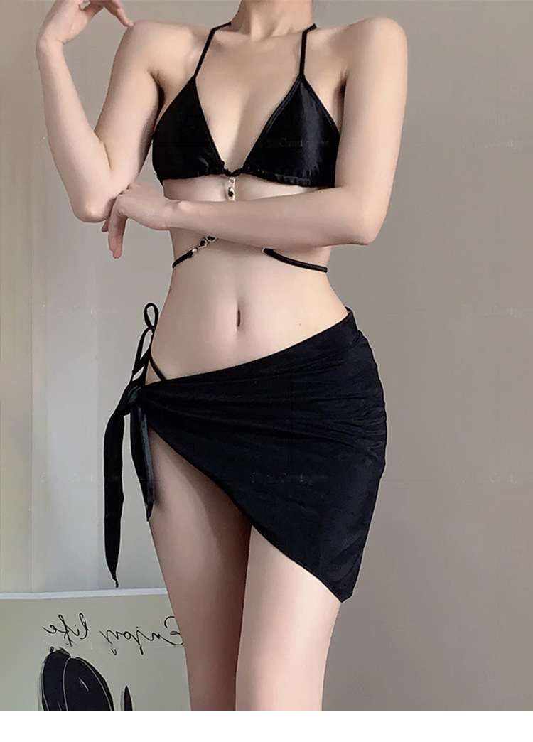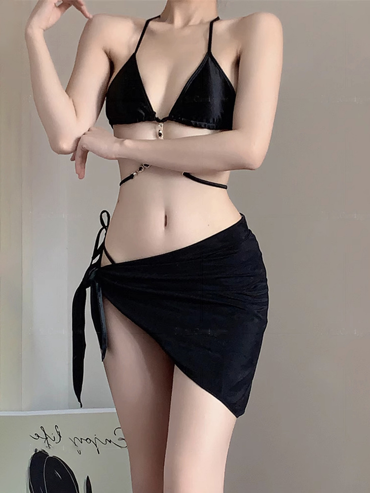 Новый стиль 2025: раздельный купальник для женщин, черный, с камнями, элитный, изысканный, комплект из трех предметов, бикини на завязках, для горячих источников