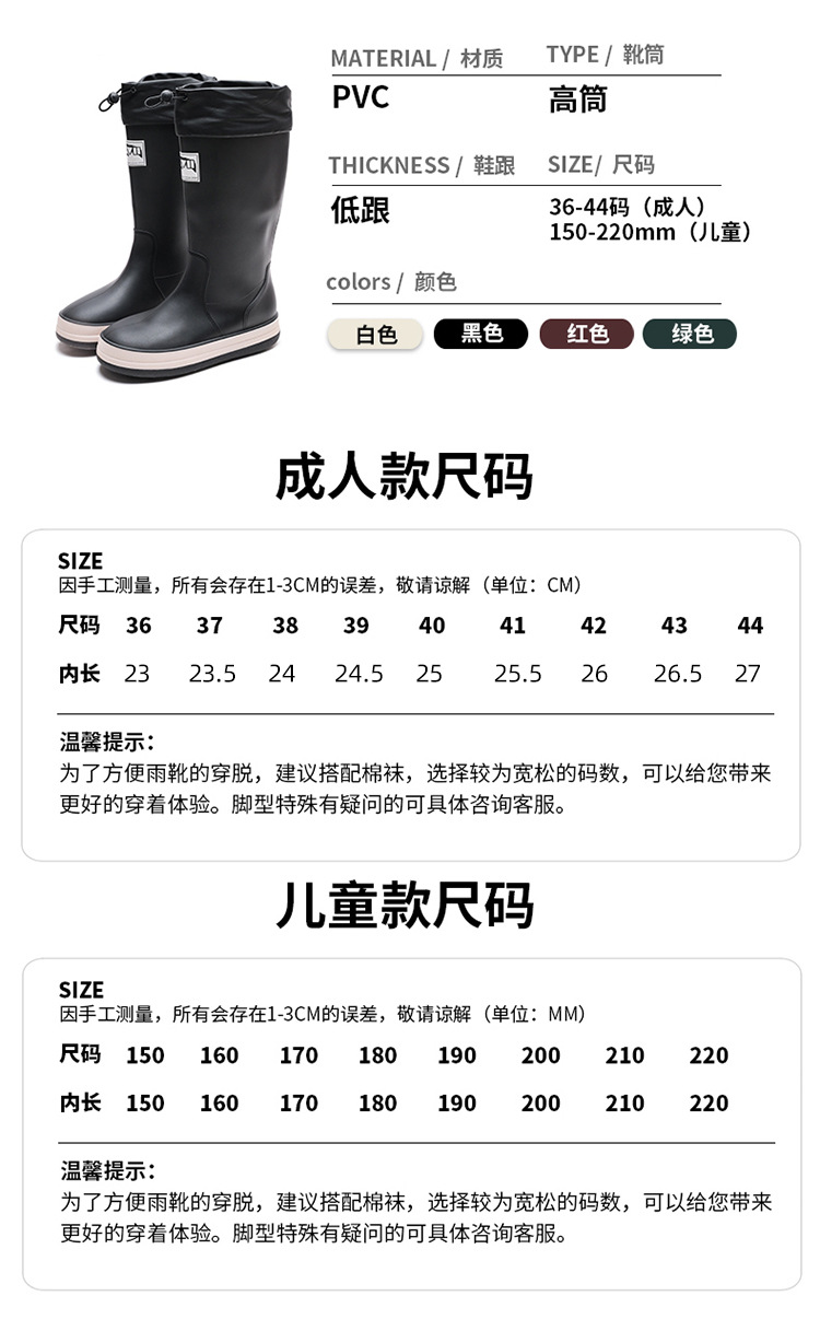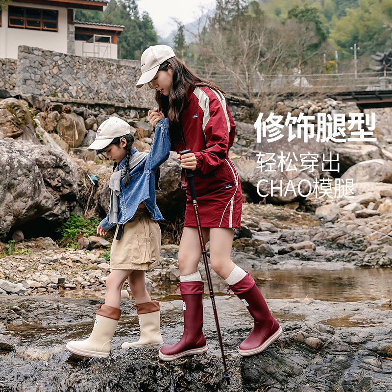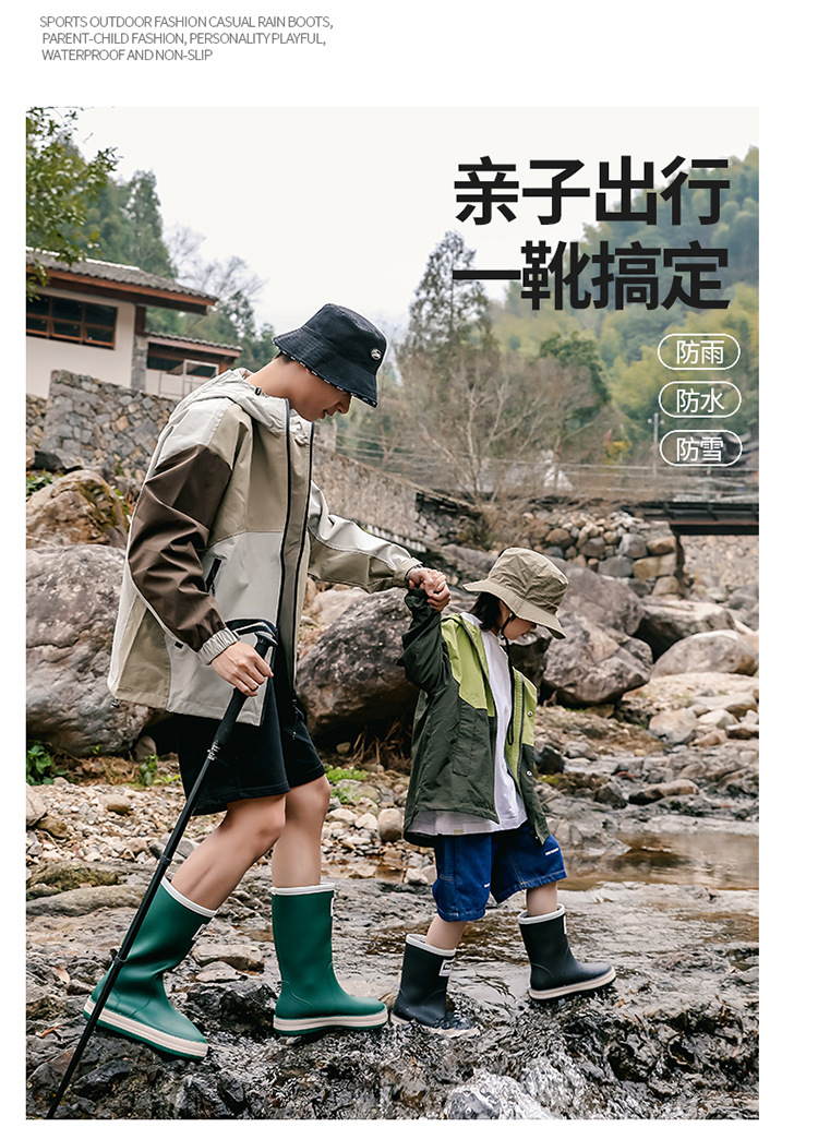 Туфли от дождя женский родитель-ребенок четыре сезона японские сапоги водонепроницаемый набор обуви водная обувь новый водяной сапоги нескользящая резиновая обувь