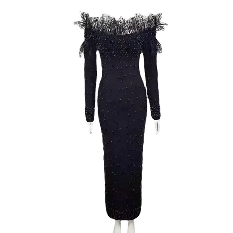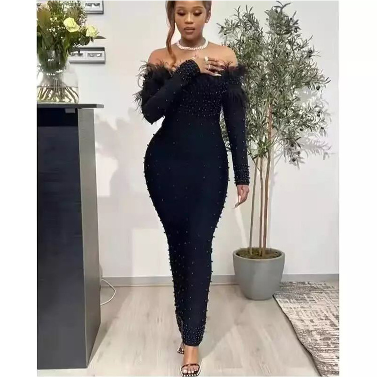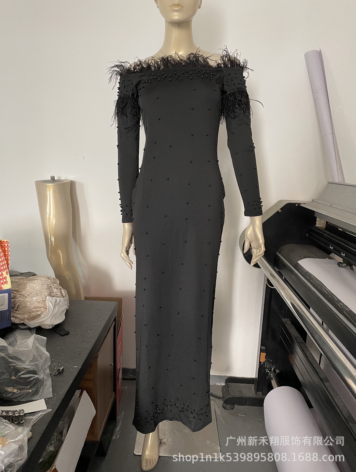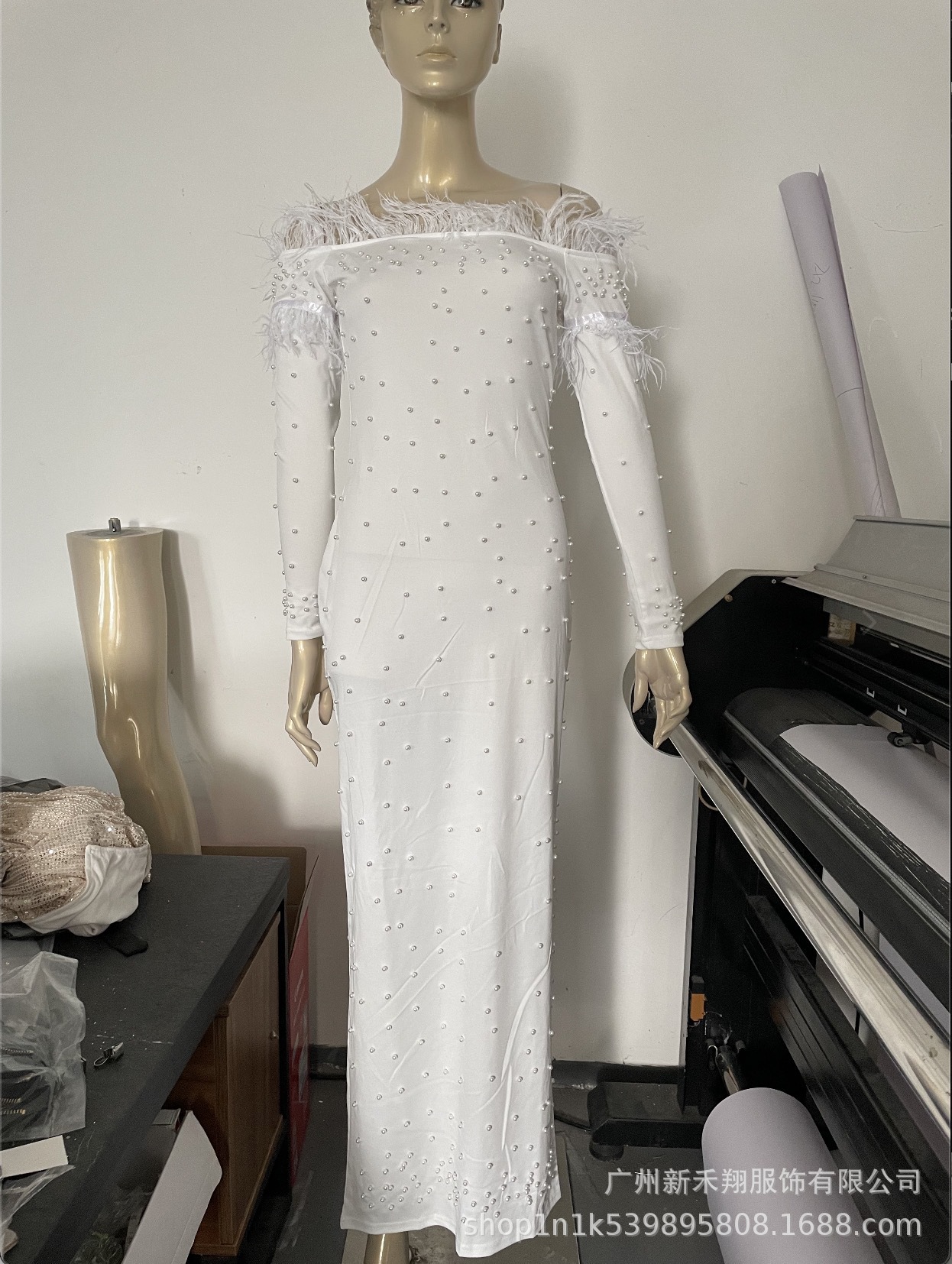 Весеннее и летнее трансграничное женское европейское и американское платье амазонка бисер бедра сексуальное вечернее платье длинное платье свадебное платье
