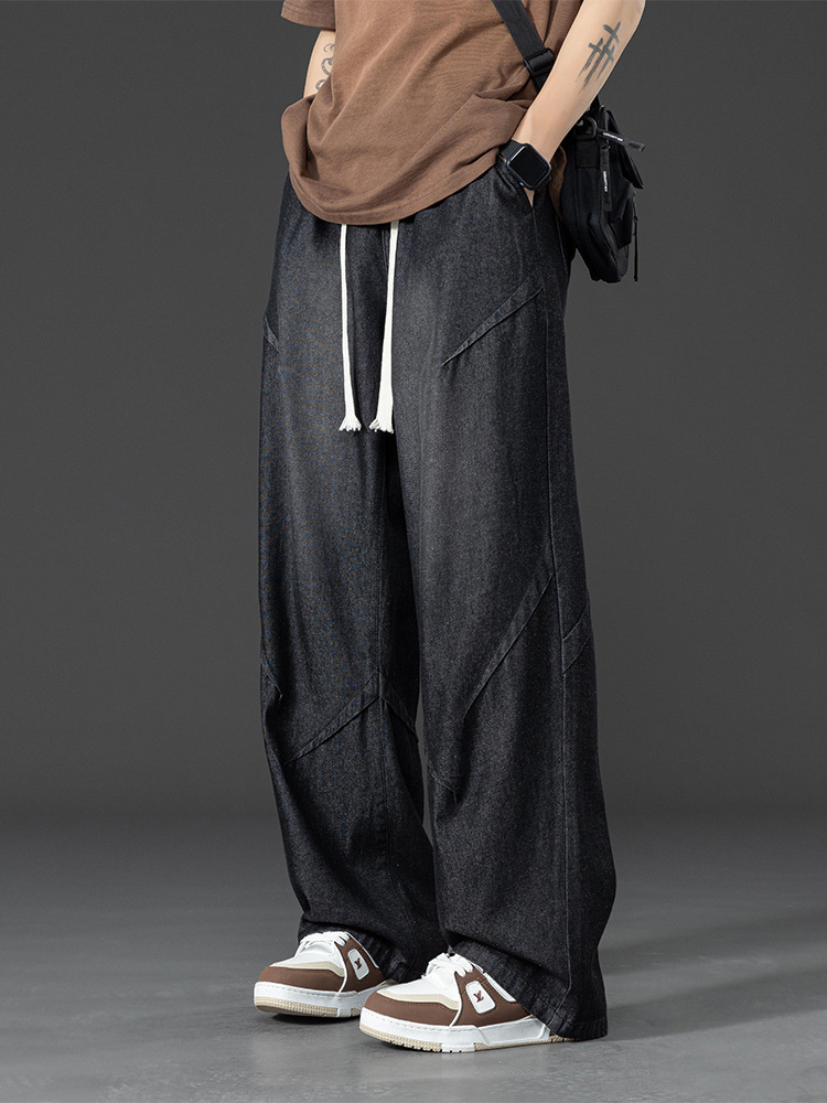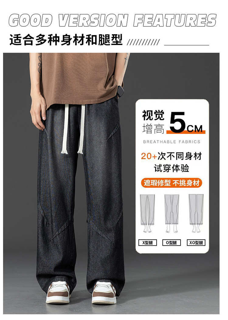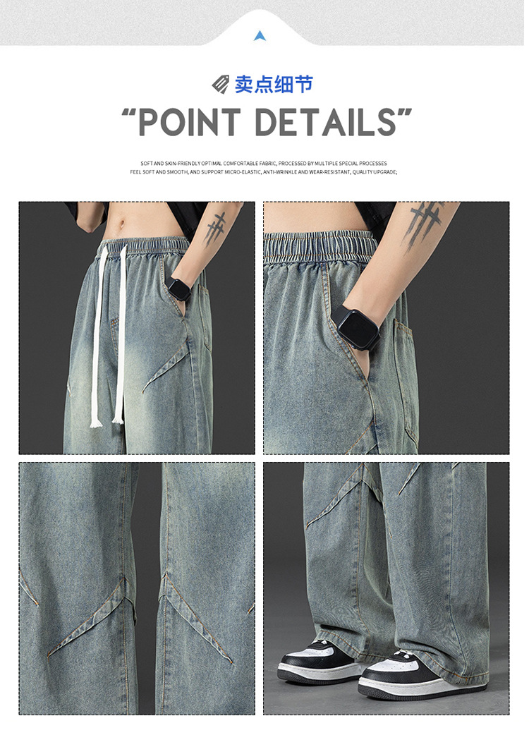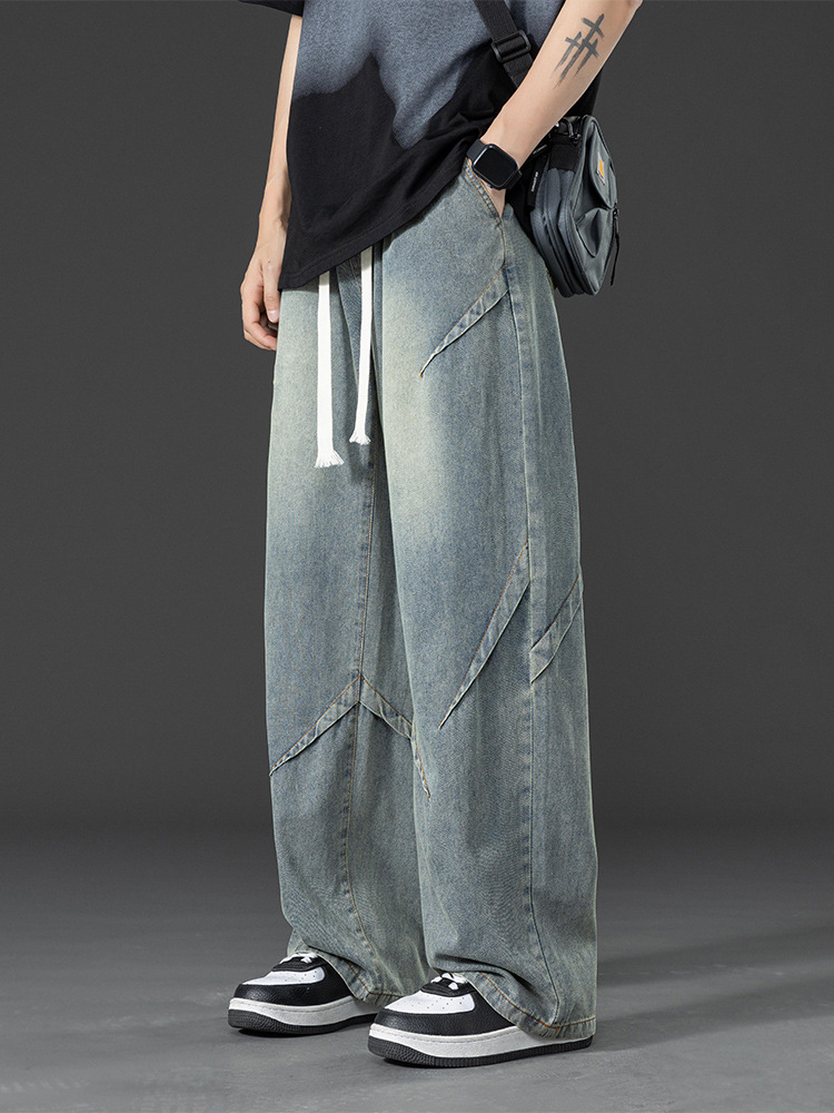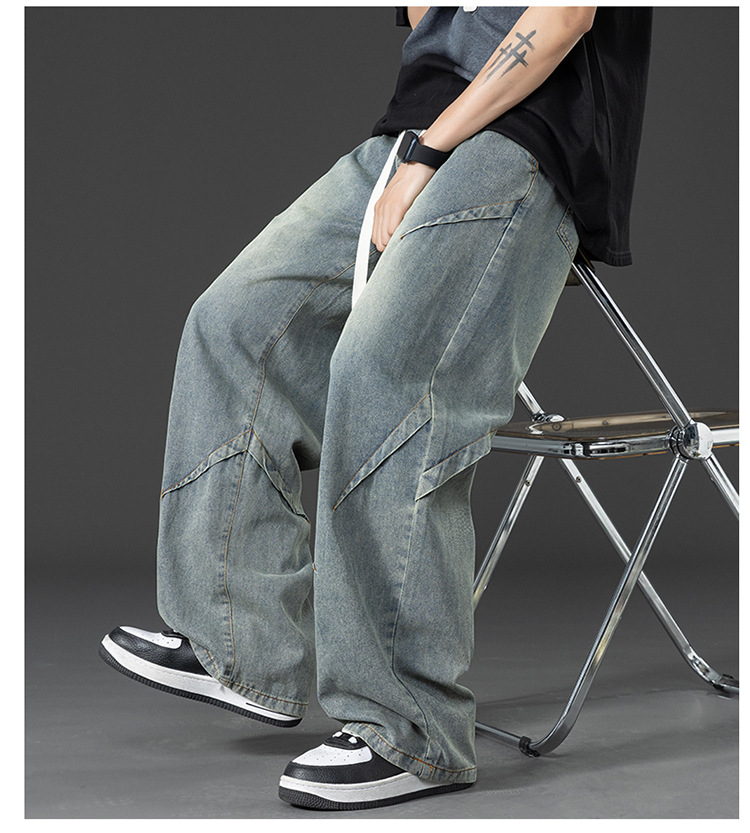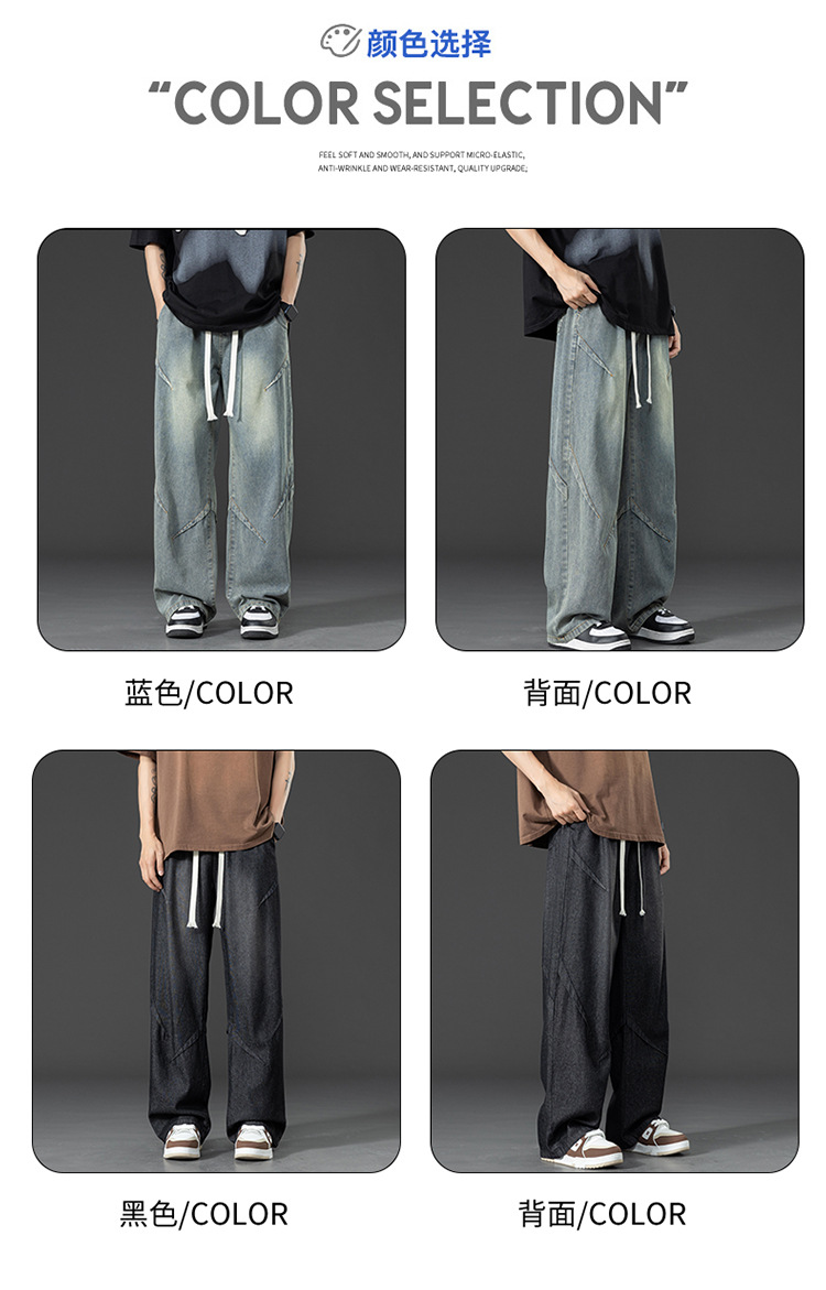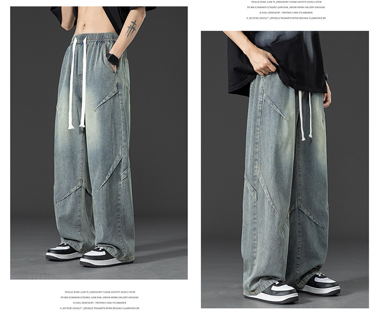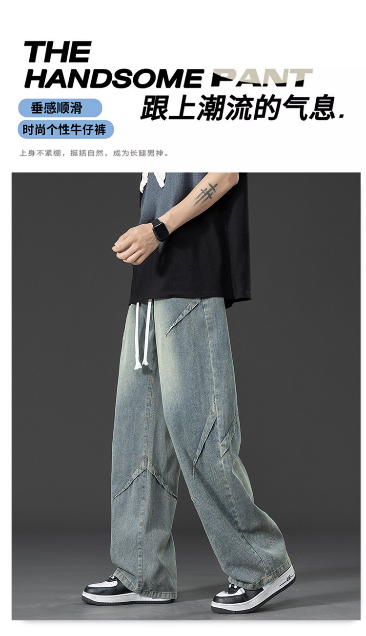 Прямые джинсы мужские летние тонкие свободные повседневные брюки американский прилив бренд старый ретро стирка широкие брюки