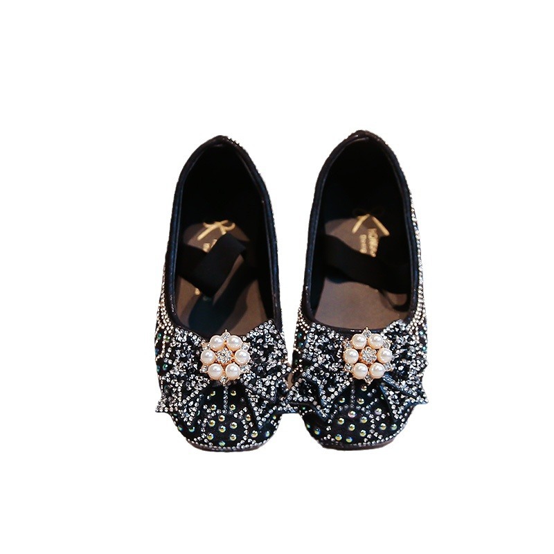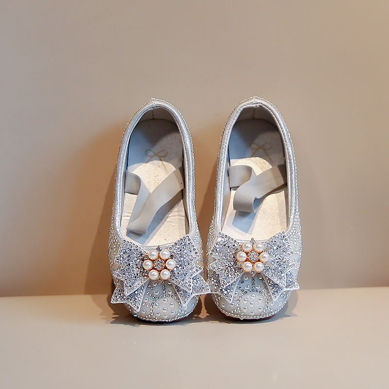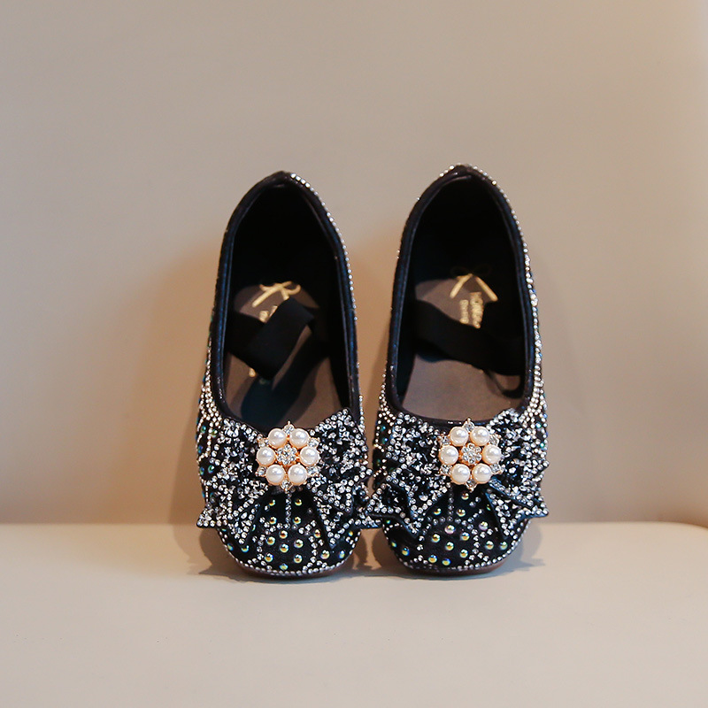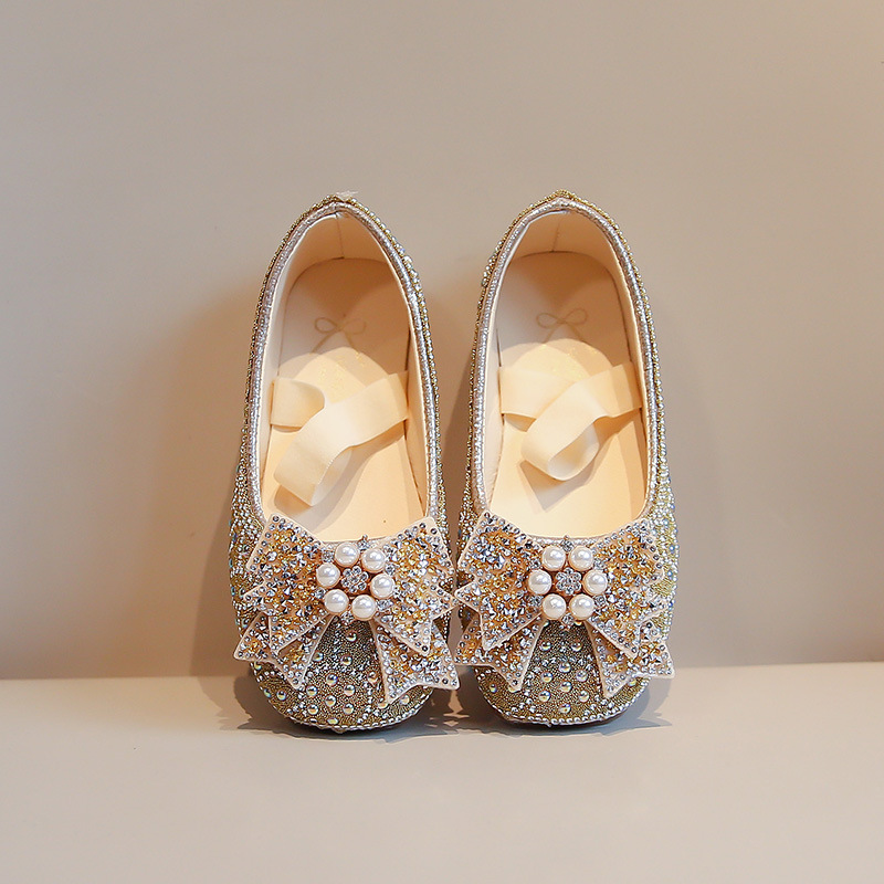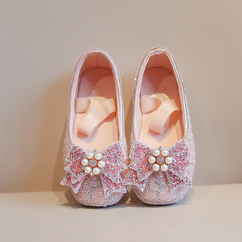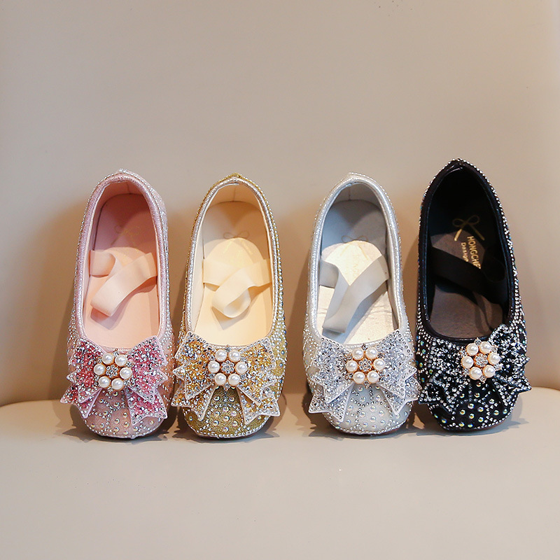 2024 одинокие туфли для девочек весна и осень новые повседневные цветные бриллианты банты маленькие детские танцевальные туфли для исполнительских туфли
