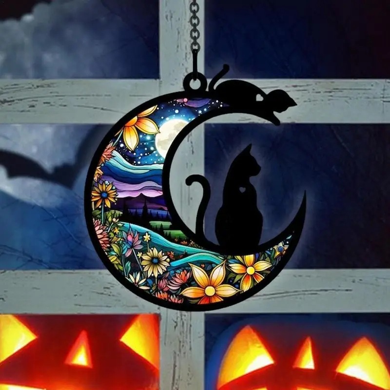 Трансграничные новые окна висит луна черный кот кулон юбилей украшения луна собака Хэллоуин декоративные кулоны