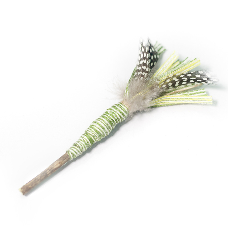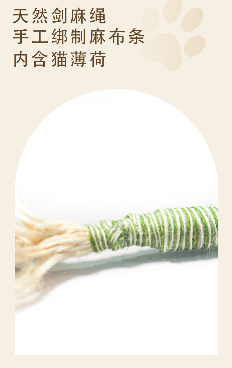 Сизановая веревка кошачьей мяты дразнит кошачьей палочки длиной около 20 см; Деревянная метла имеет длину около 20 см