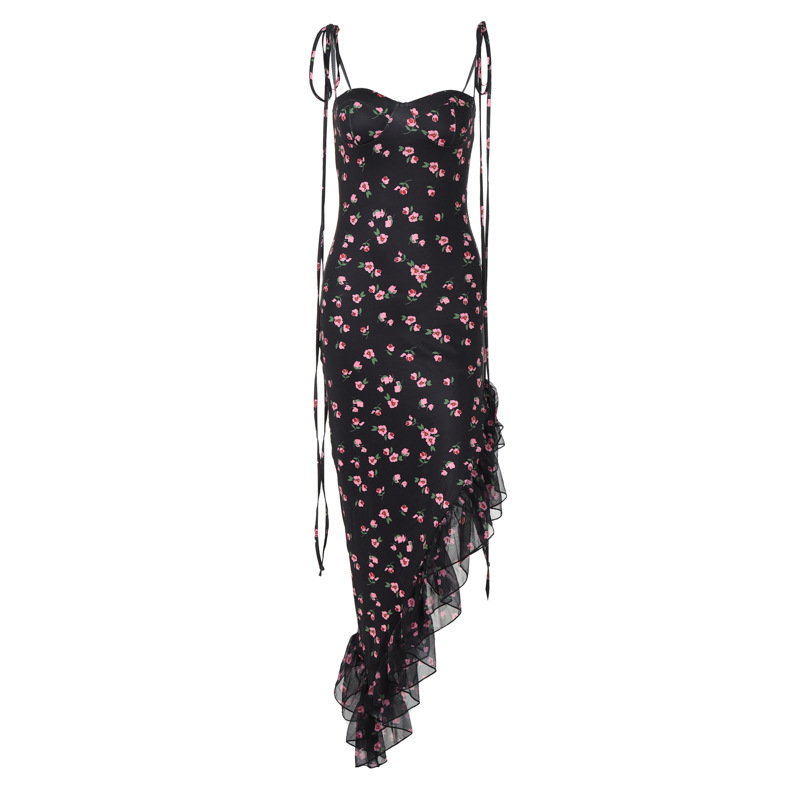 Amazon Горячая женская одежда 2024 Летняя мода с печатным сексуальным сетчатым кружевным платьем оптом