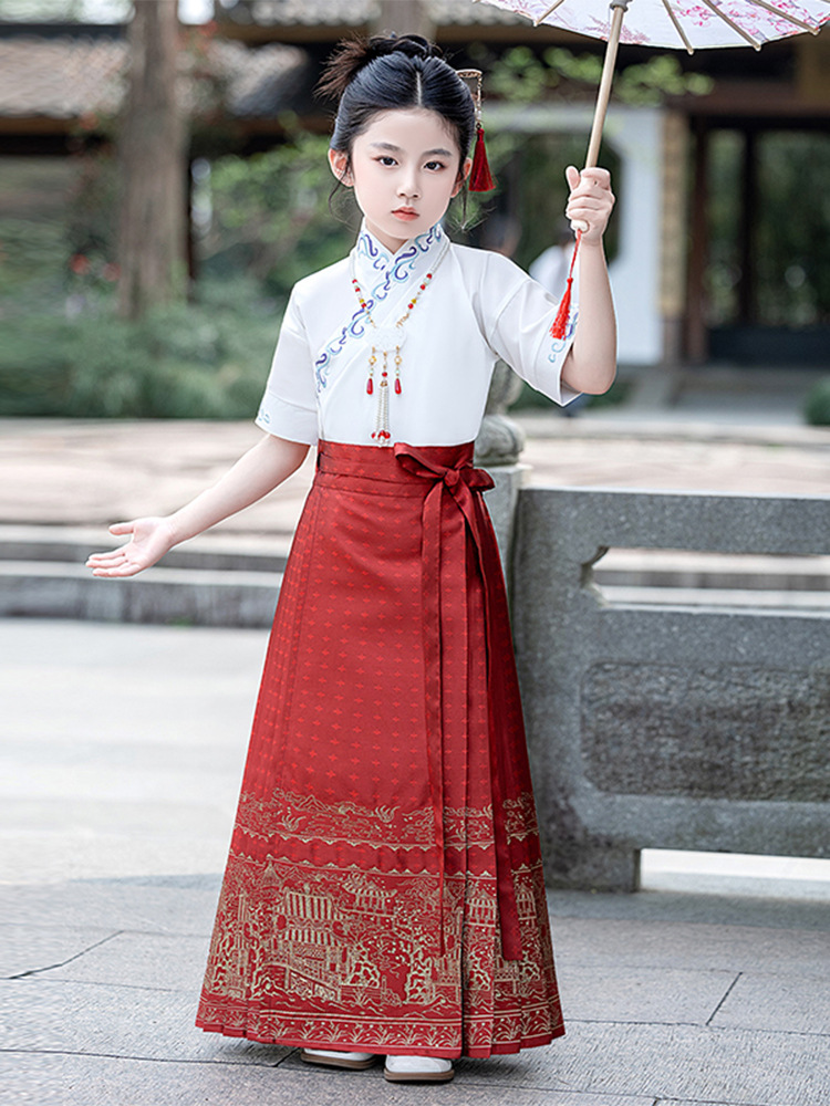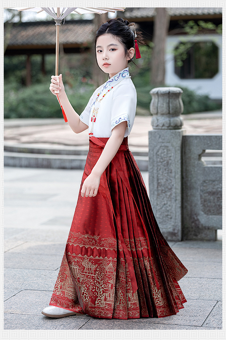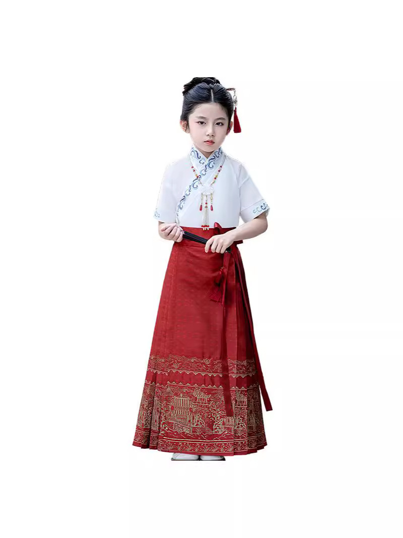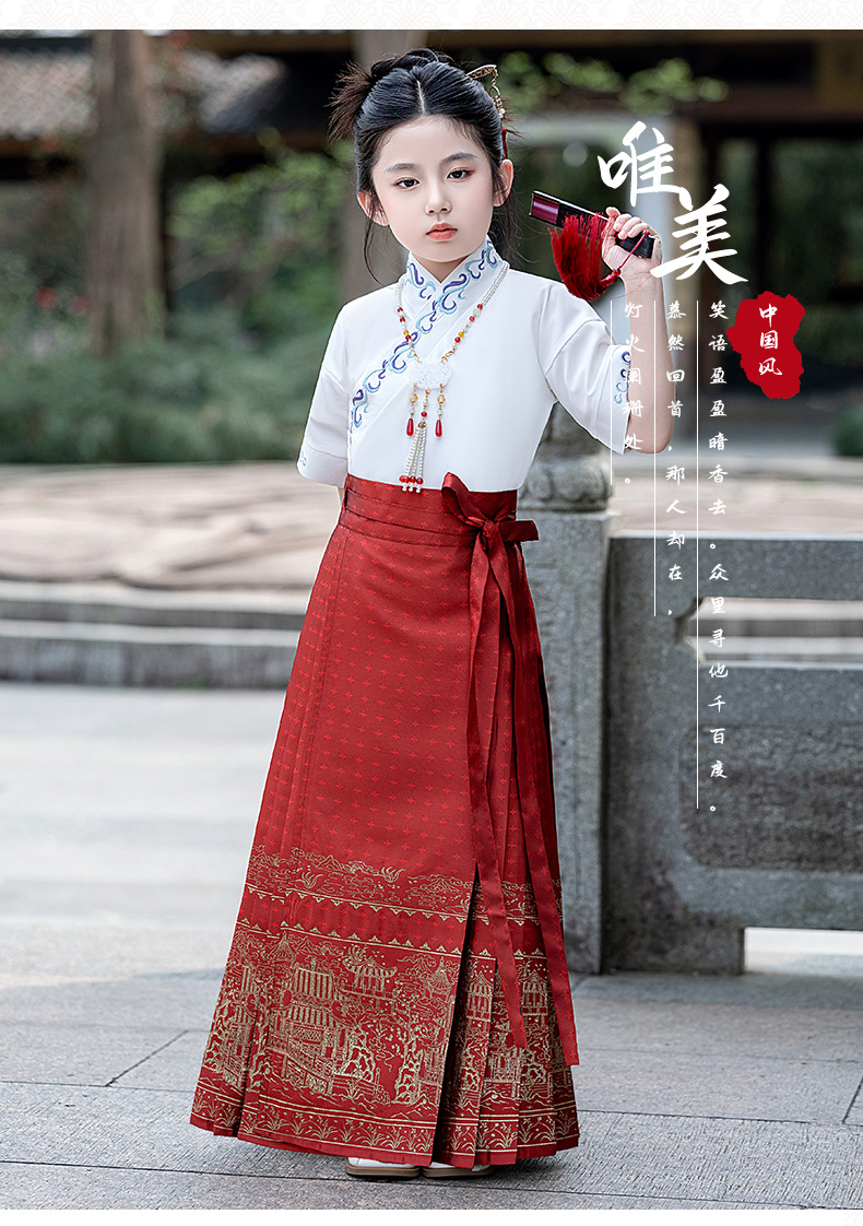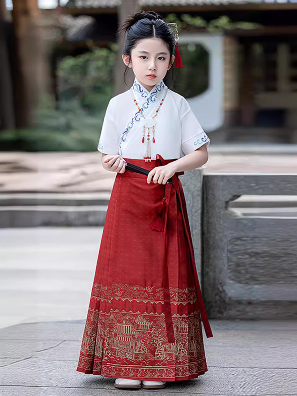 Конская юбка с лапшой для девочек 2024 летний новый стиль премиум-класса новый китайский стиль